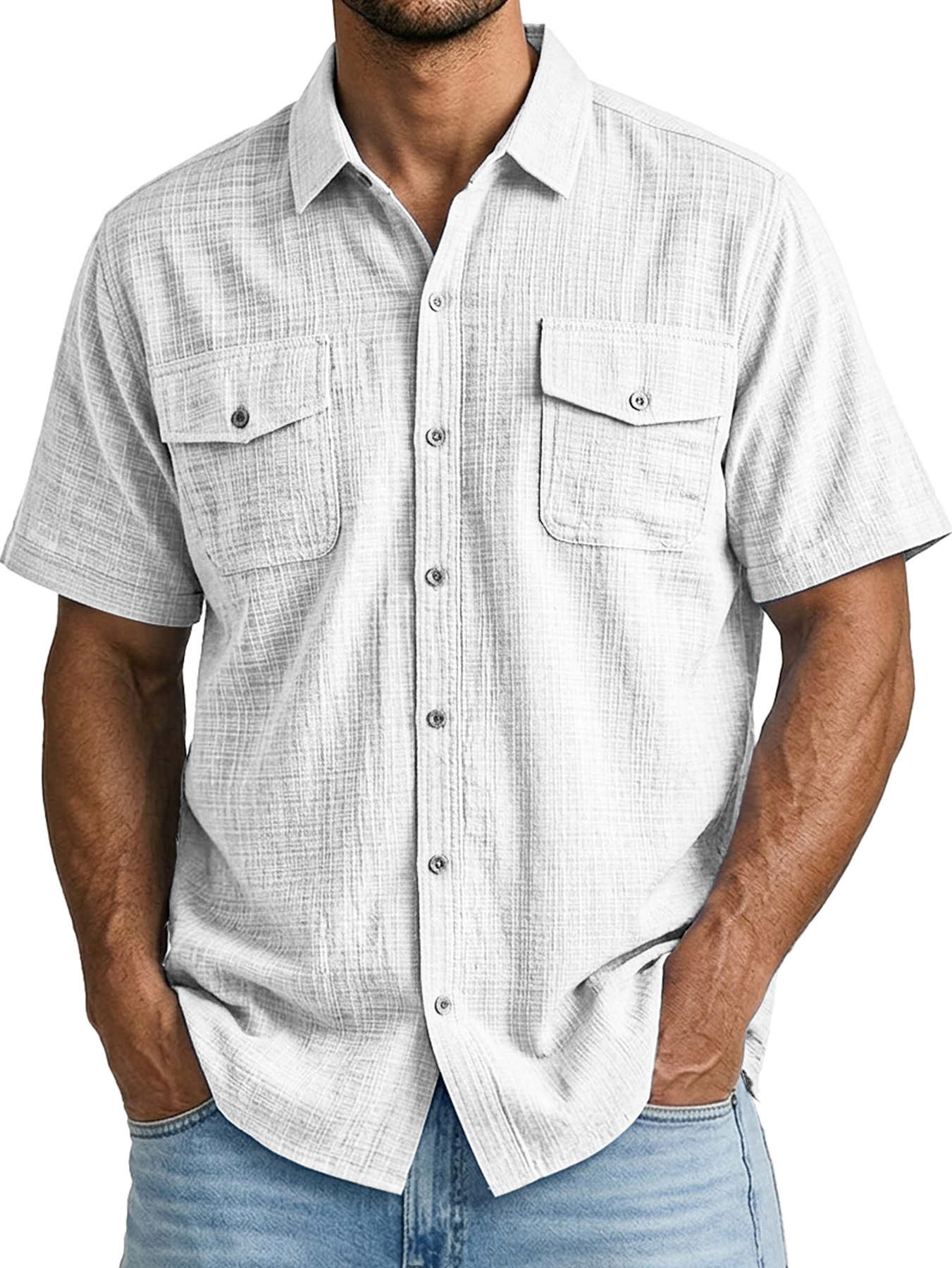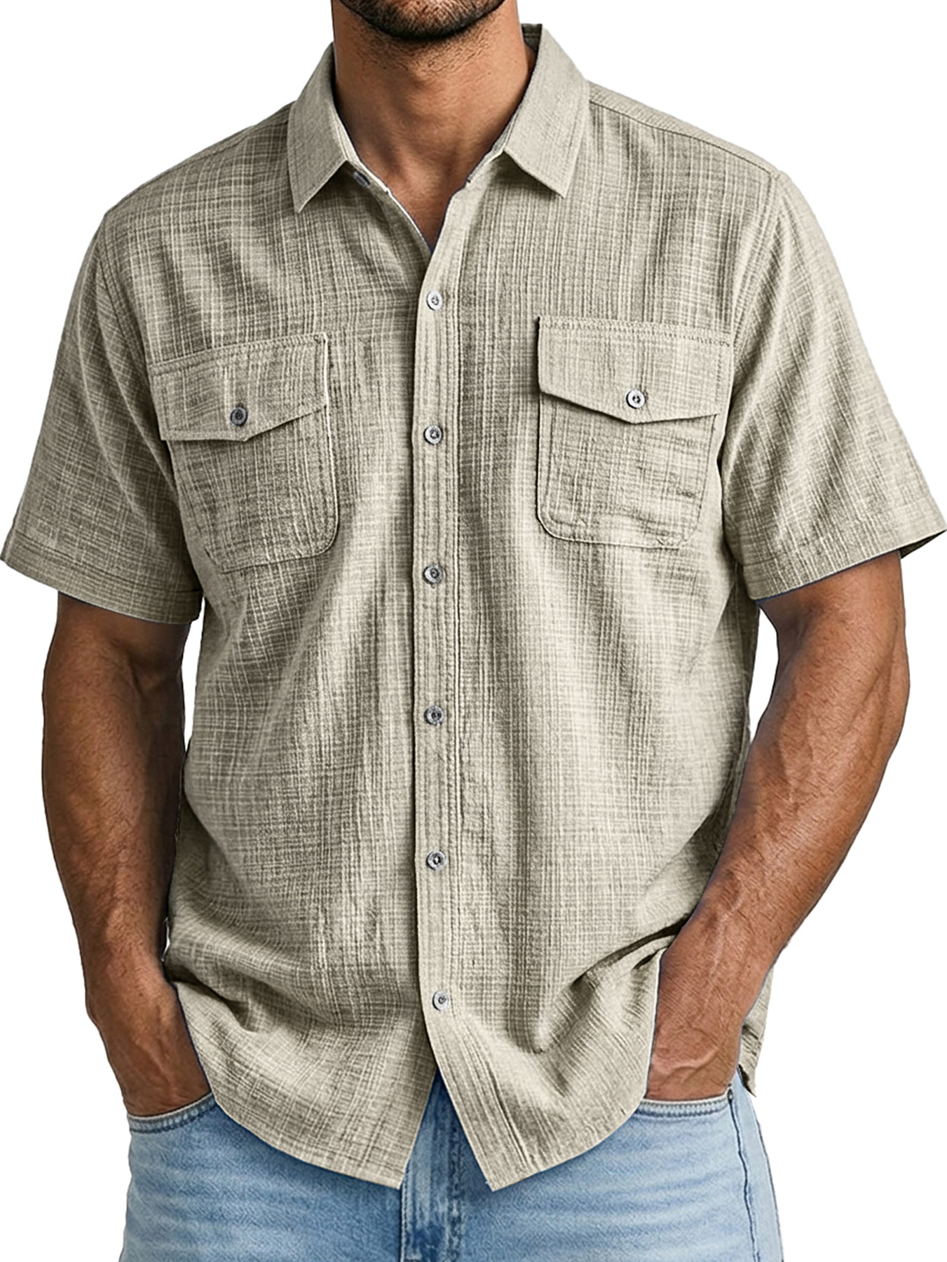 Men's Casual Bamboo-Style Linen Multi-Pocket Work Shirt