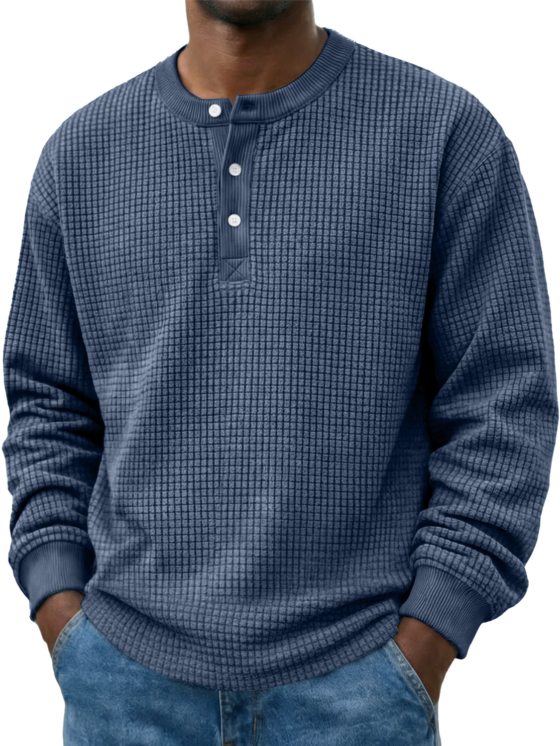 Men's Casual Corduroy Waffle-knit Solid Color Long-sleeved Henley Shirt