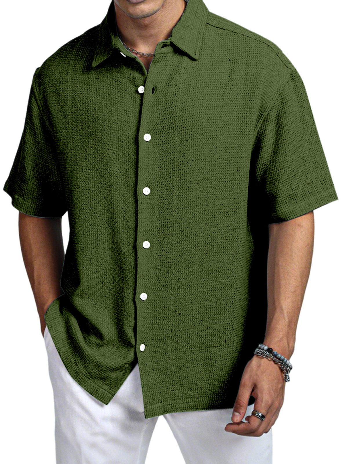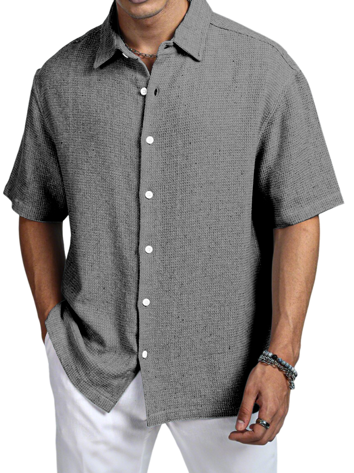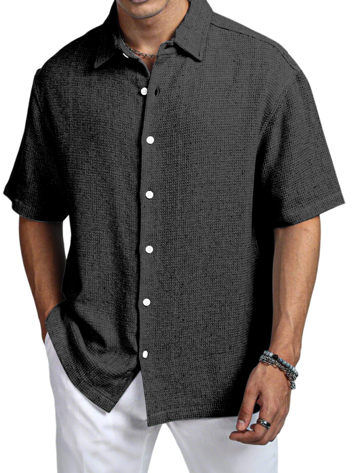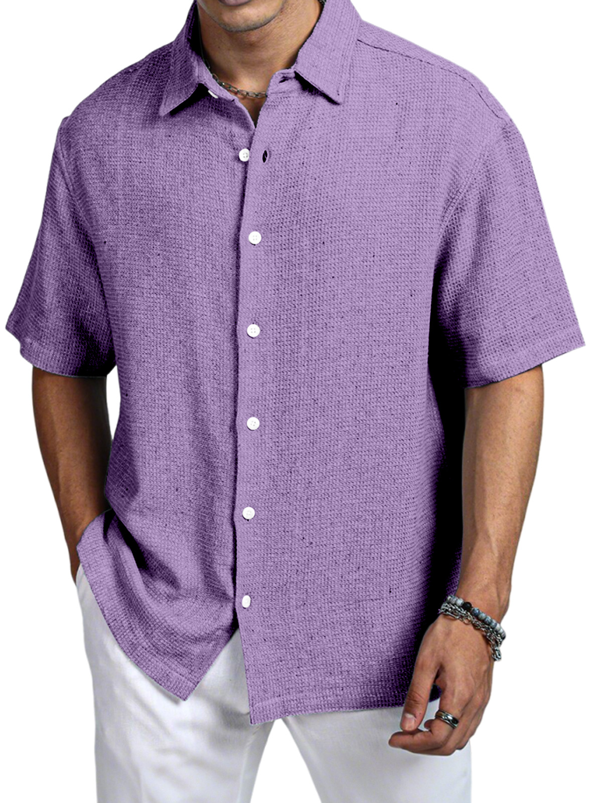 Men's Casual Daily Solid Color Texture Short-sleeved Shirt