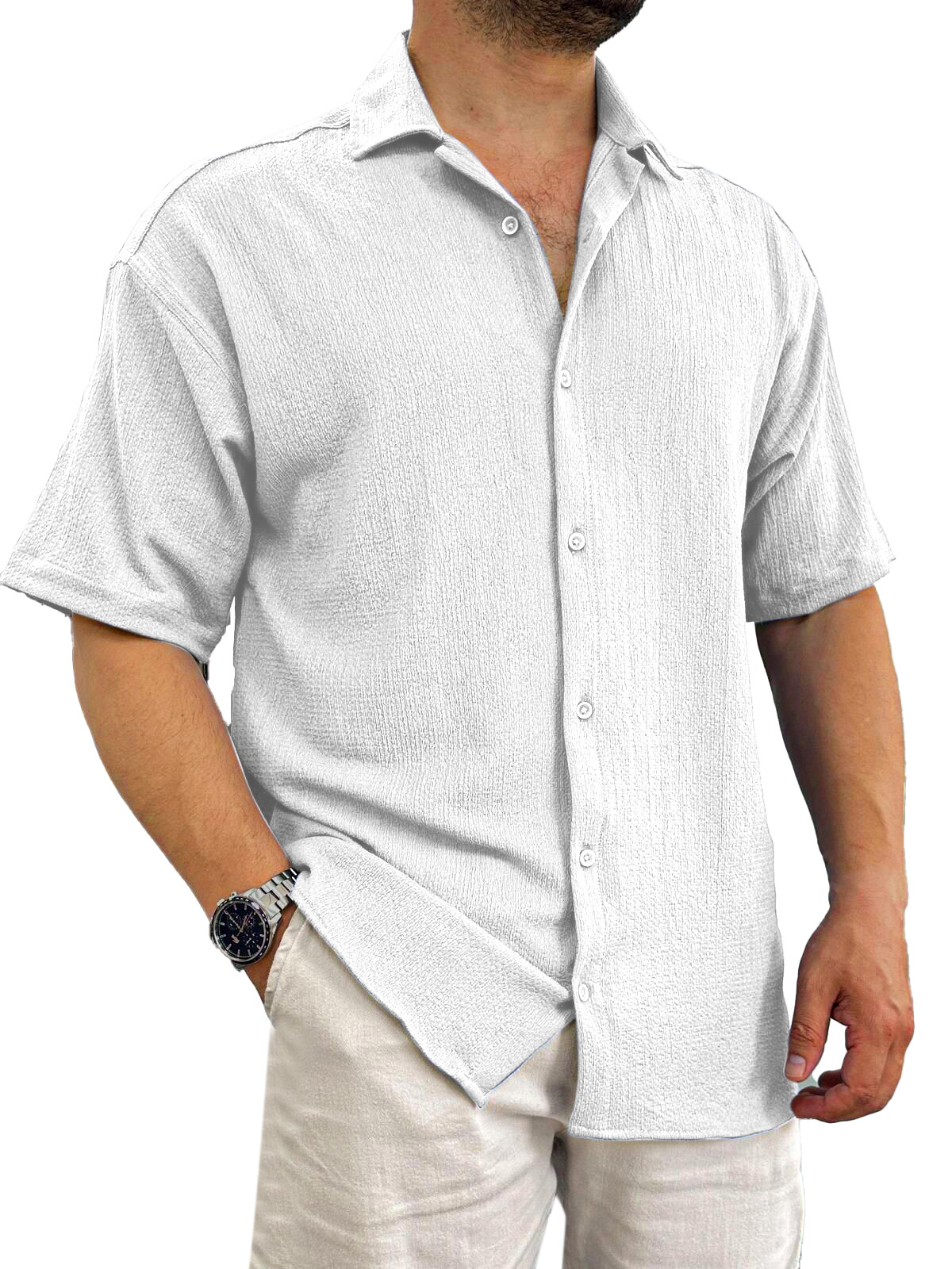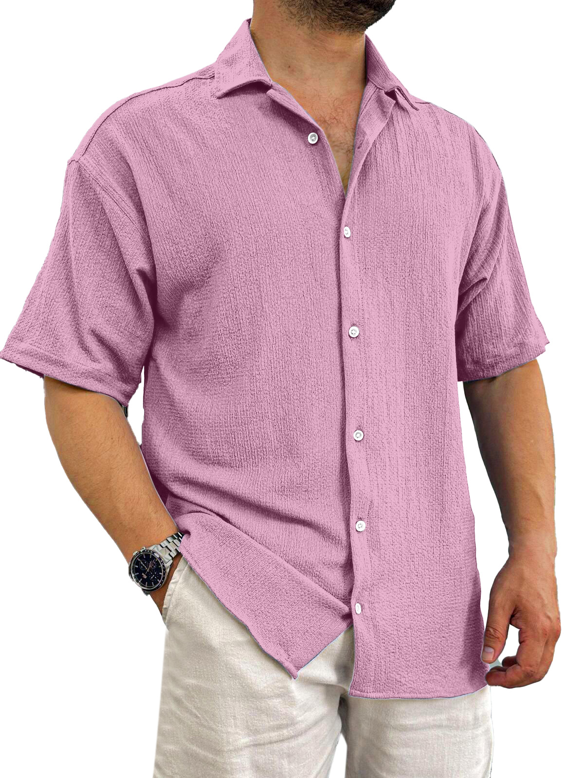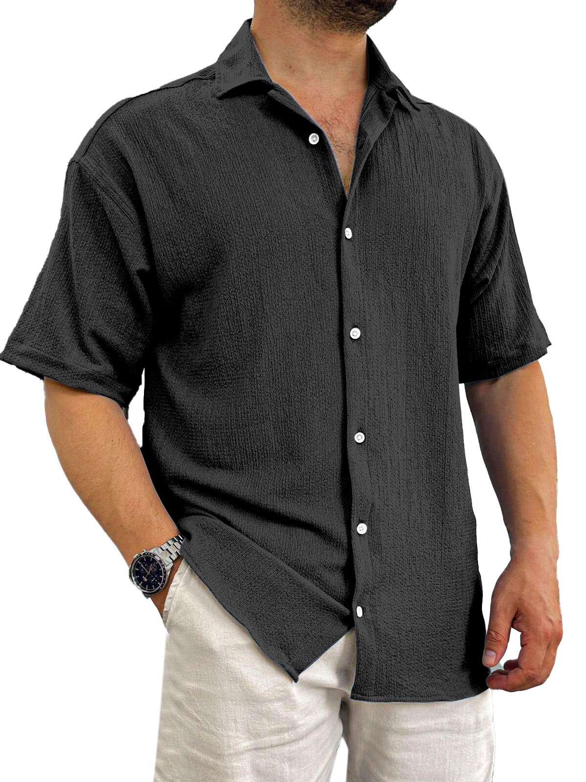 Men's Casual Daily Solid Color Texture Solid Color Short-sleeved Shirt
