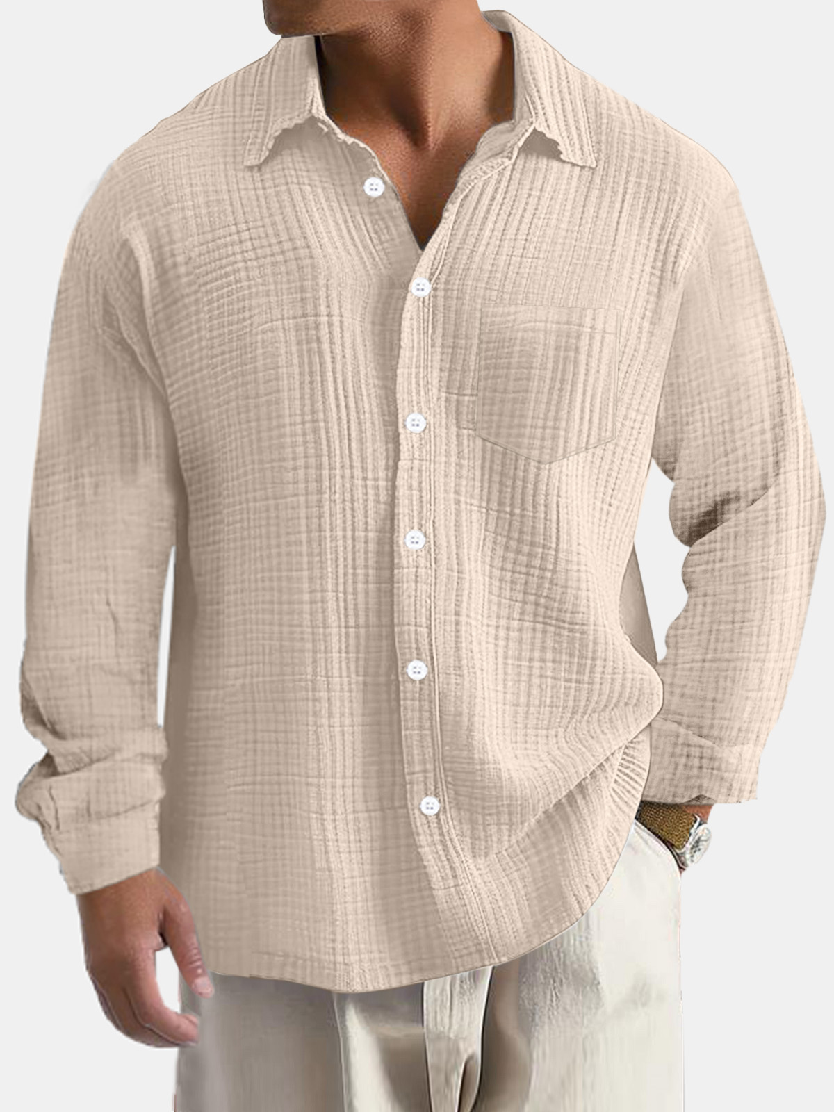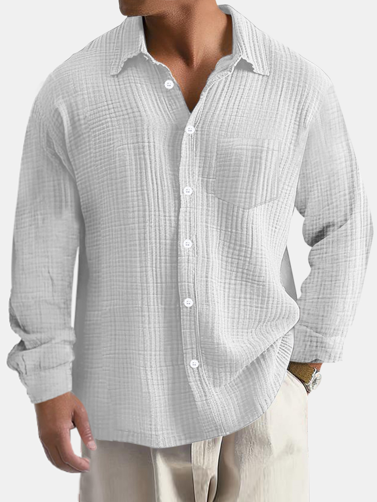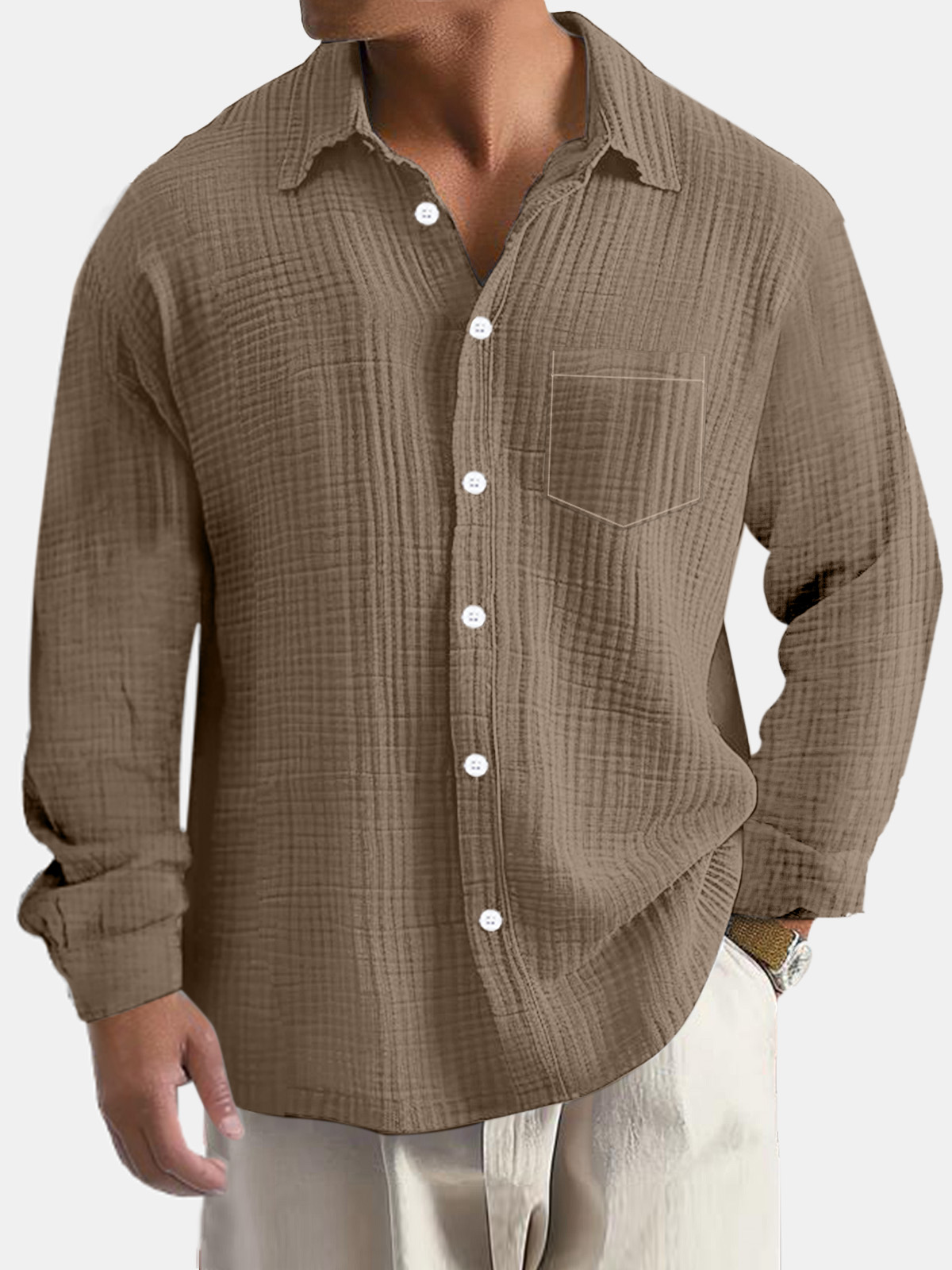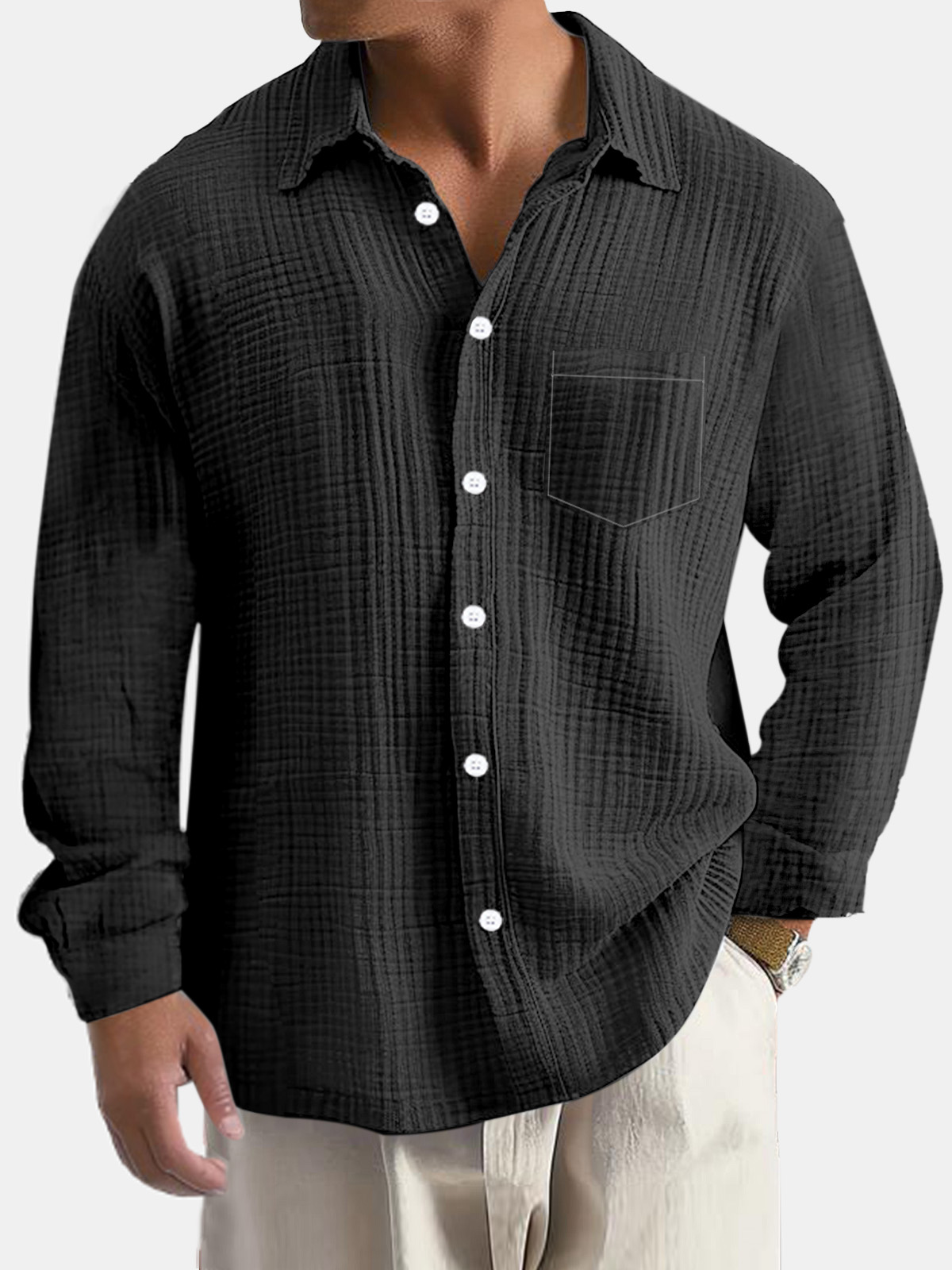 Men's Casual Everyday Puff Wrinkle Pocket Long Sleeve Shirt