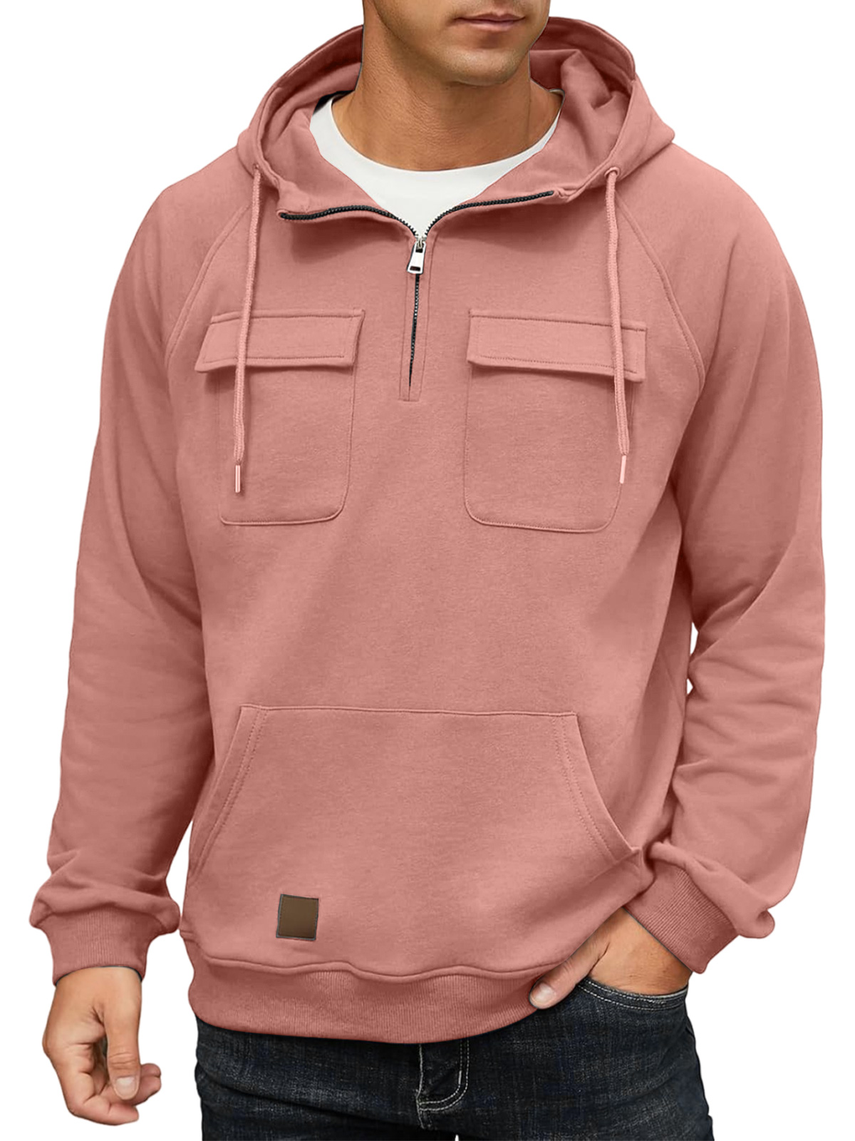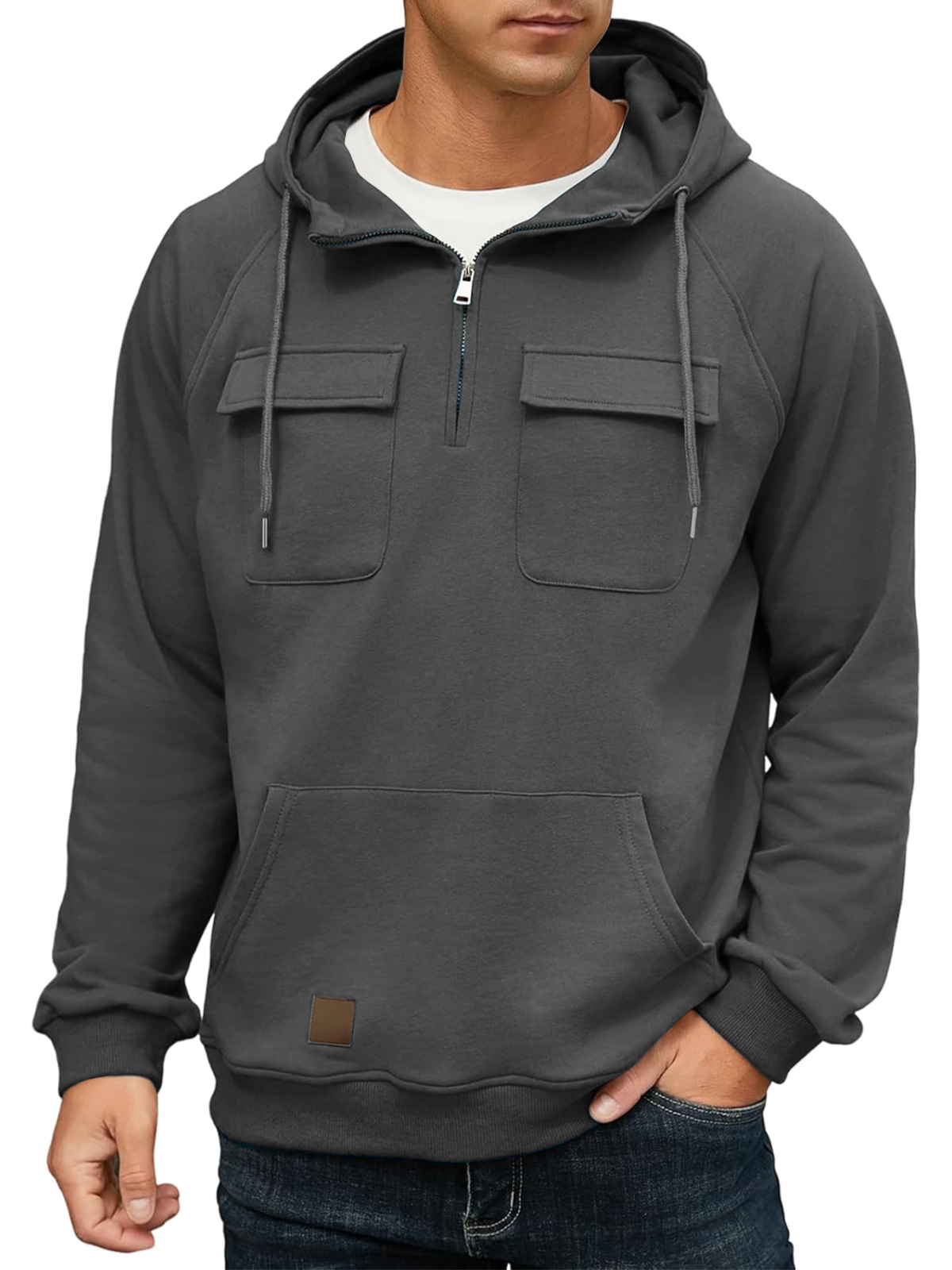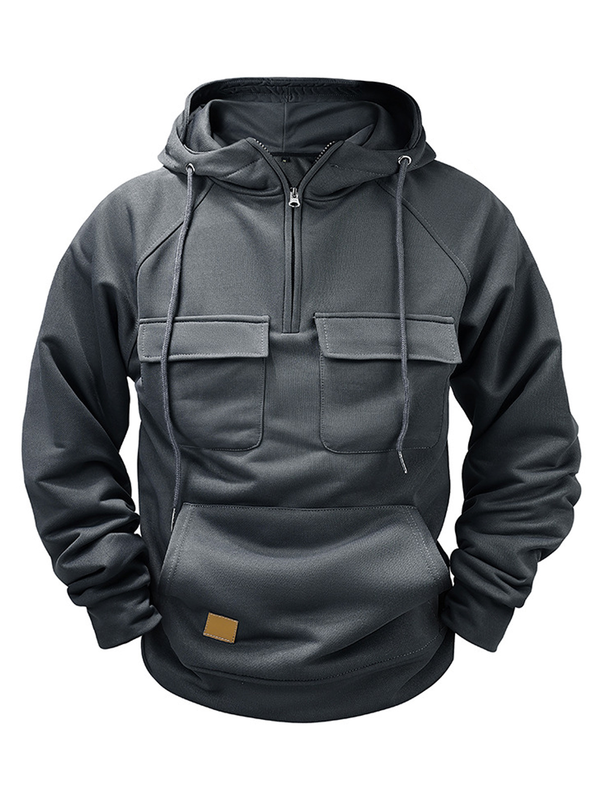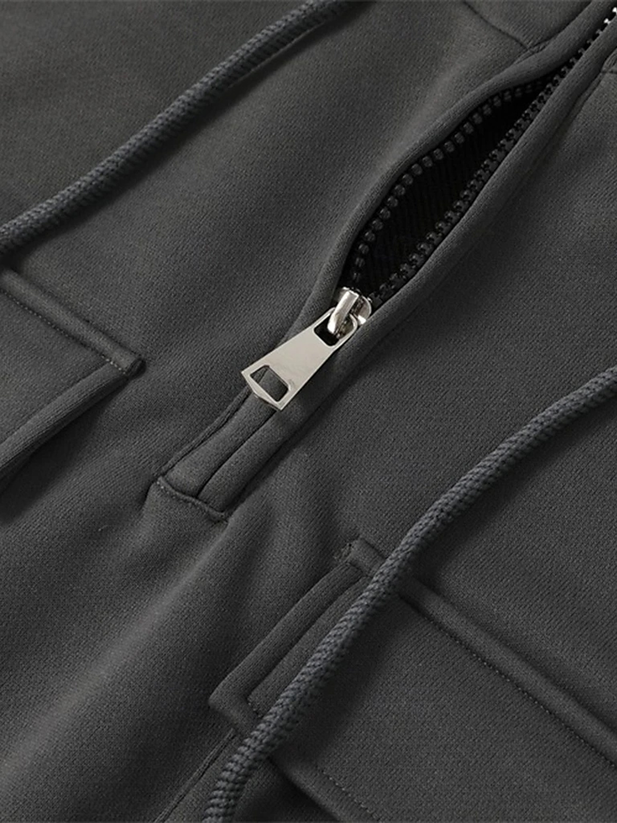 Men's Casual Hooded Zippered Double Pocket Solid Color Sweatshirt