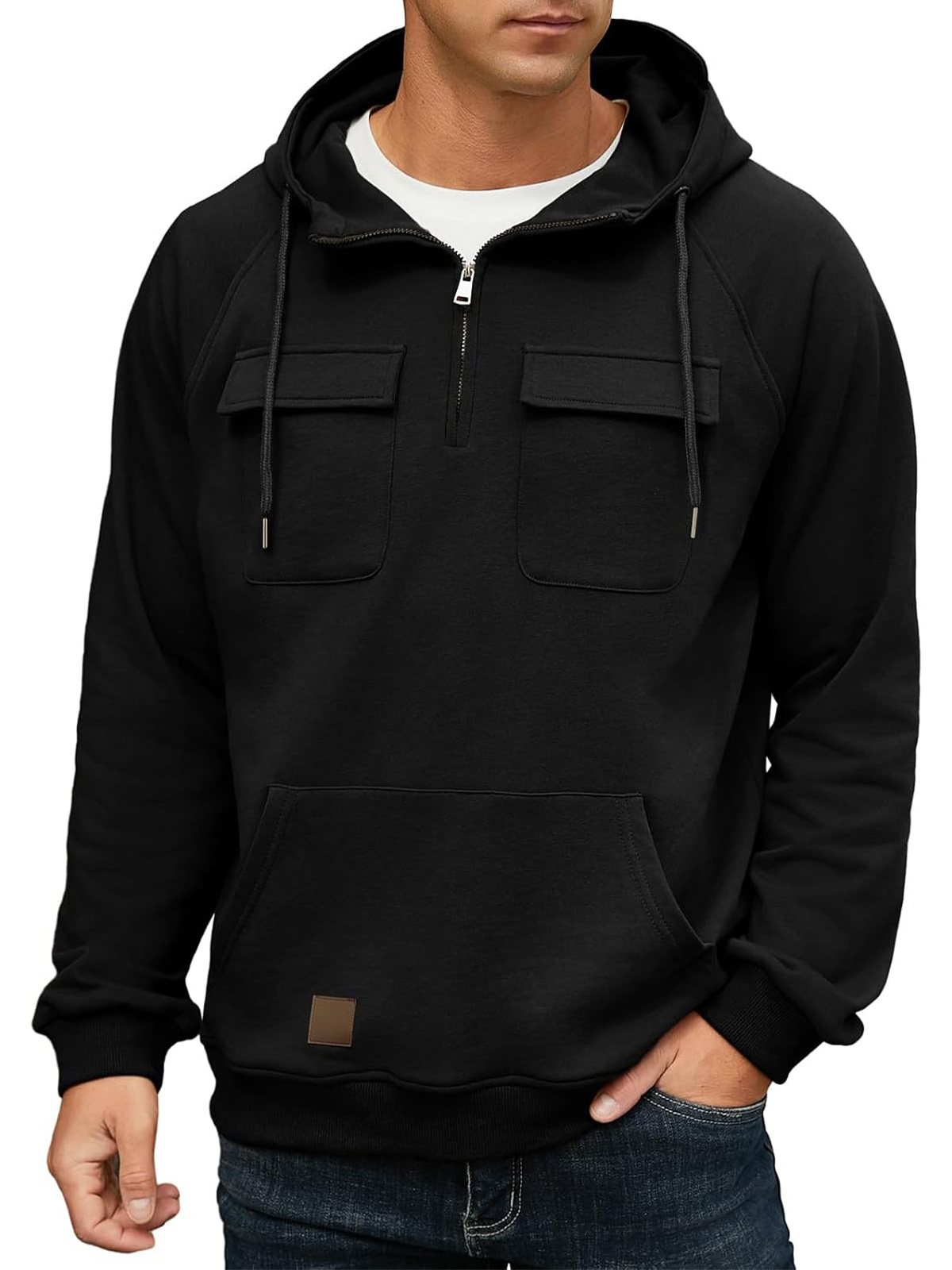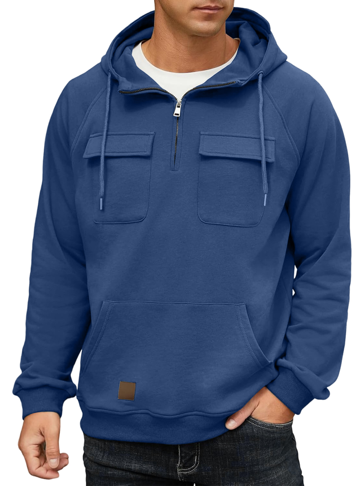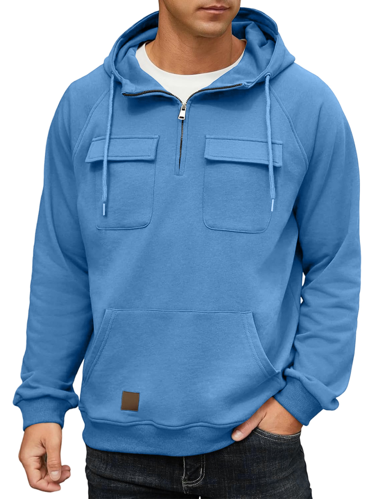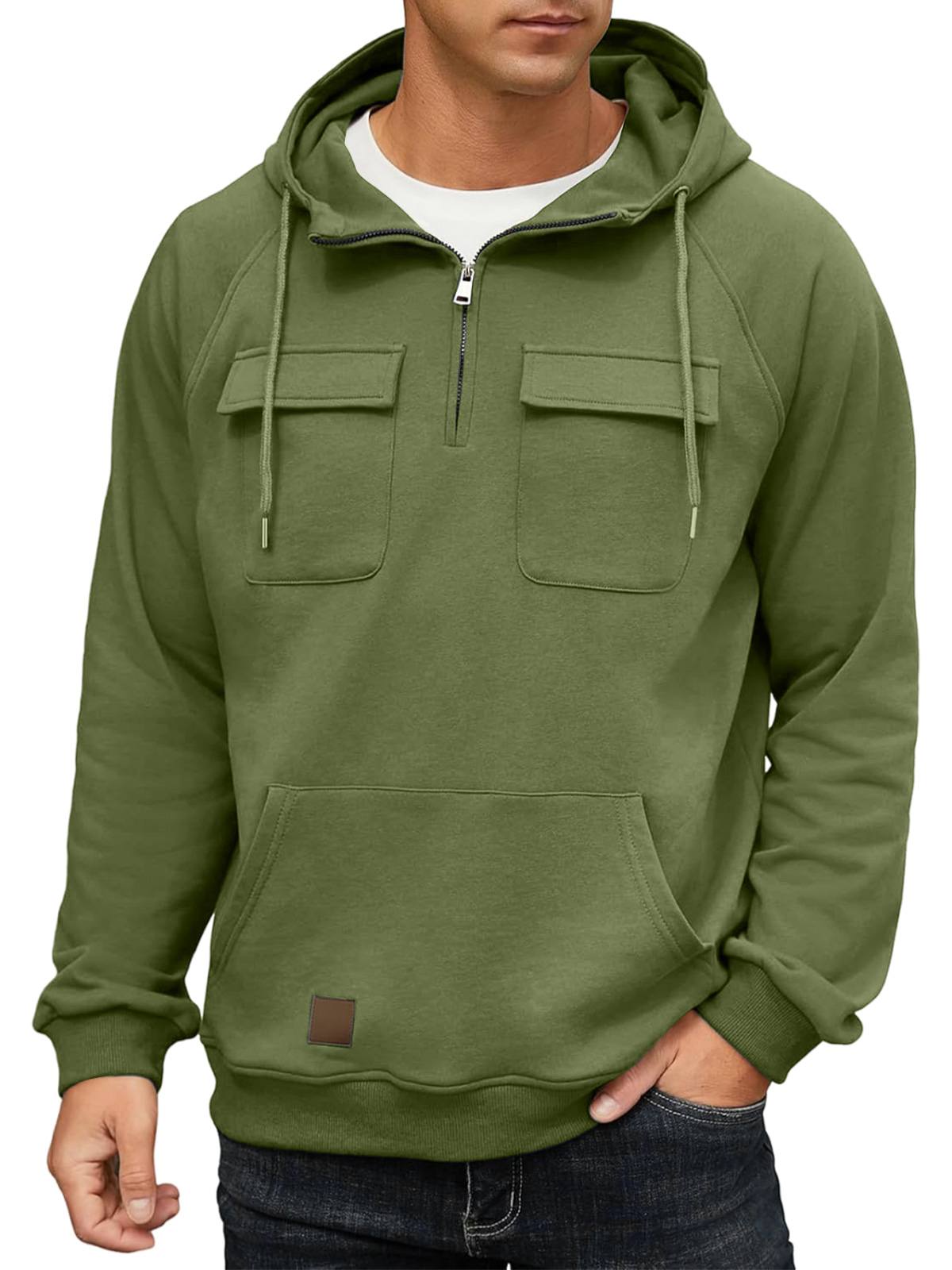 Men's Casual Hooded Zippered Double Pocket Solid Color Sweatshirt