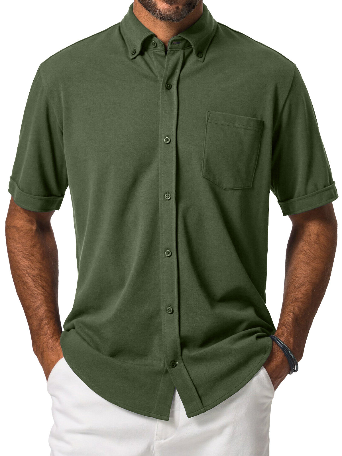Men's Casual Lapel Pocket Comfort Short Sleeve Shirt