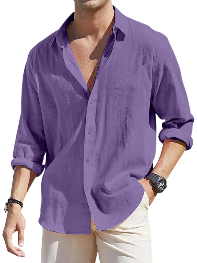 Men's Casual Loose Basic Cotton And Linen Long-sleeved Shirt