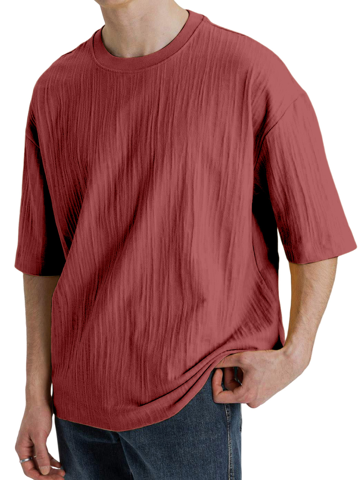 Men's Casual Pleated Texture Short-sleeved T-shirt