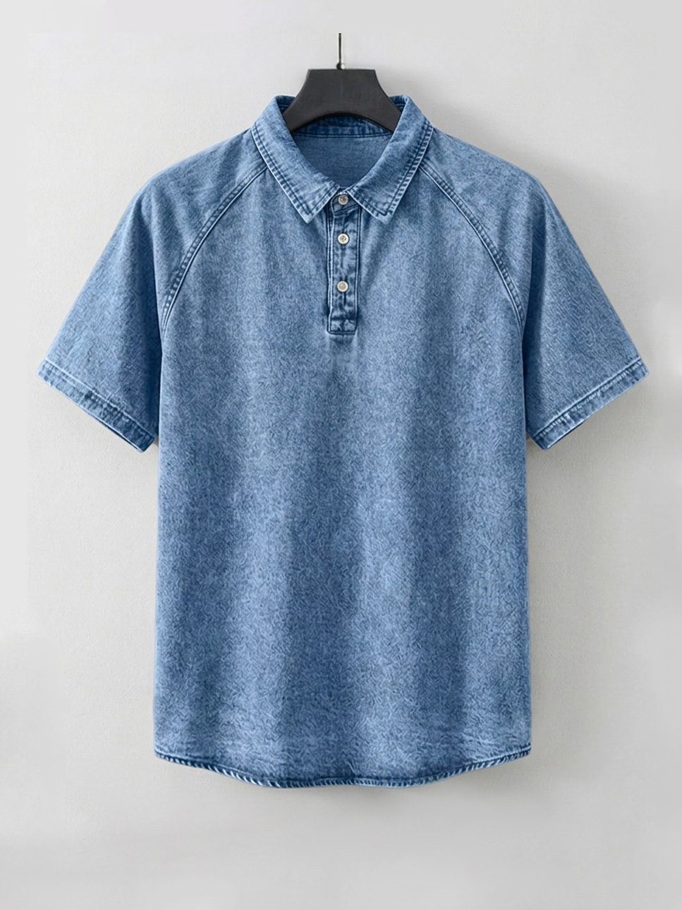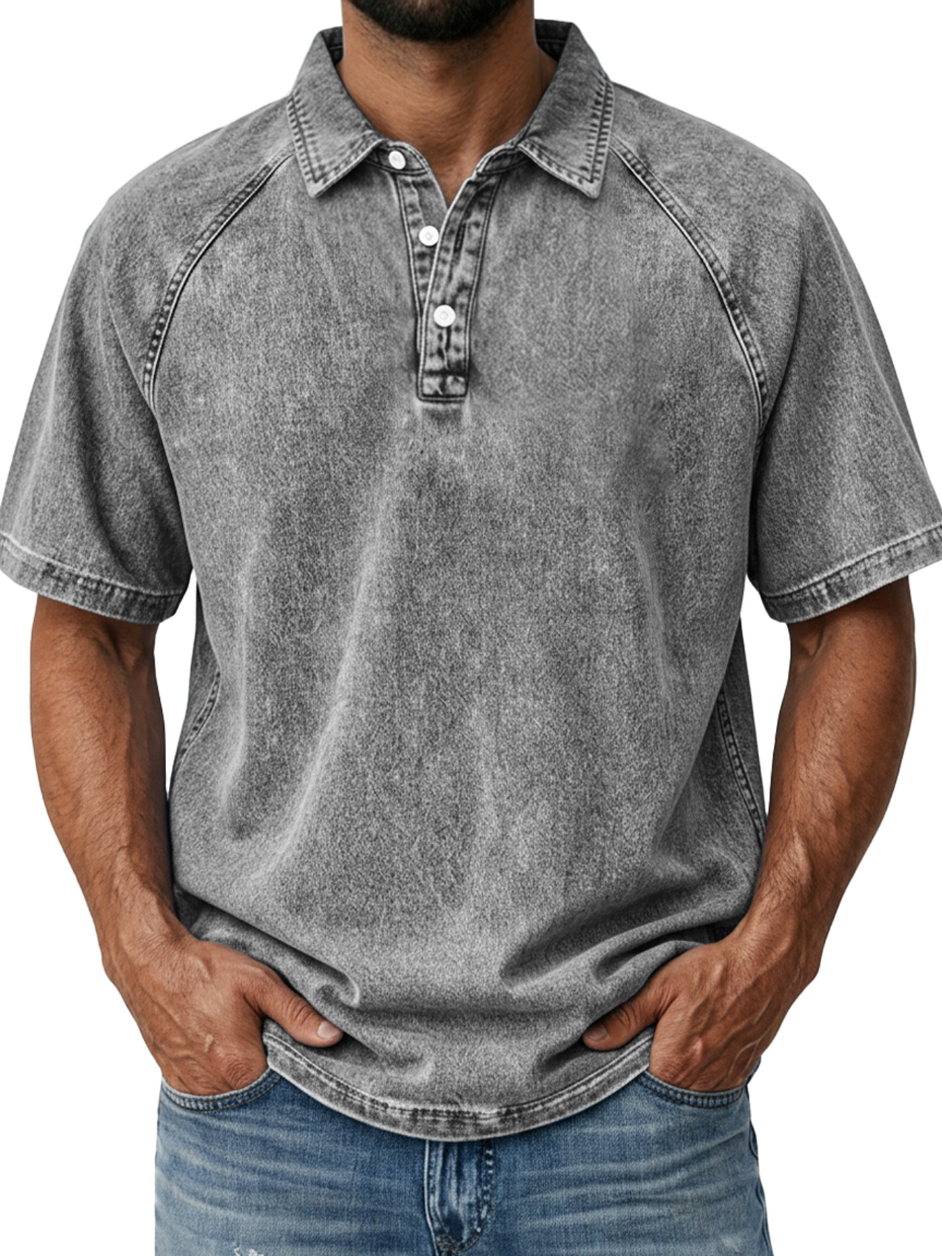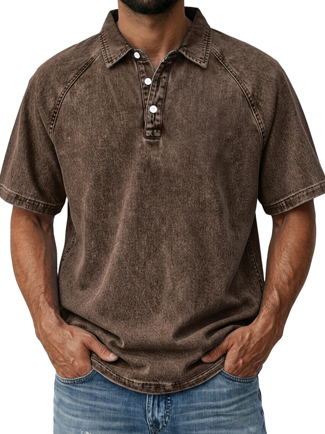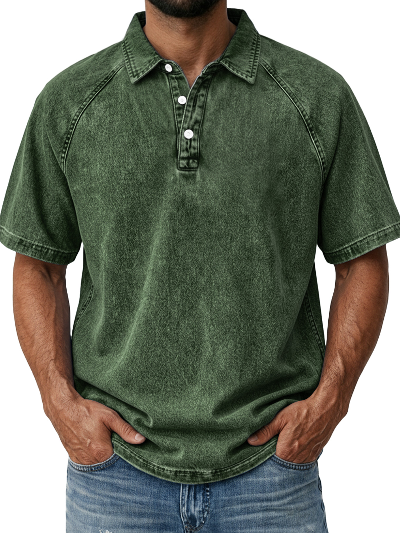 Men's Casual Retro Raglan Collar Button-Down Short Sleeve Polo Shirt