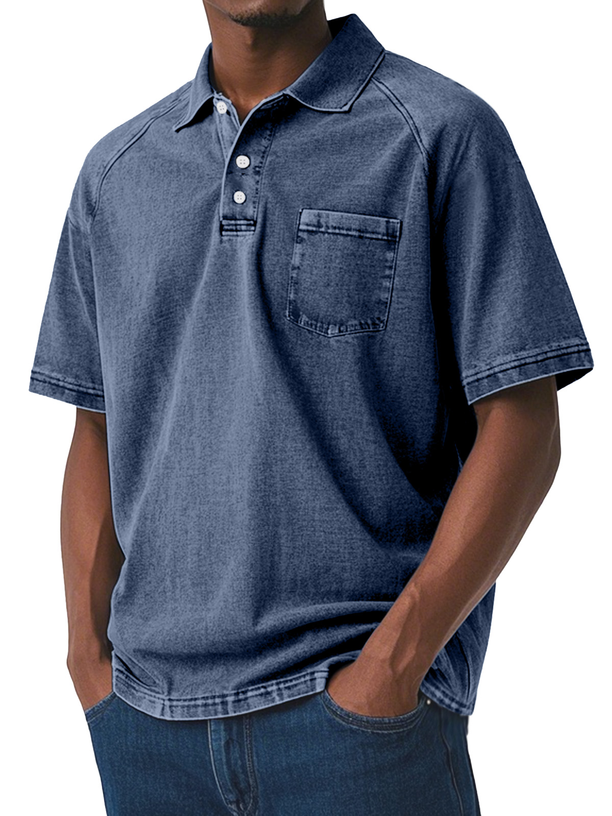 Men's Casual Retro Solid Color Comfortable Raglan Sleeve Lapel Polo Shirt