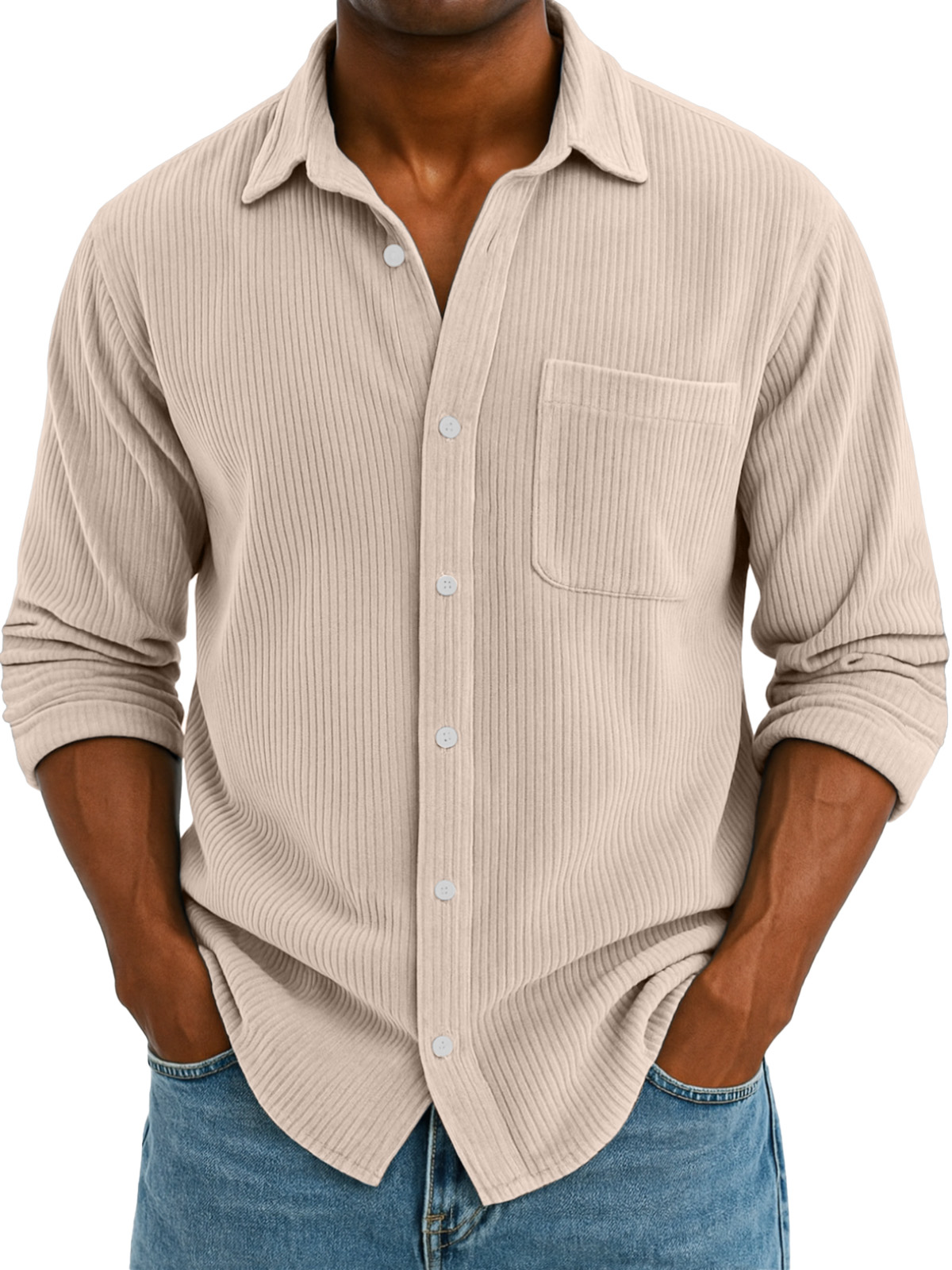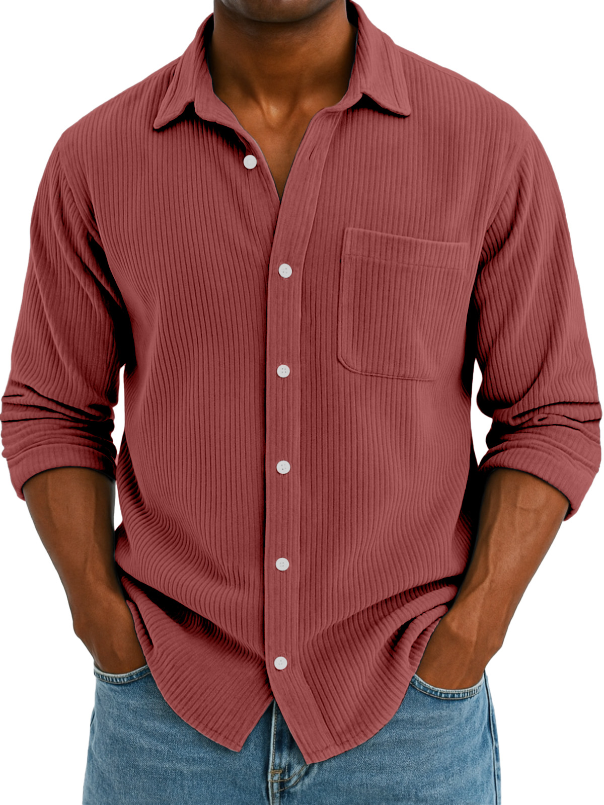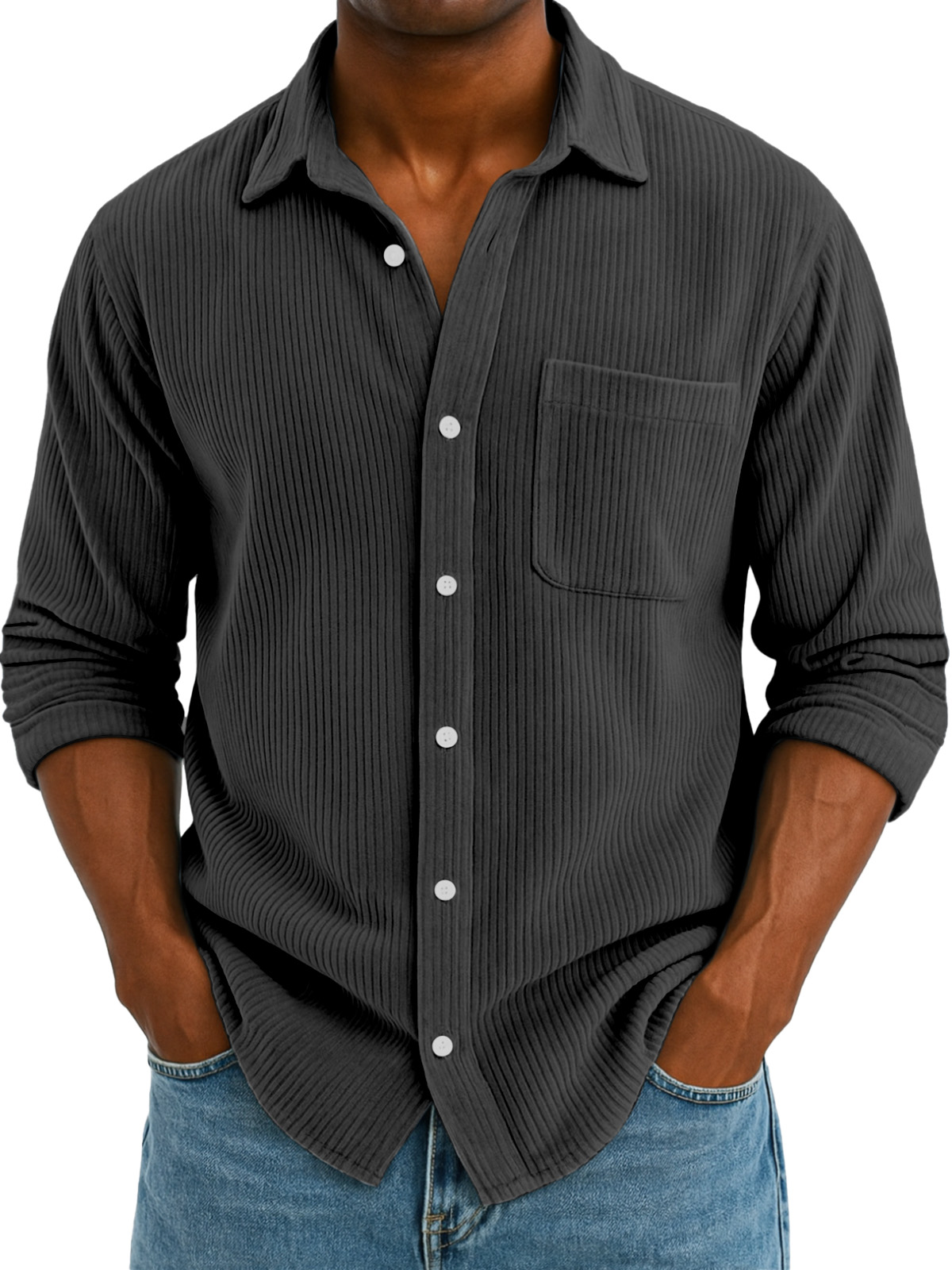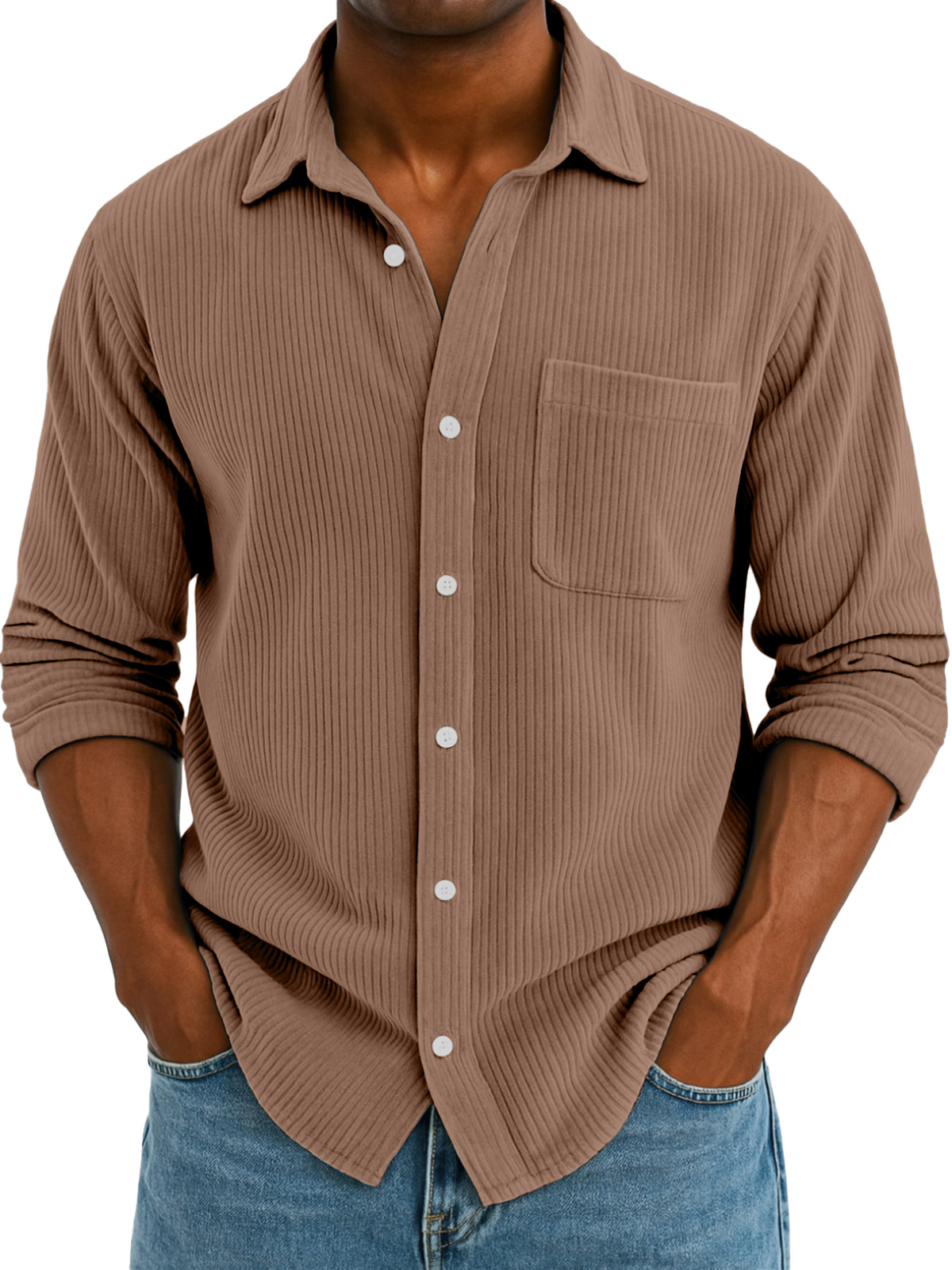Men's Casual Solid Color Corduroy Wide Lapel Long Sleeve Shirt