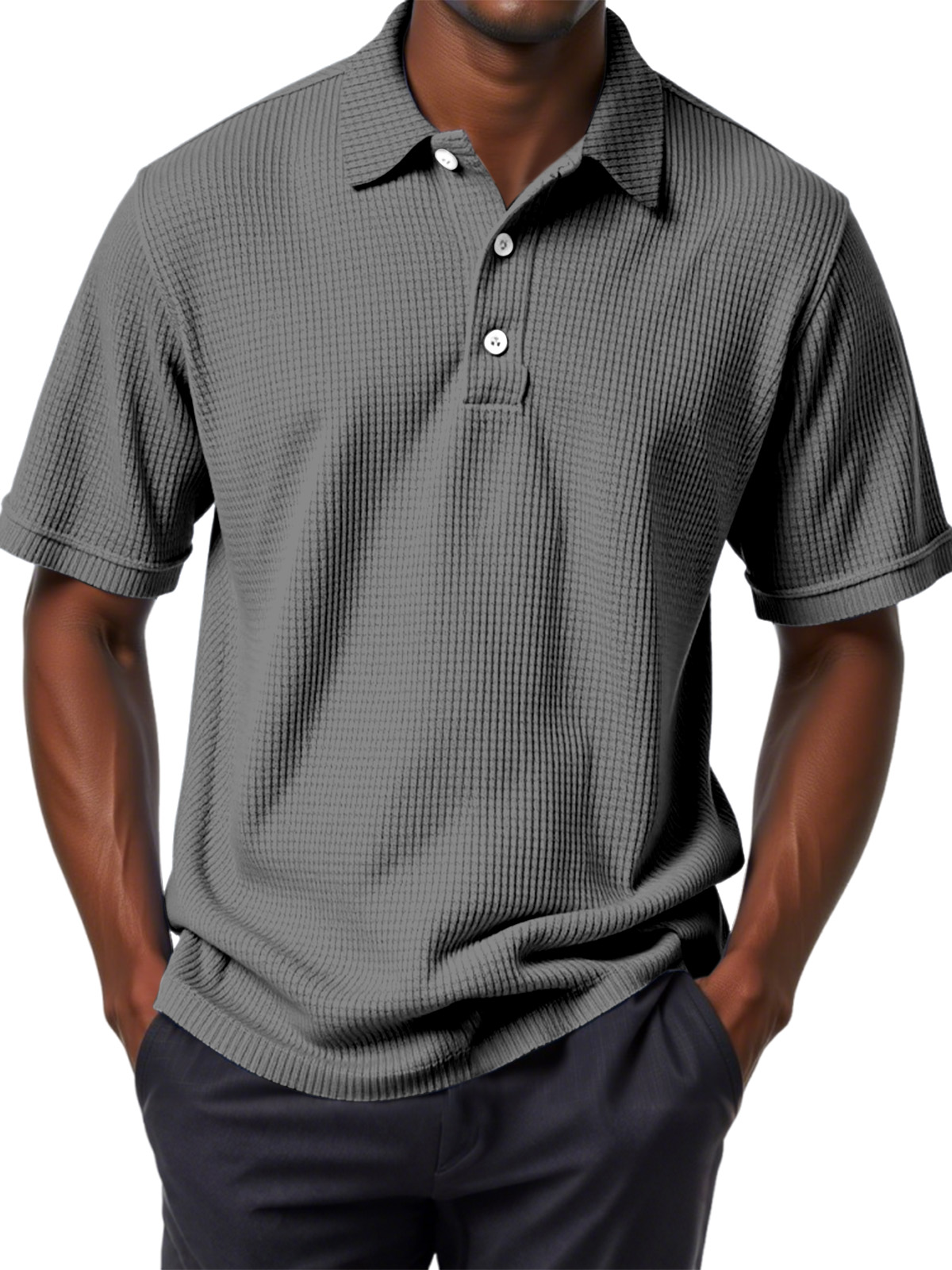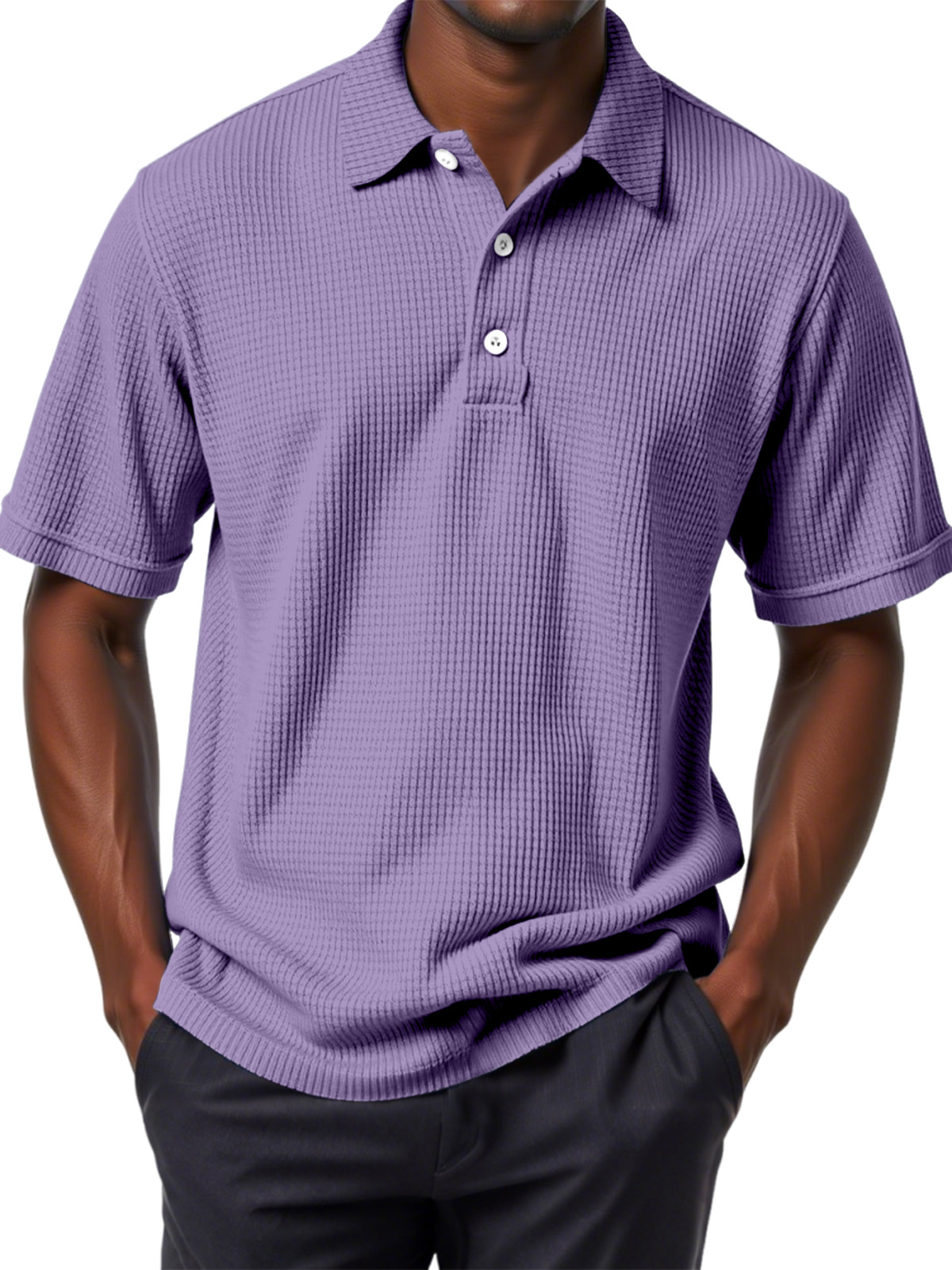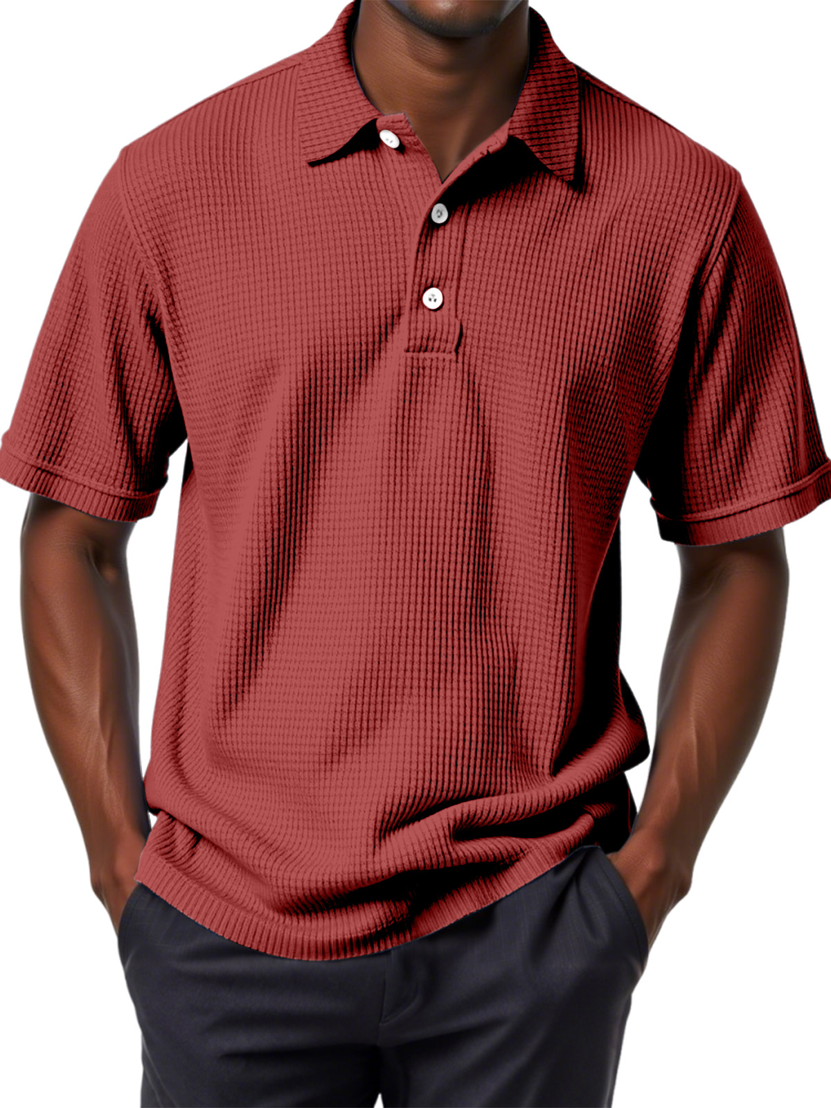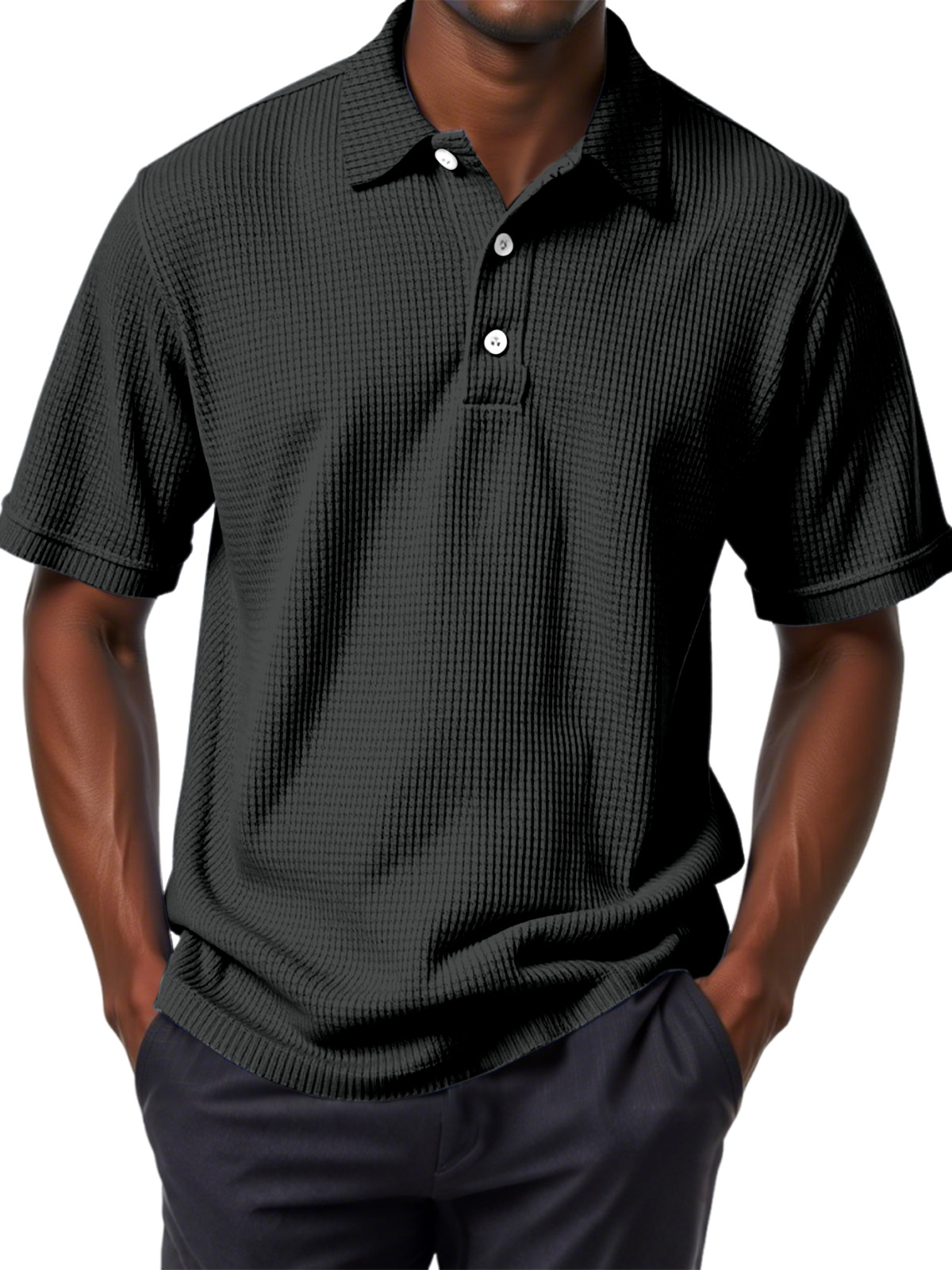 Men's Casual Solid Color Waffle Short Sleeve Polo Shirt
