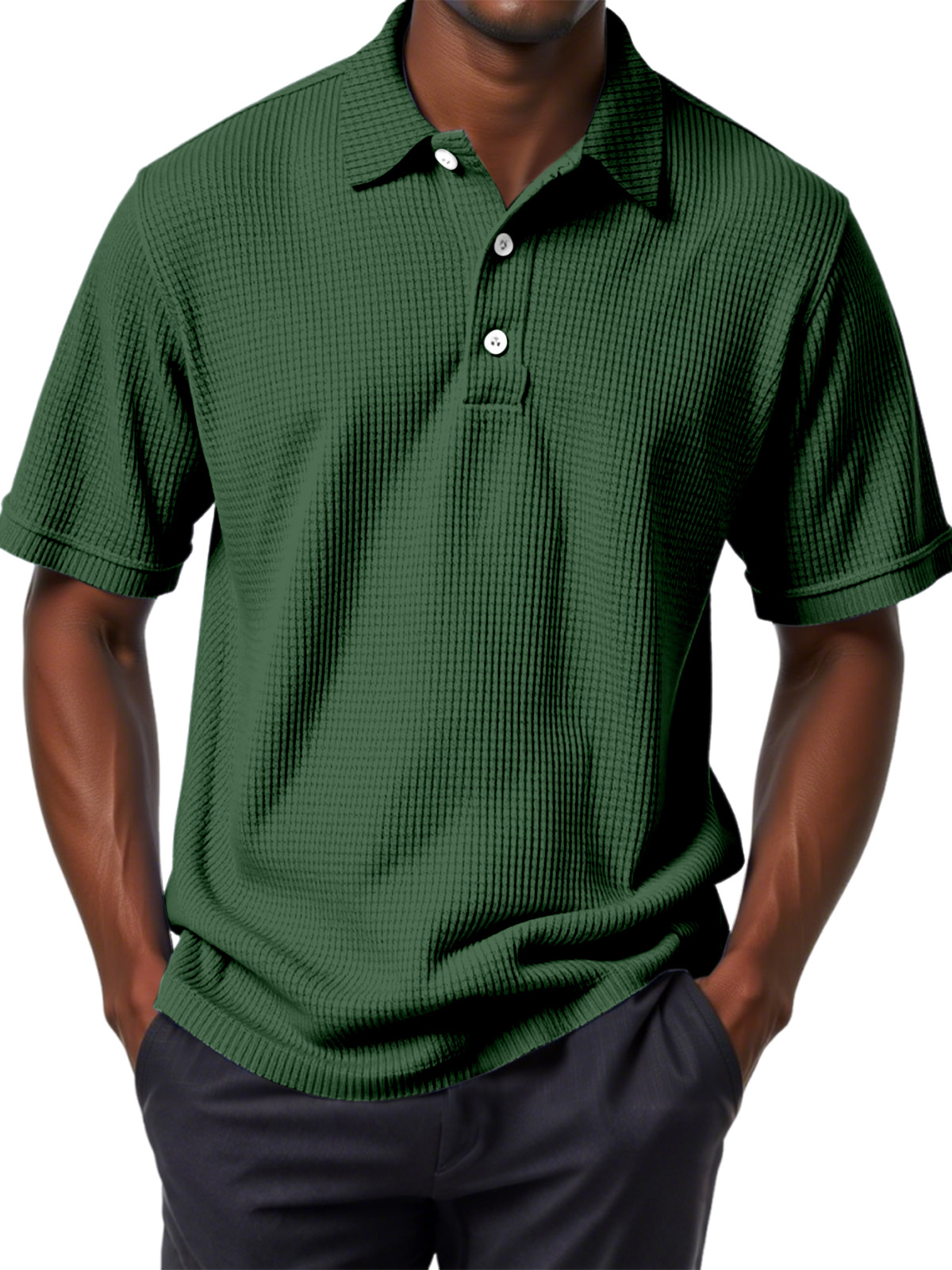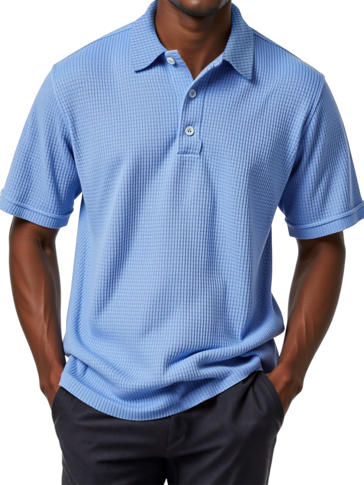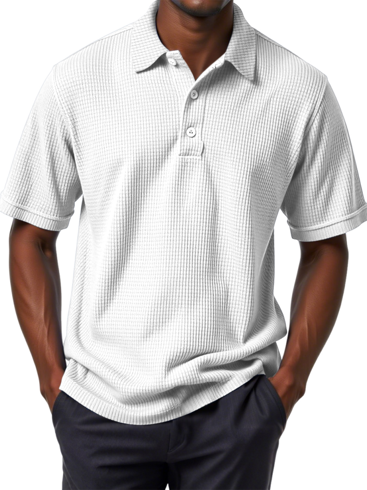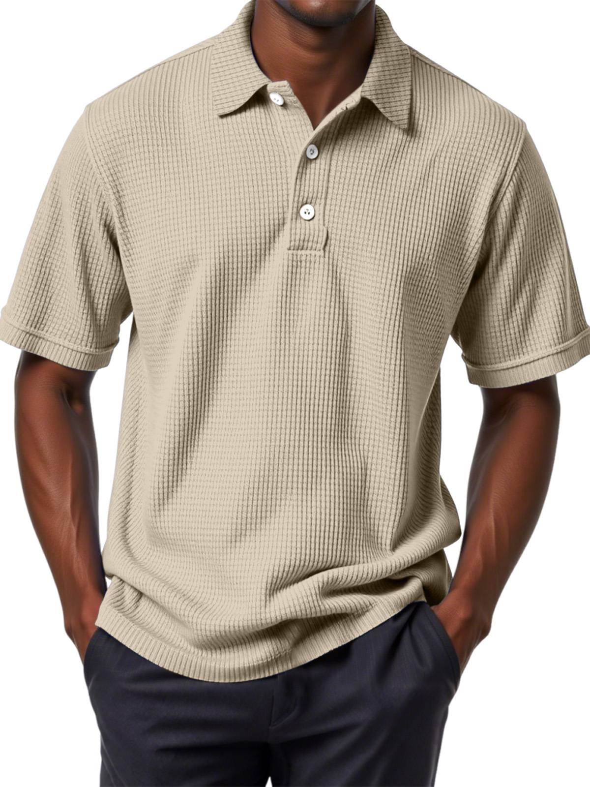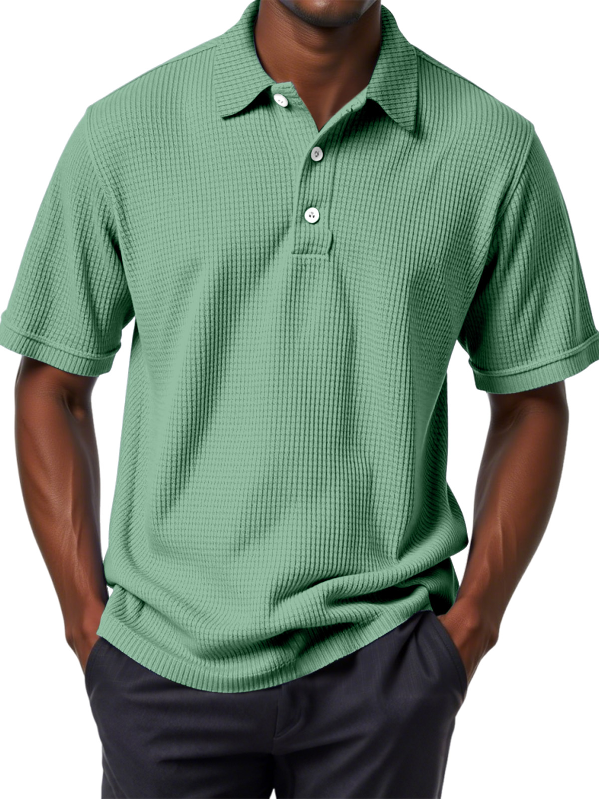Men's Casual Solid Color Waffle Short Sleeve Polo Shirt