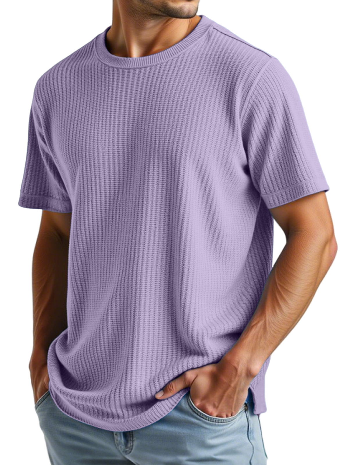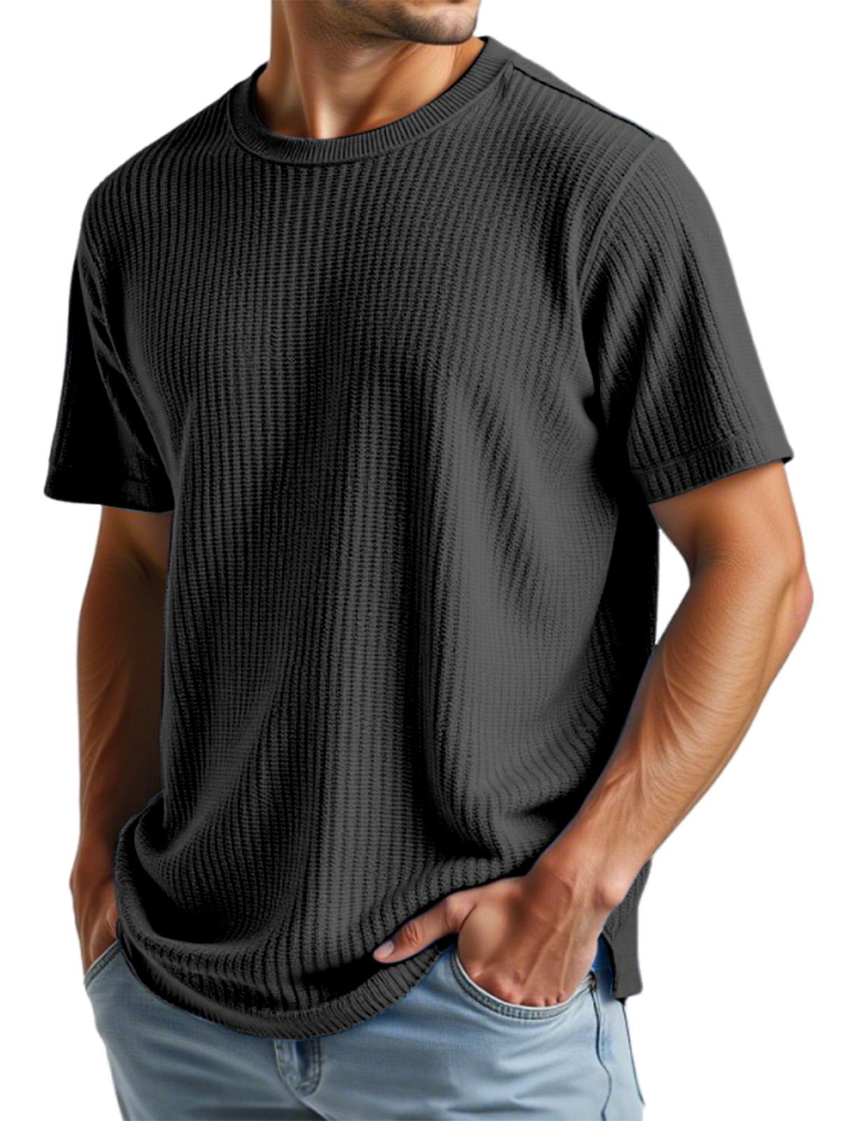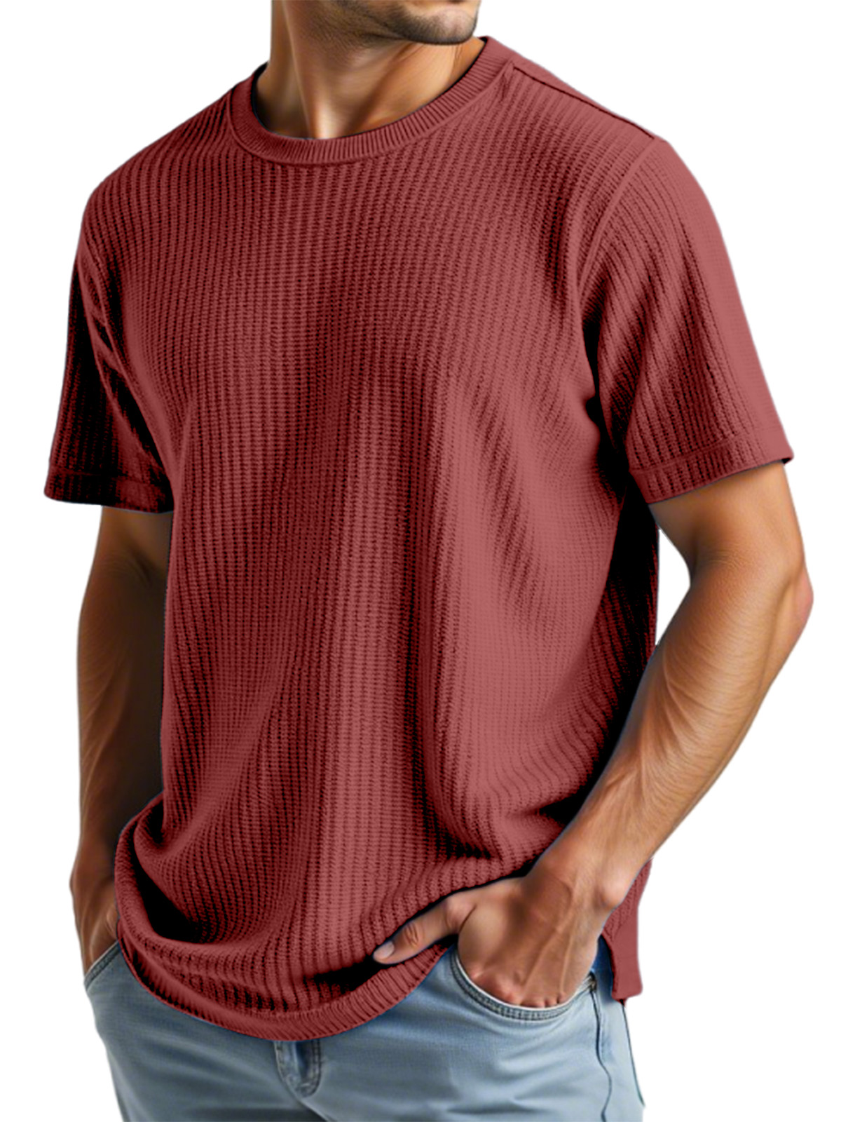 Men's Casual Solid Color Waffle Short Sleeve T-shirt