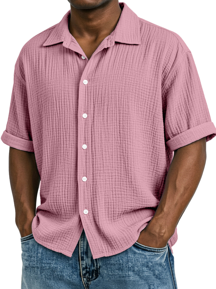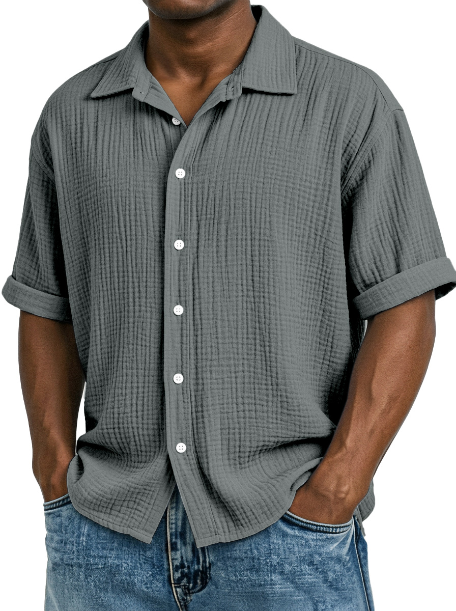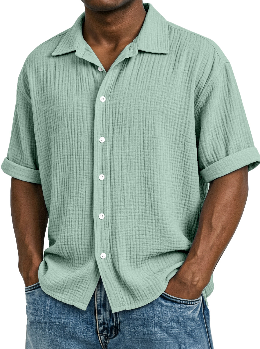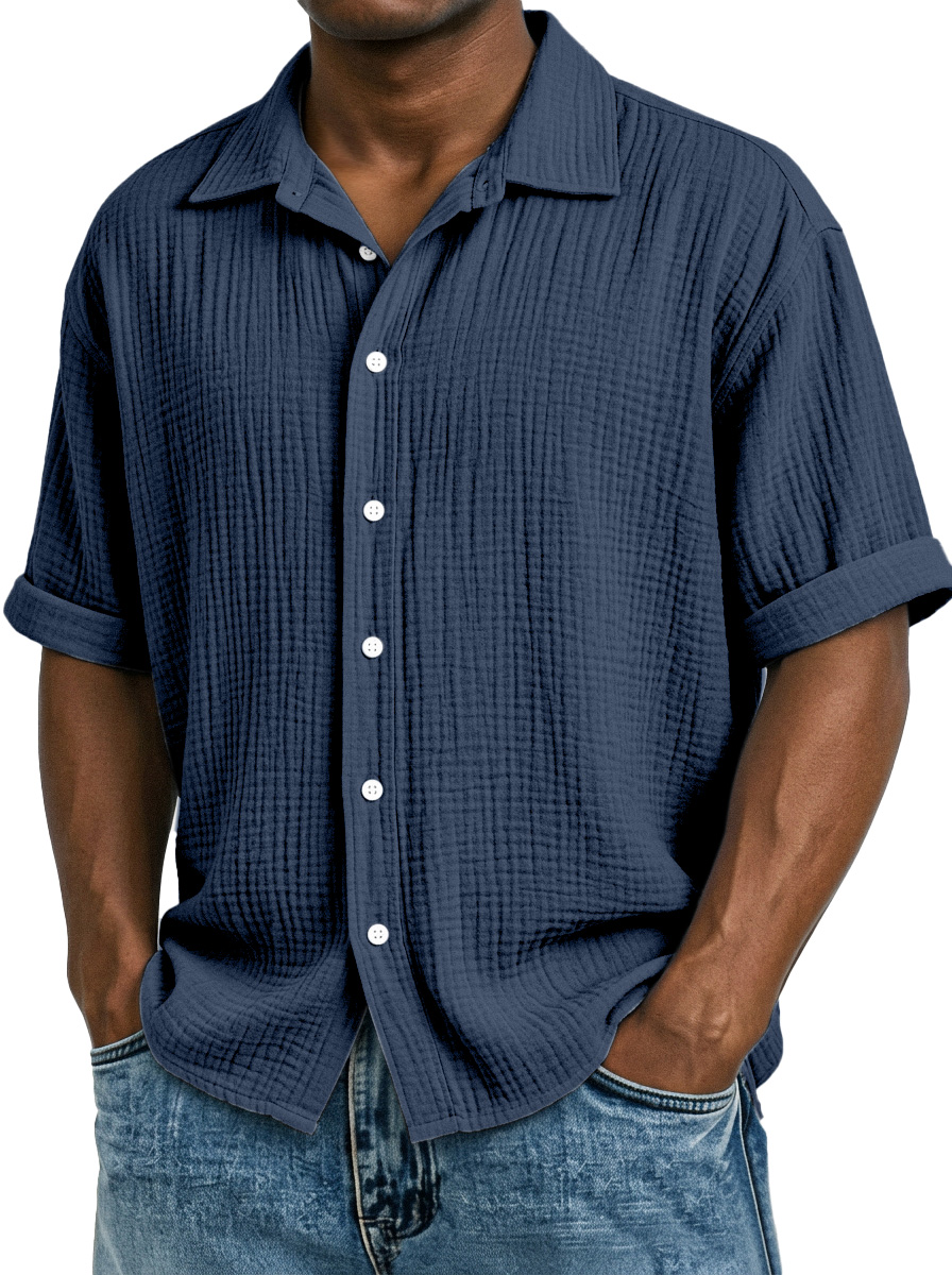 Men's Casual Vacation Breathable And Comfortable Pleated Short-sleeved Shirt