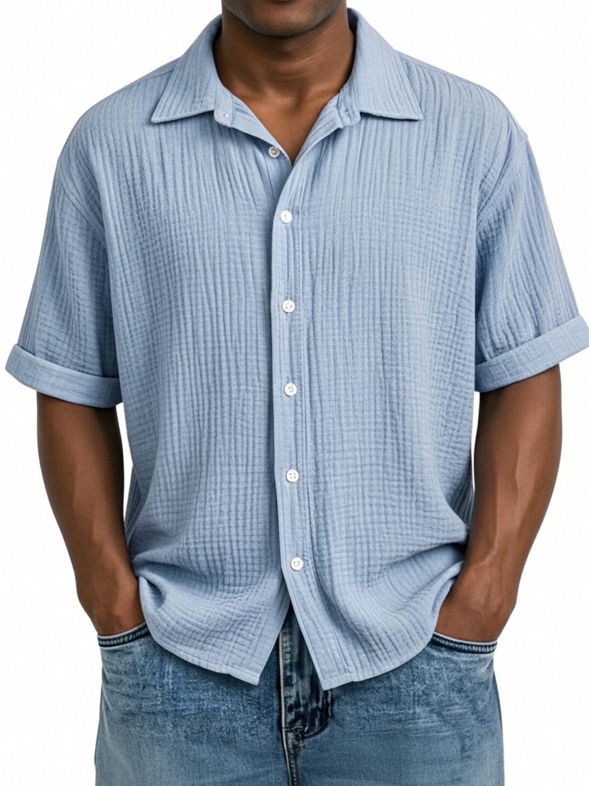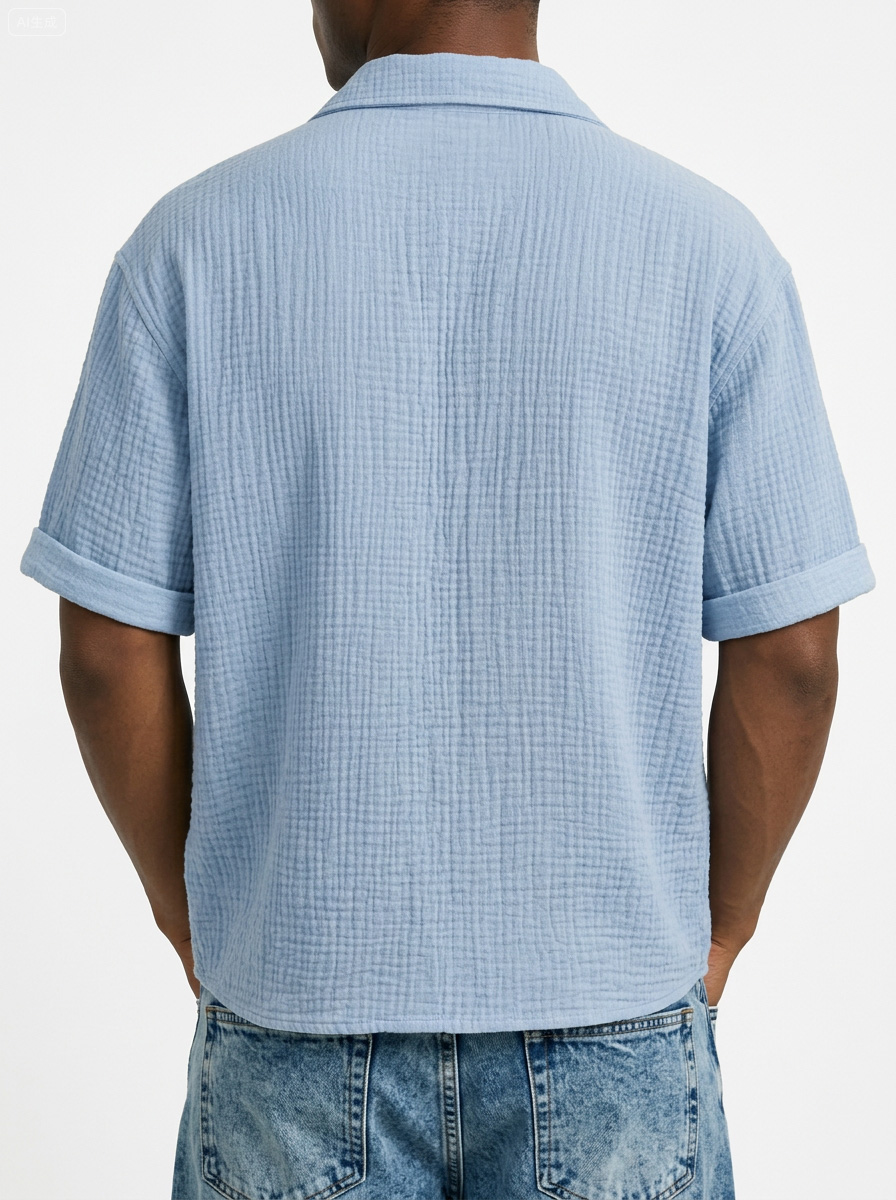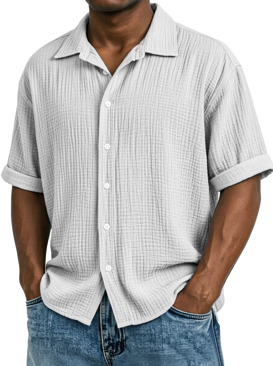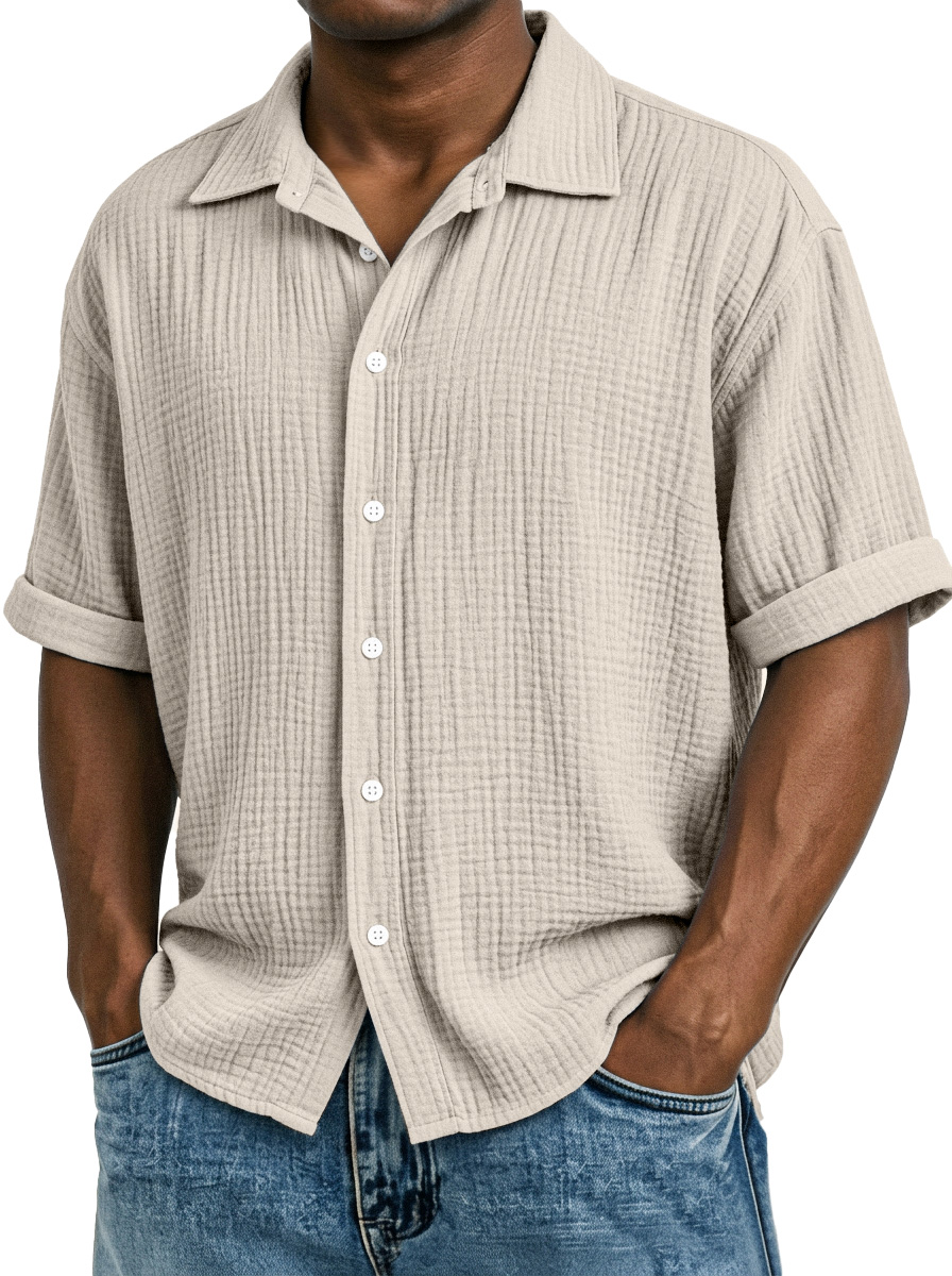 Men's Casual Vacation Breathable And Comfortable Pleated Short-sleeved Shirt