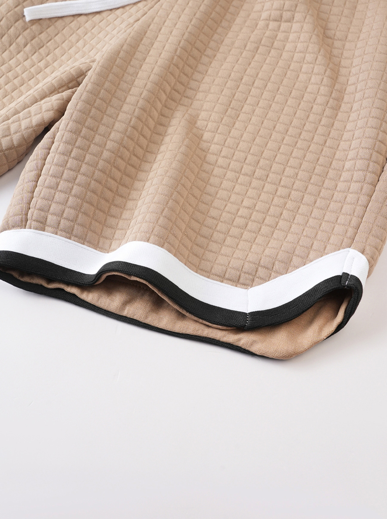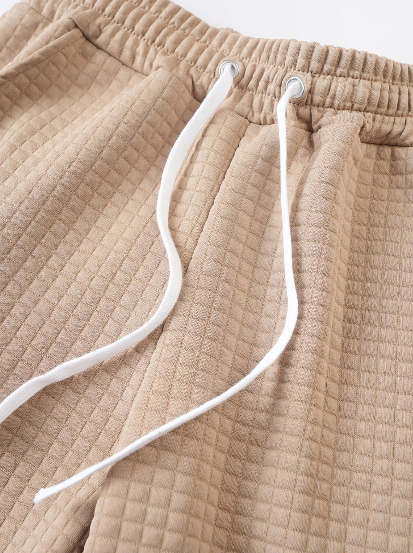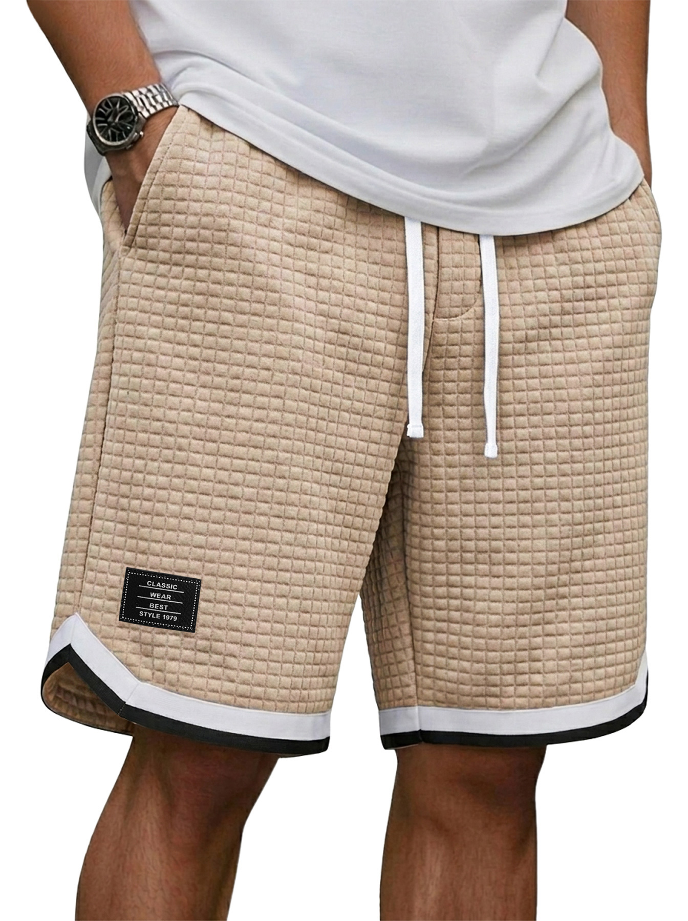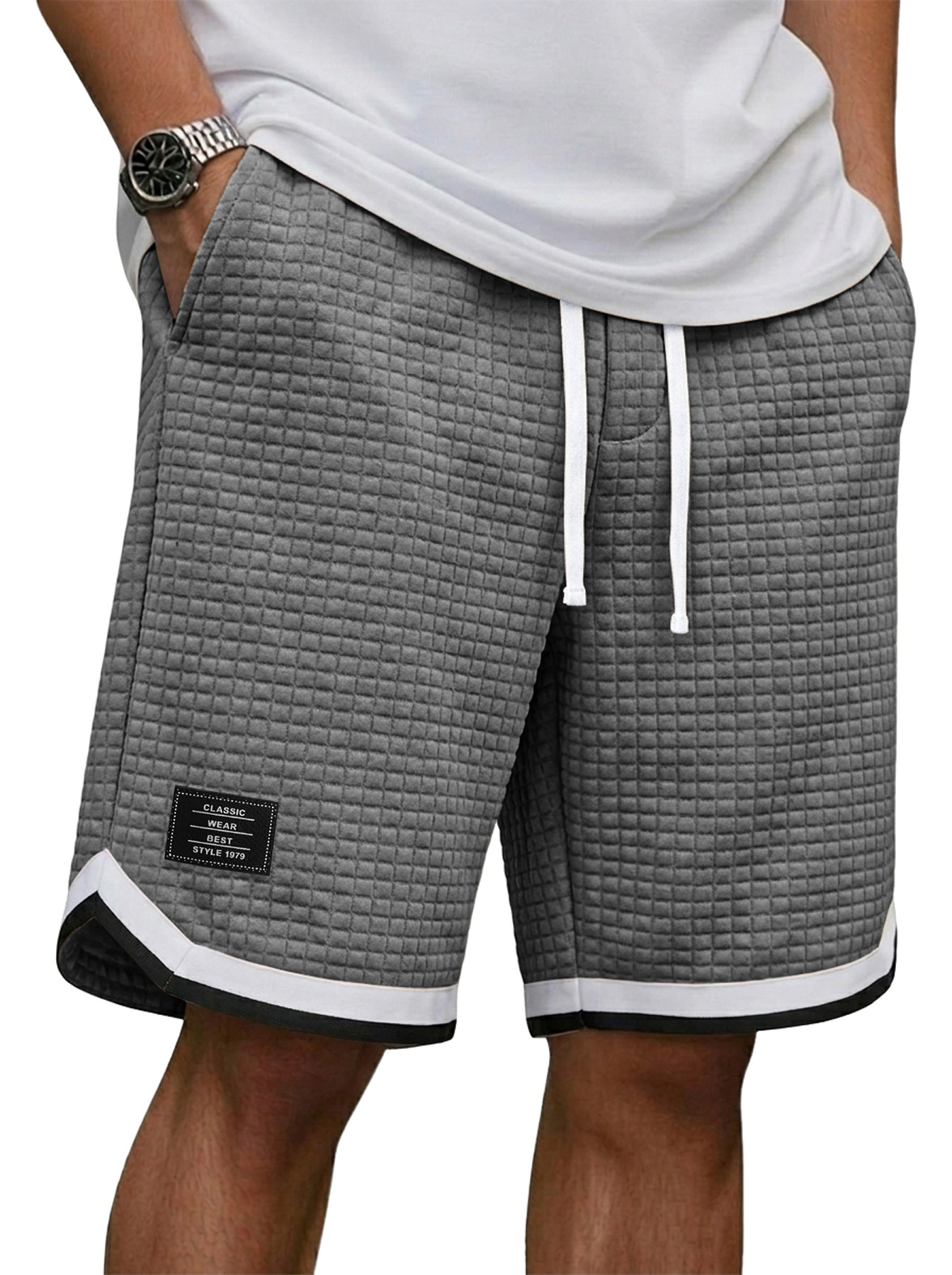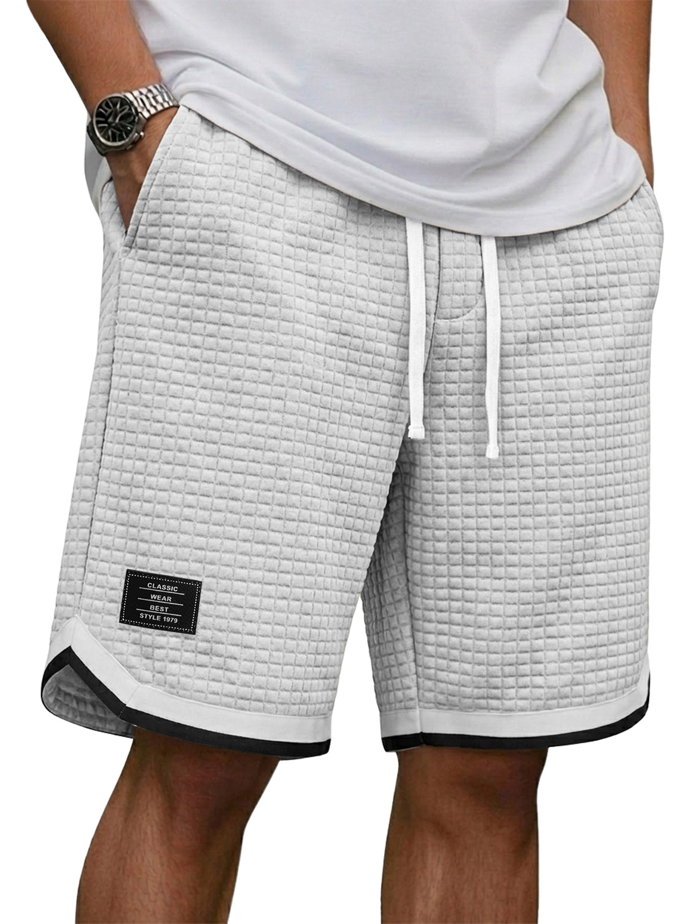 Men's Casual Waffle Knit Embroidered Logo Patchwork Webbing Loose Shorts