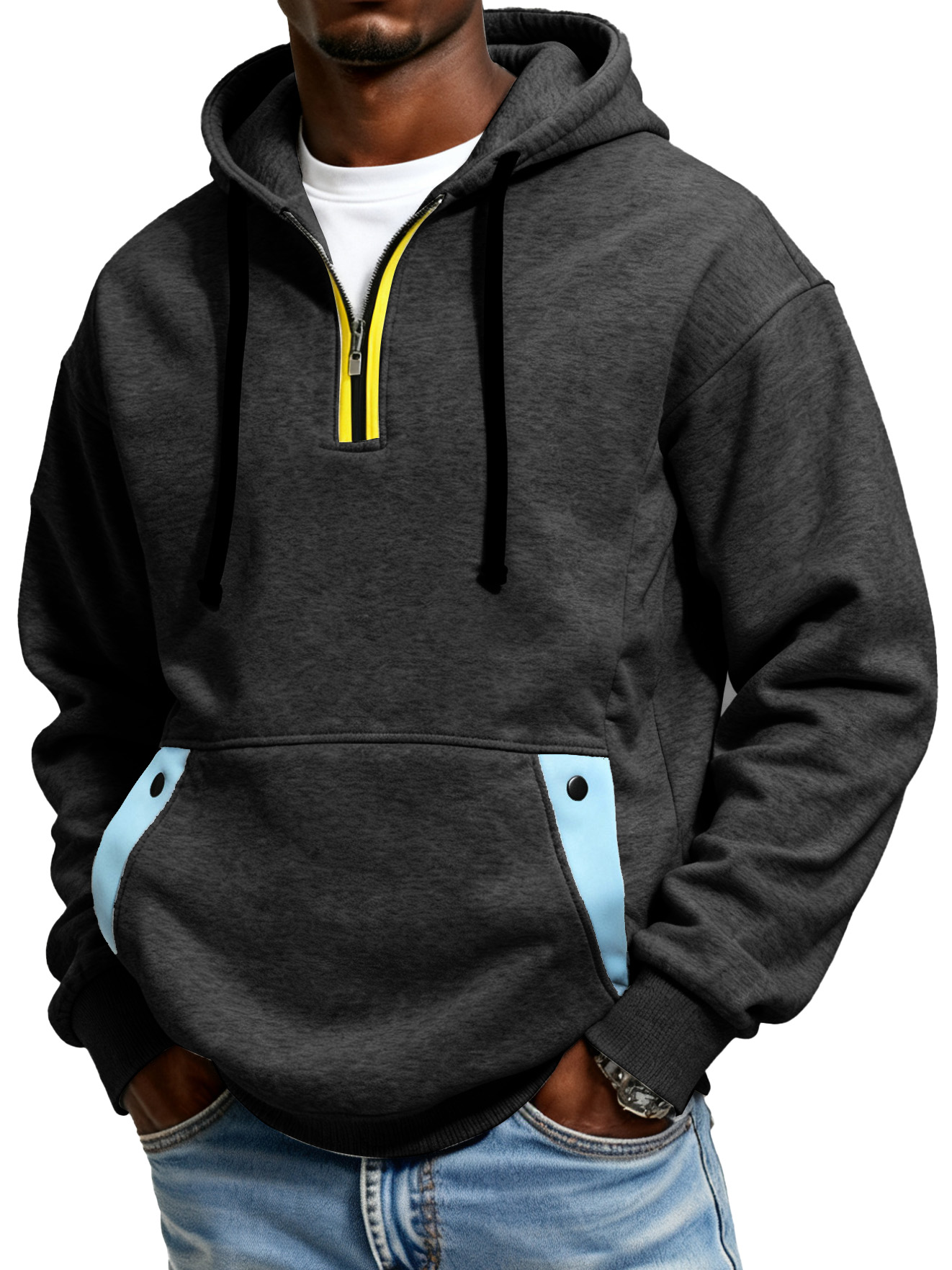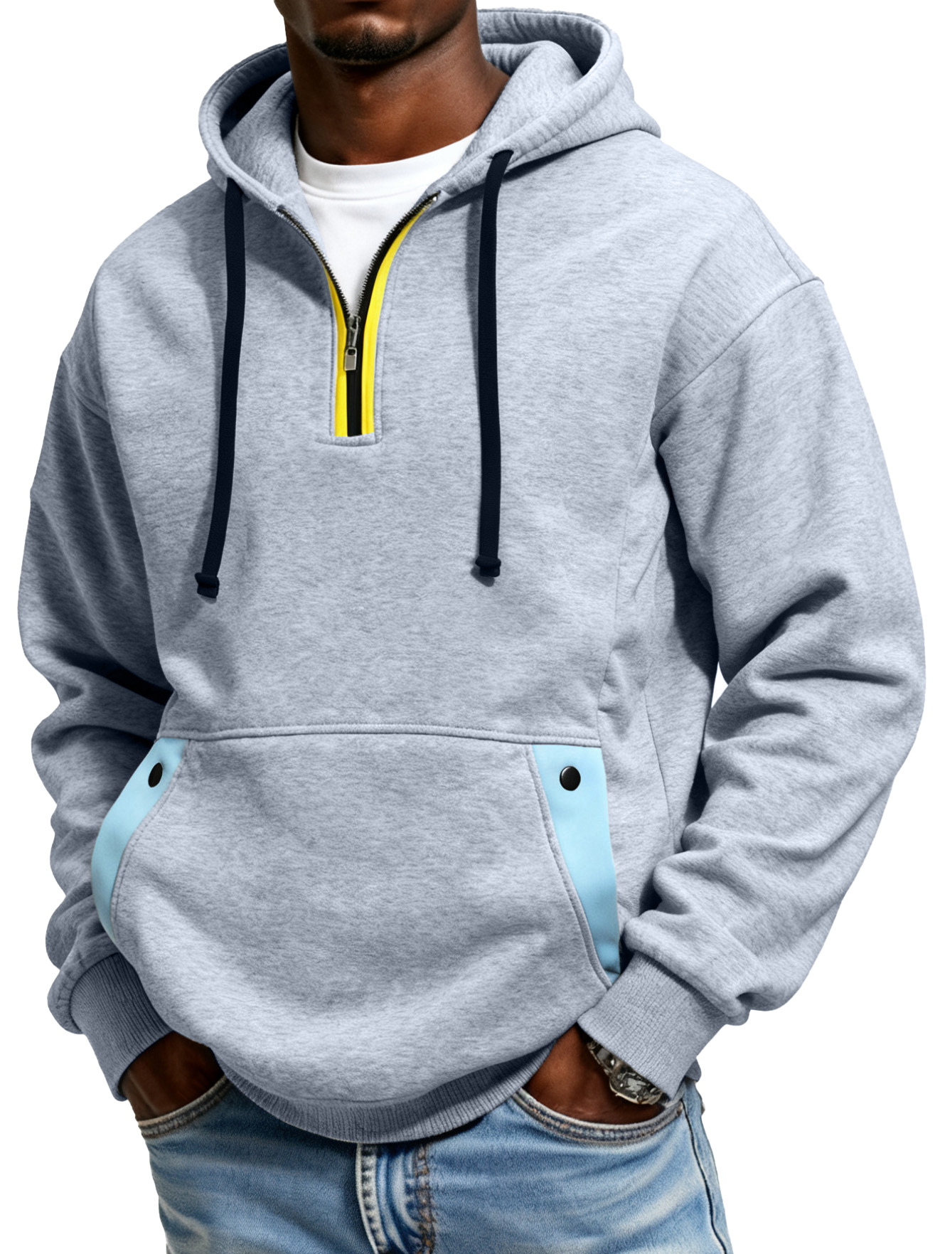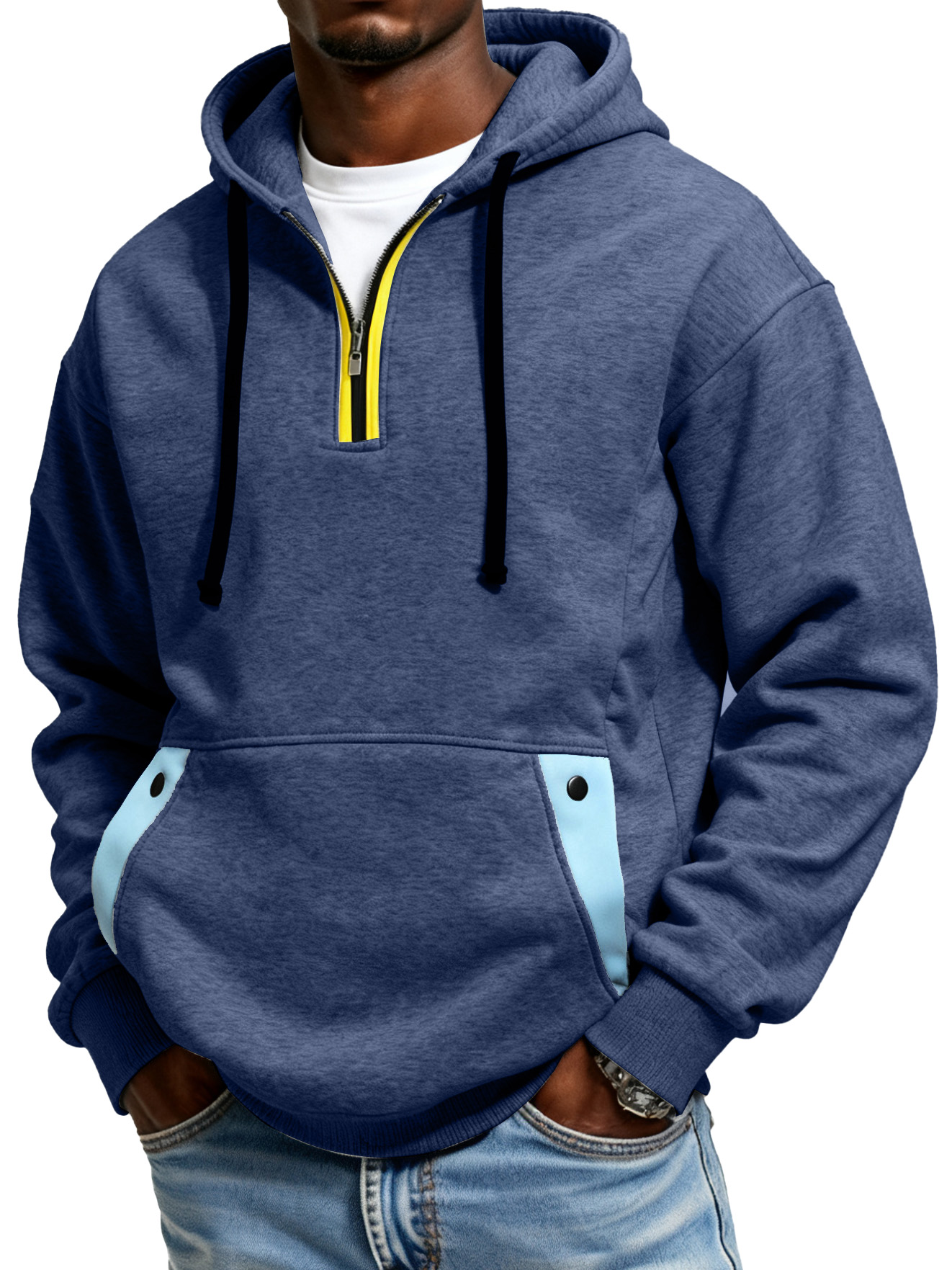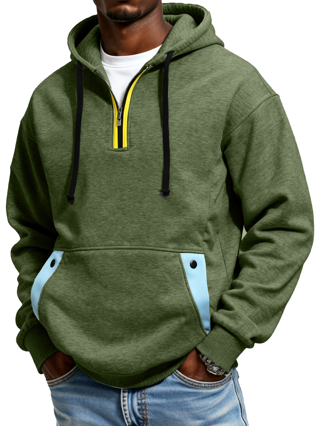 Men's Color Blocked Half Zip Hooded Pocket Sweatshirt