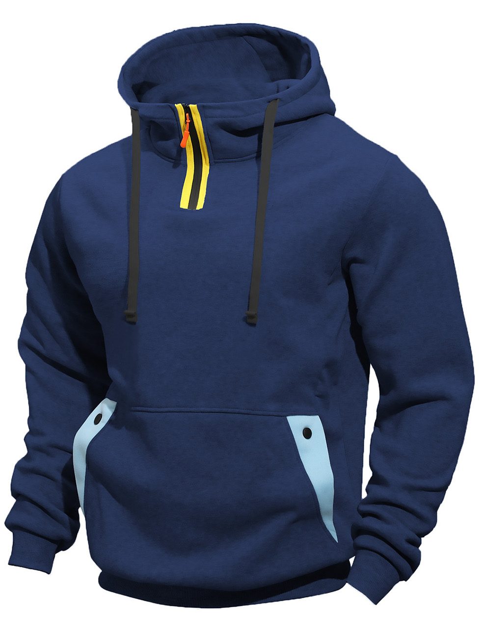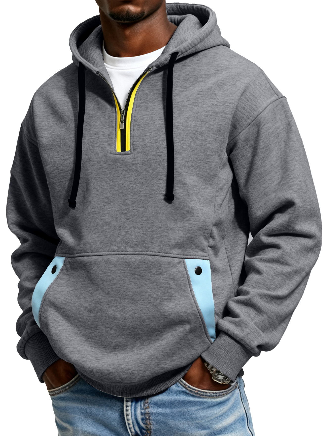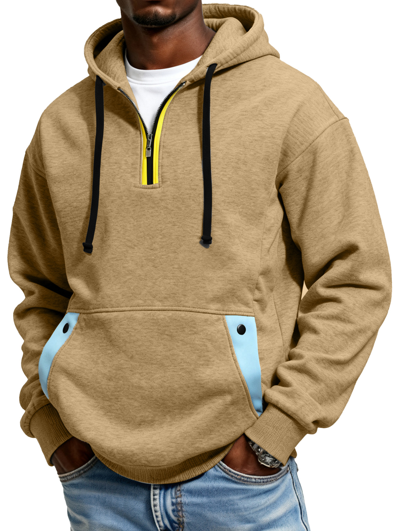 Men's Color Blocked Half Zip Hooded Pocket Sweatshirt