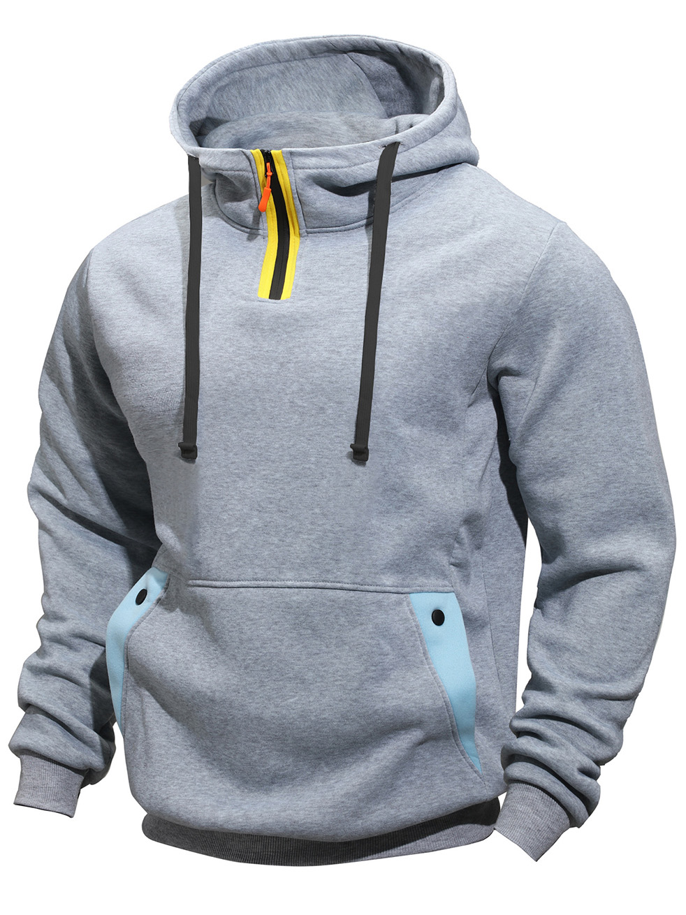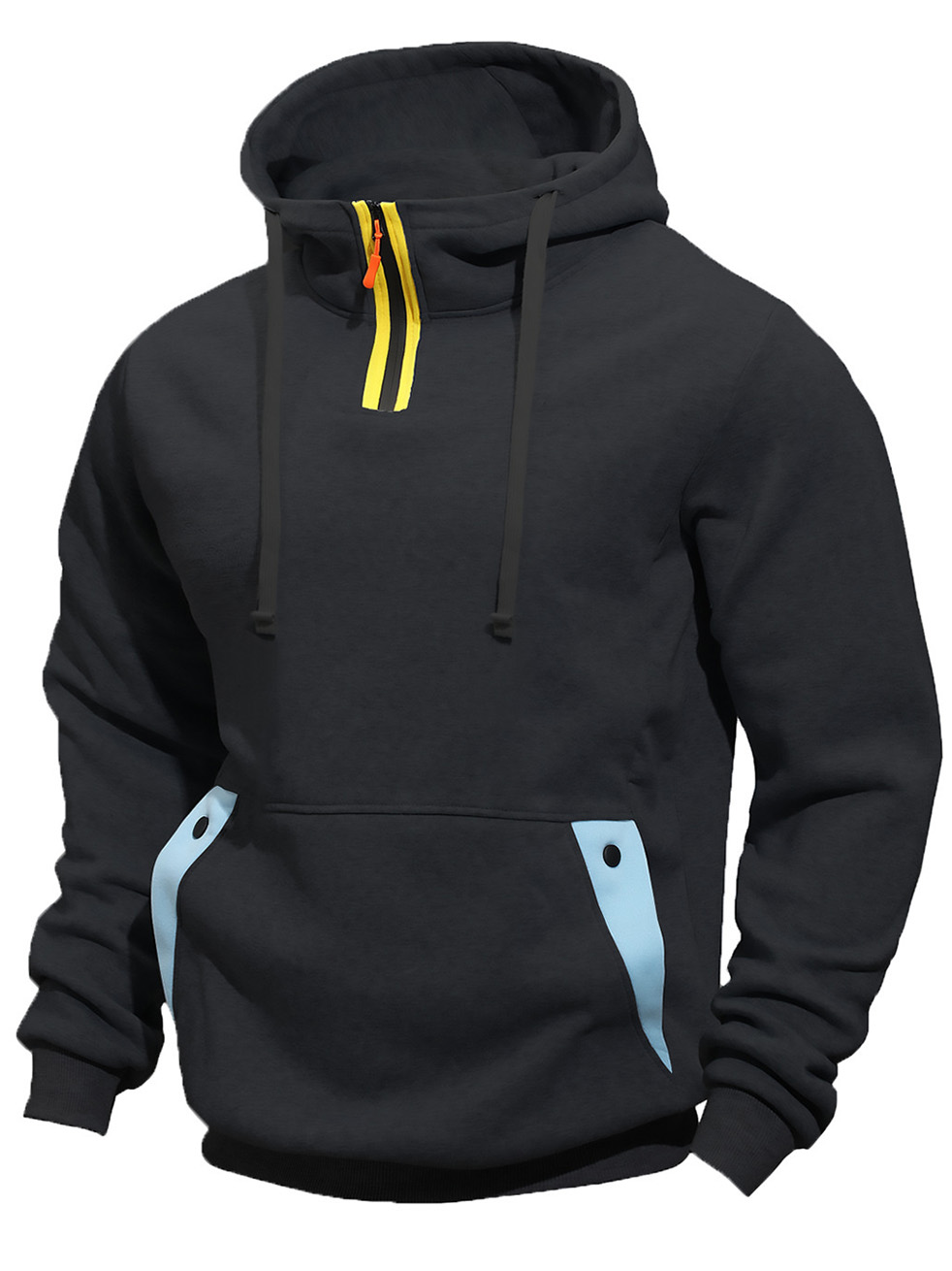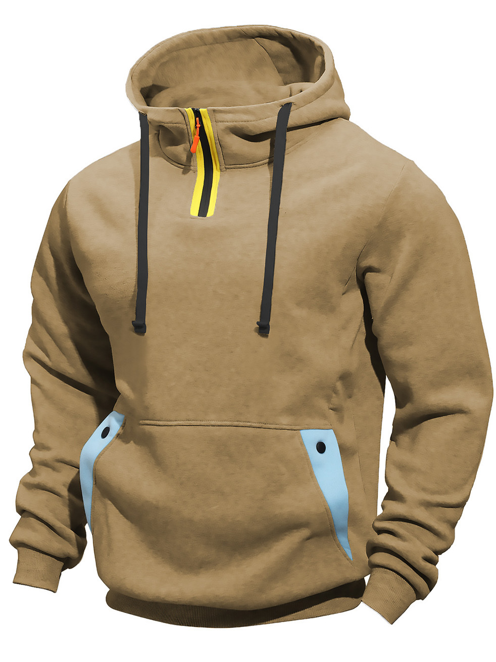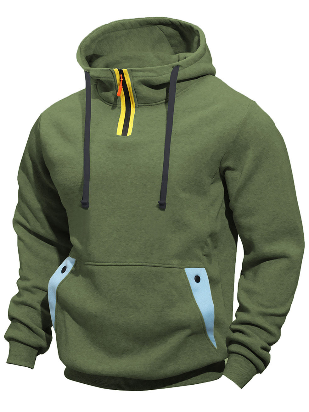 Men's Color Blocked Half Zip Hooded Pocket Sweatshirt