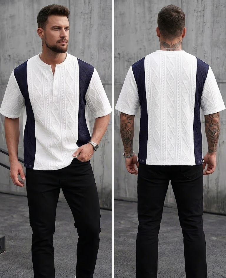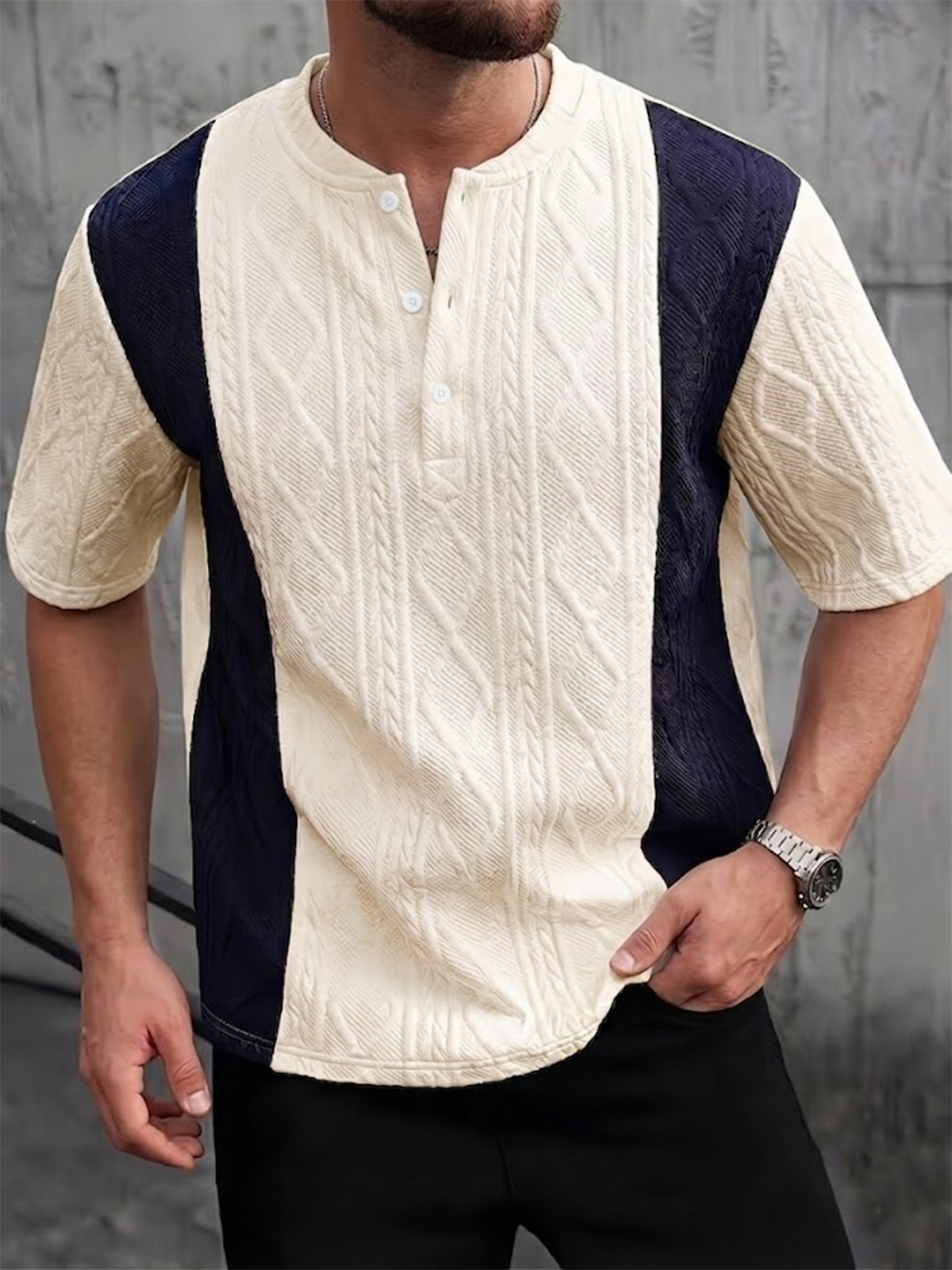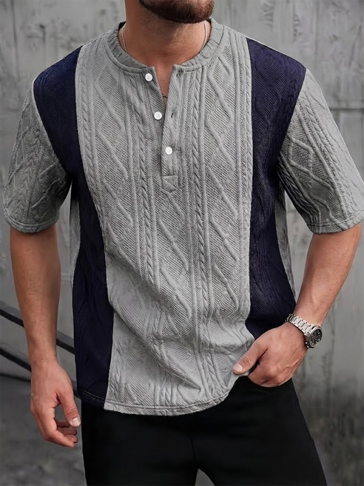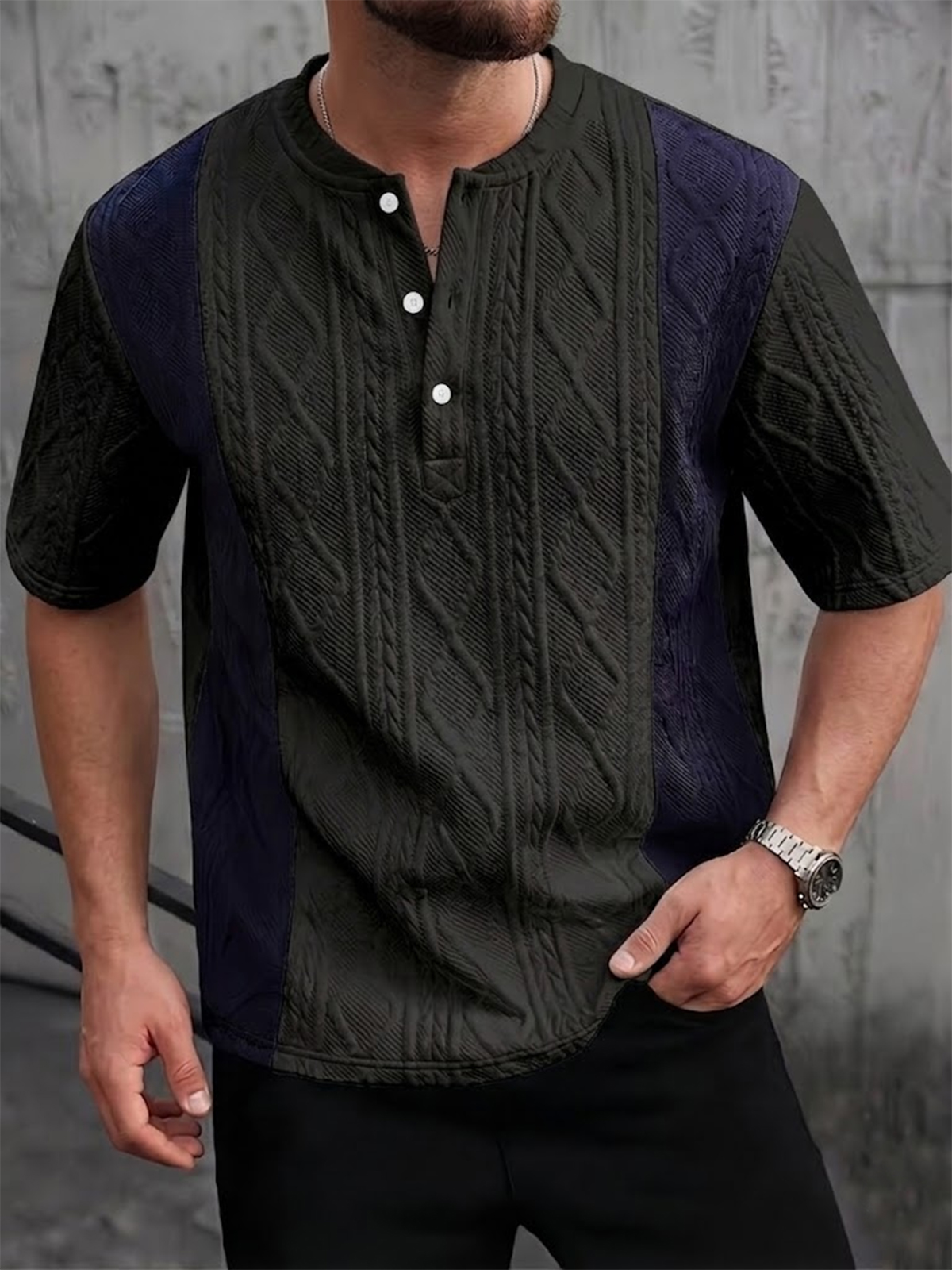 Men's Color-blocked Jacquard Textured Pullover Henley