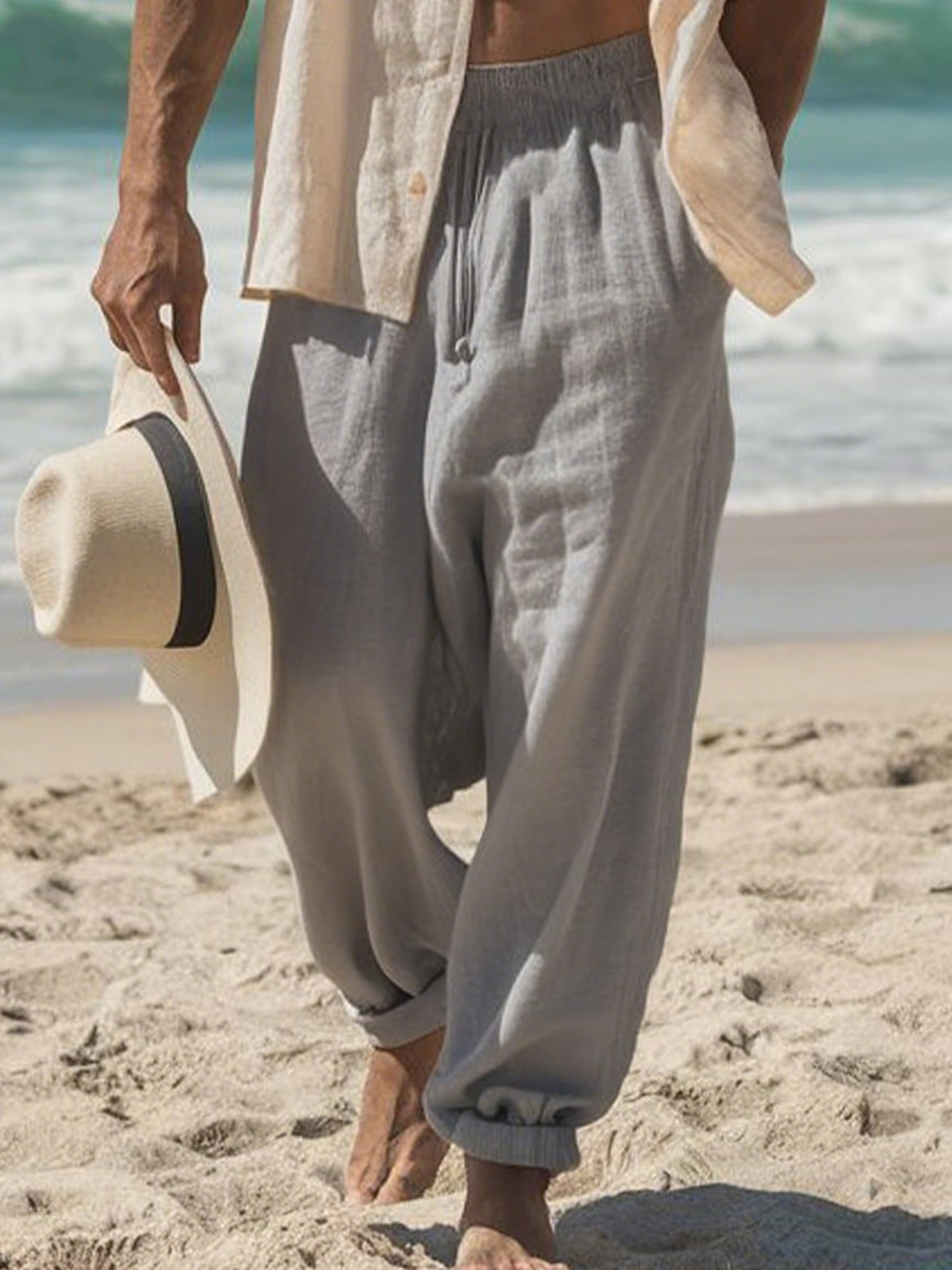 Men's Comfort Linen Loose Casual Breathable Vacation Wide-leg Pants