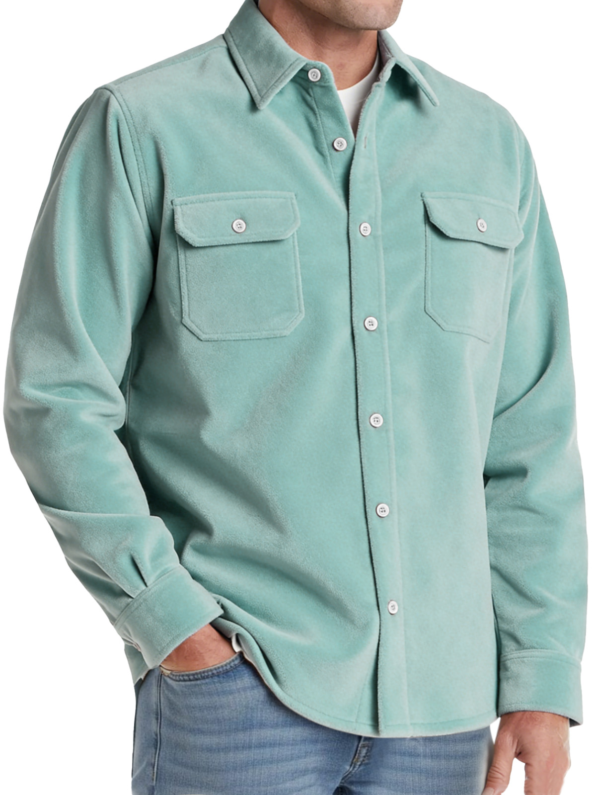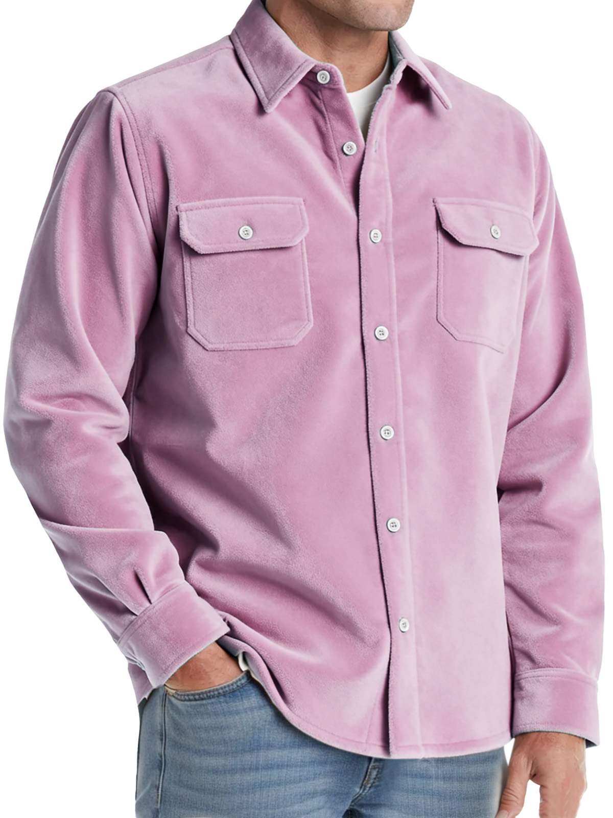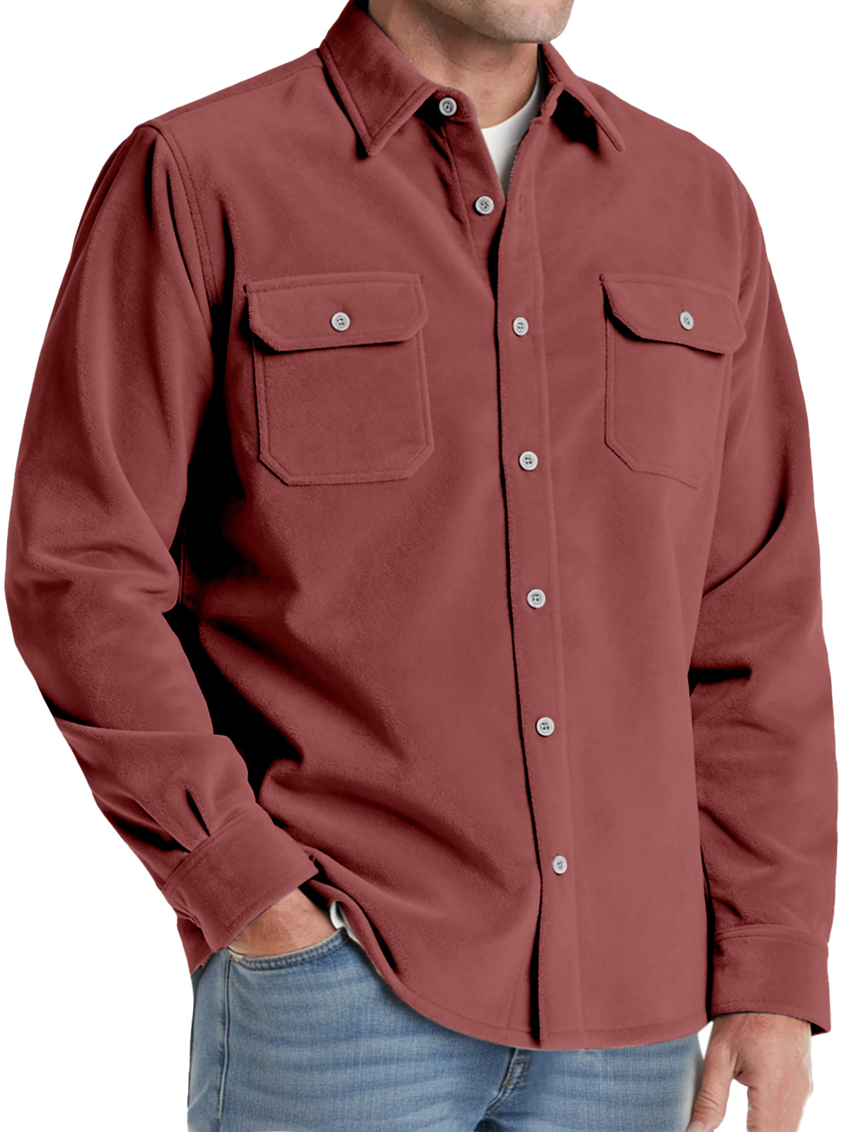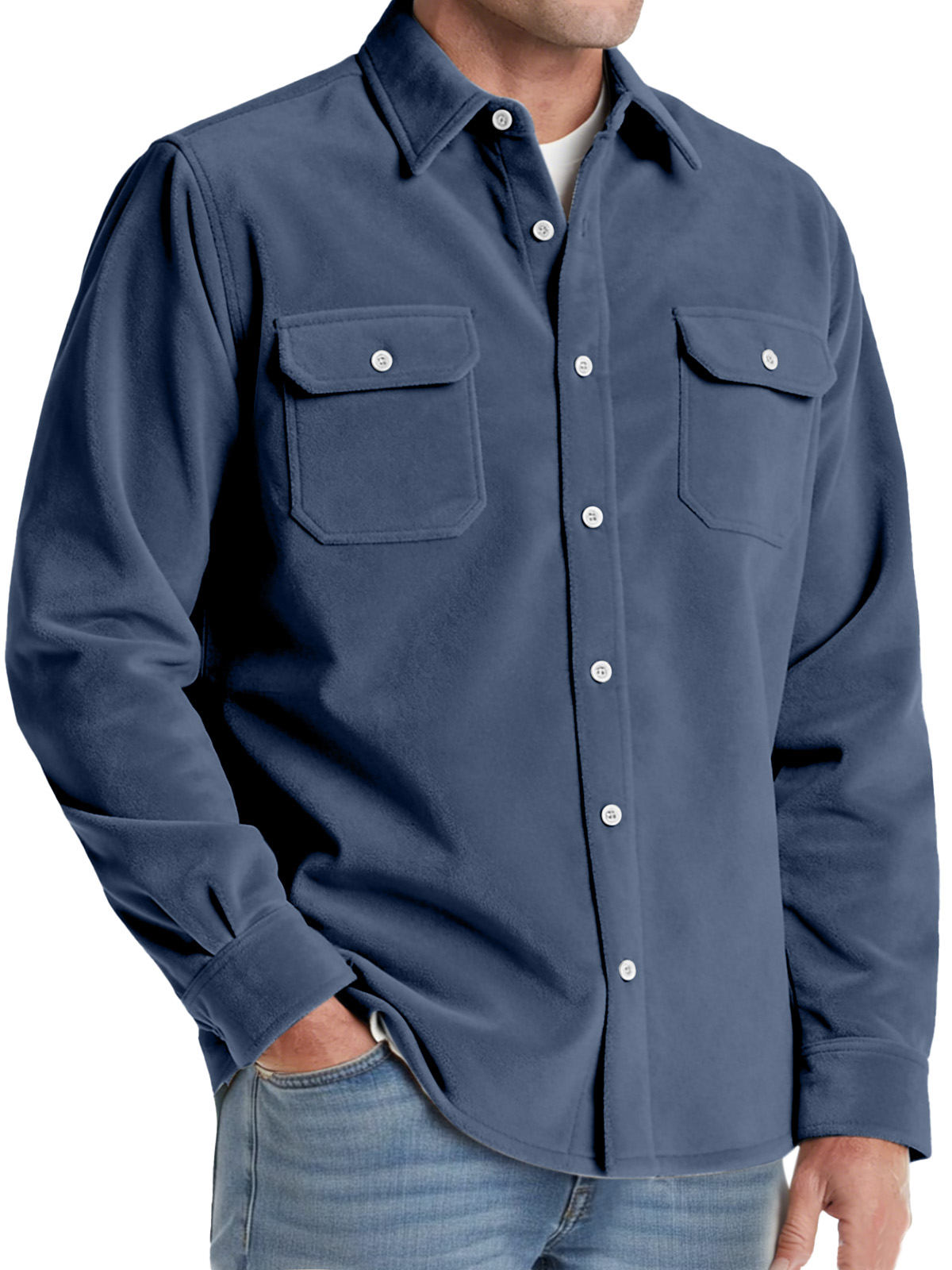 Men's Comfortable Solid-color Suede Double-pocket Long-sleeved Shirt