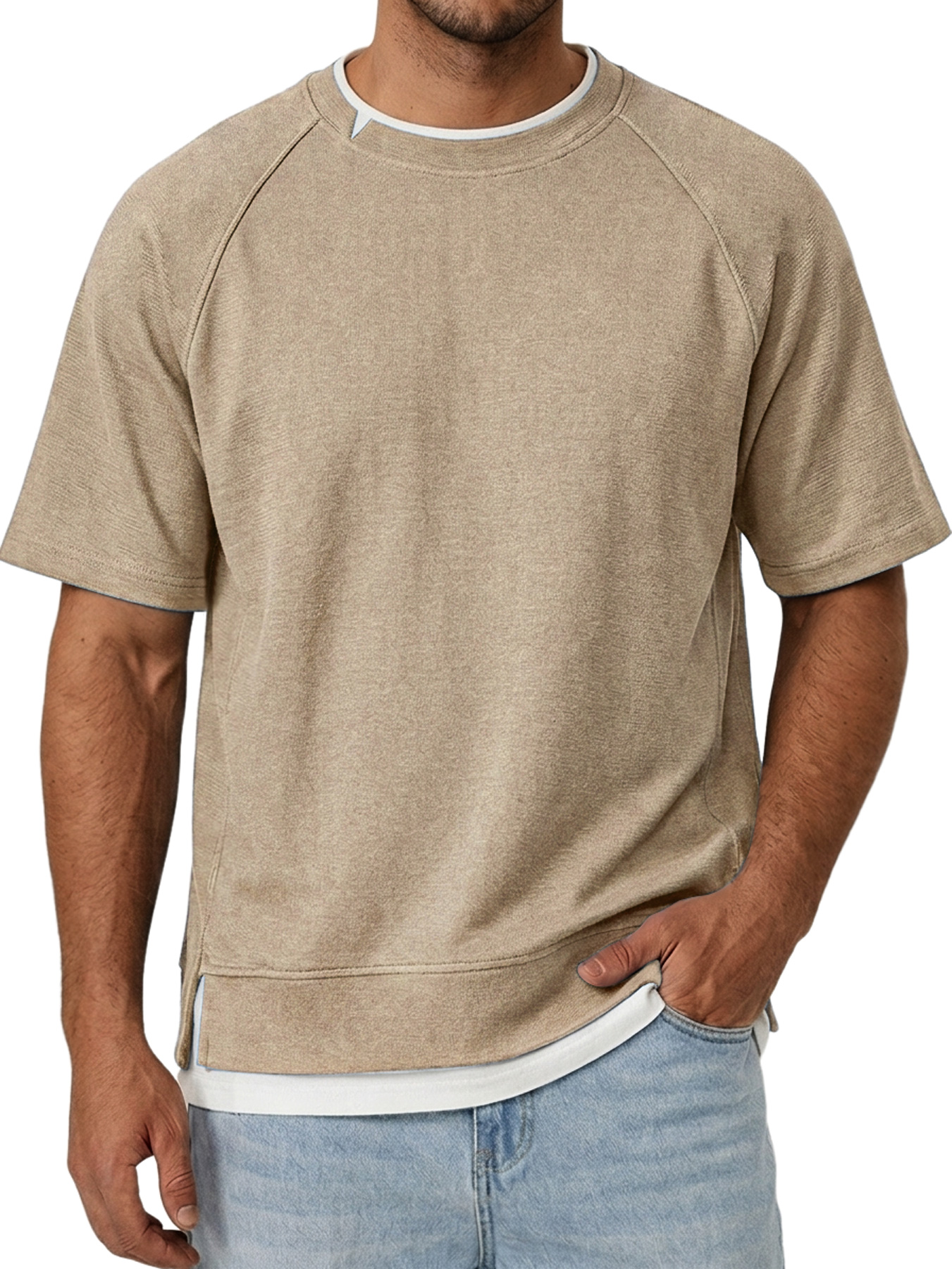 Men's Crew Neck Faux Two-Piece Casual Short-Sleeve T-Shirt
