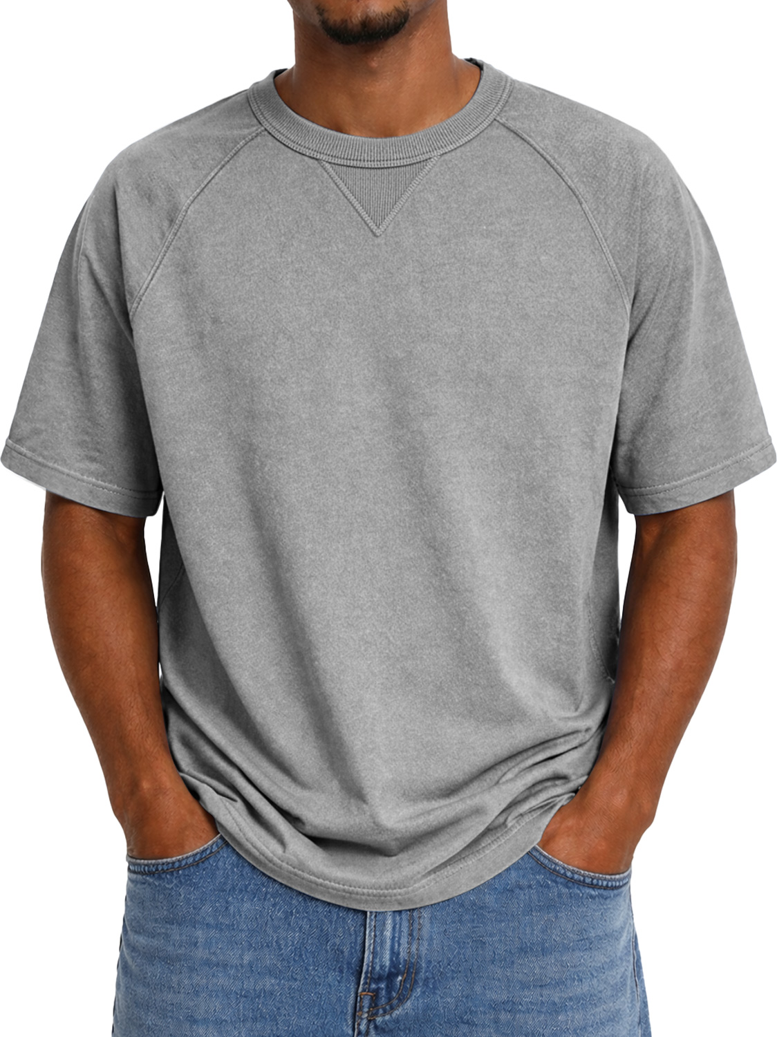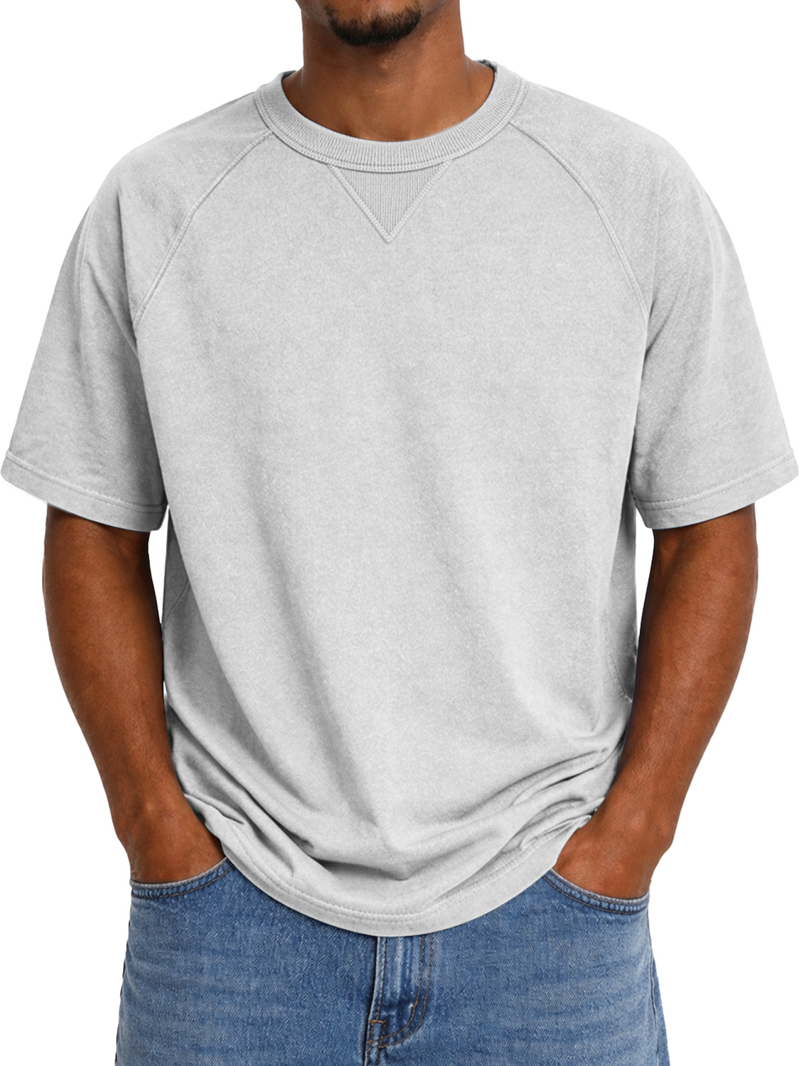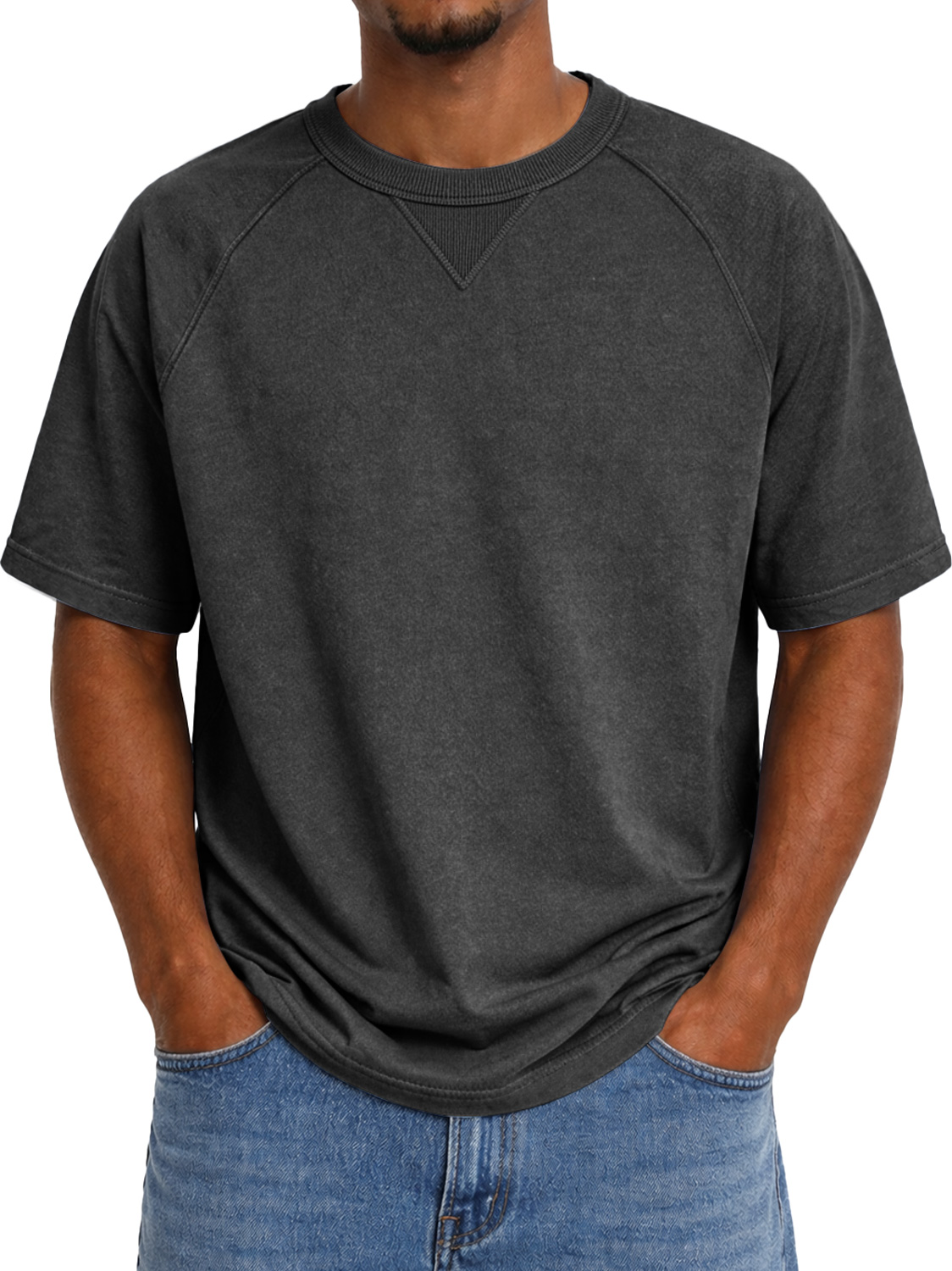 Men's Crew Neck Raglan Short-sleeved T-shirt With Inverted Triangle Design