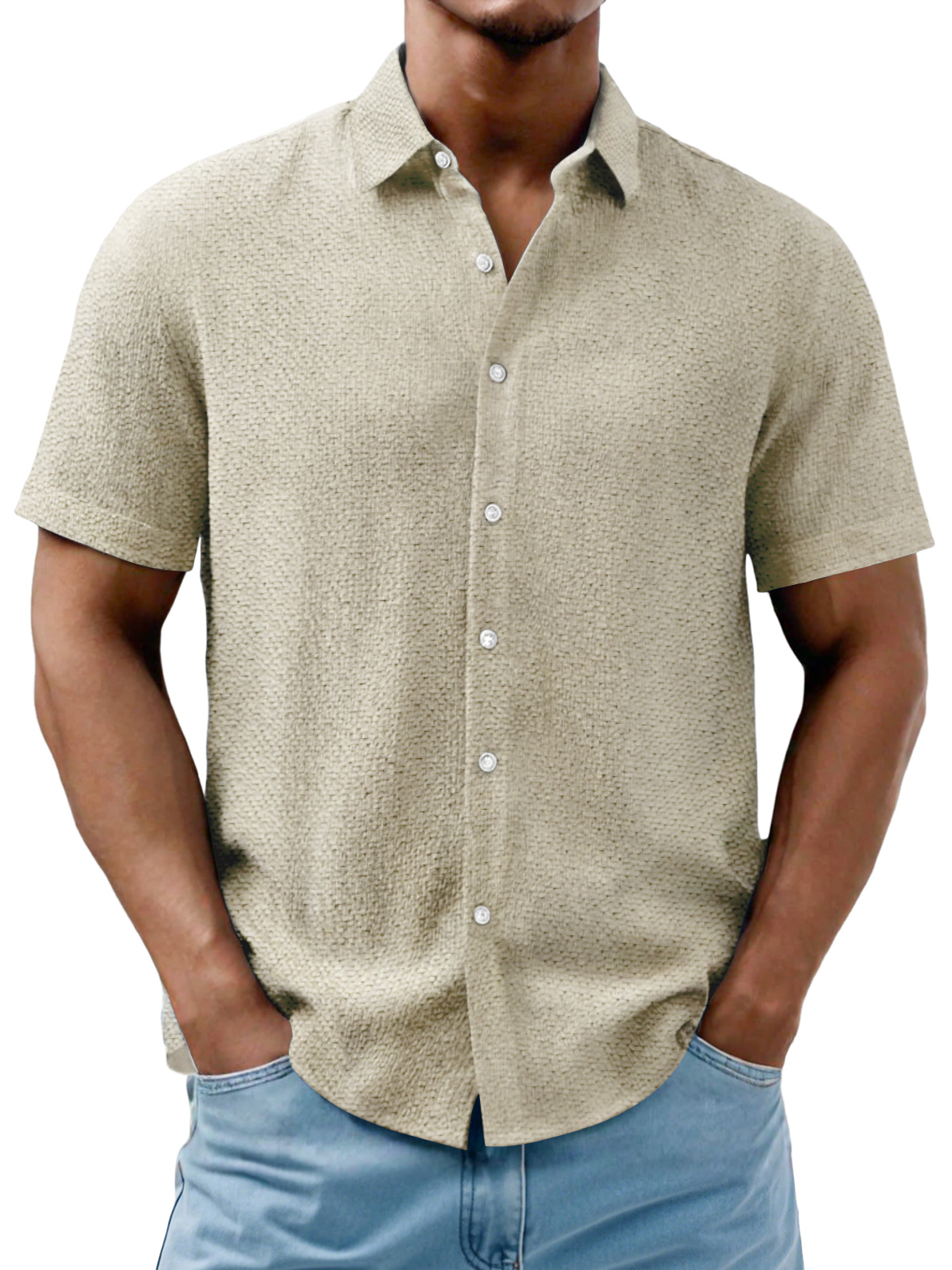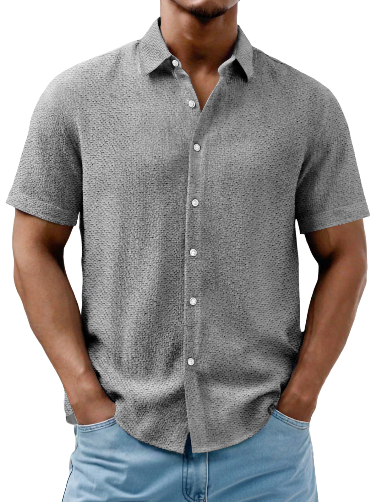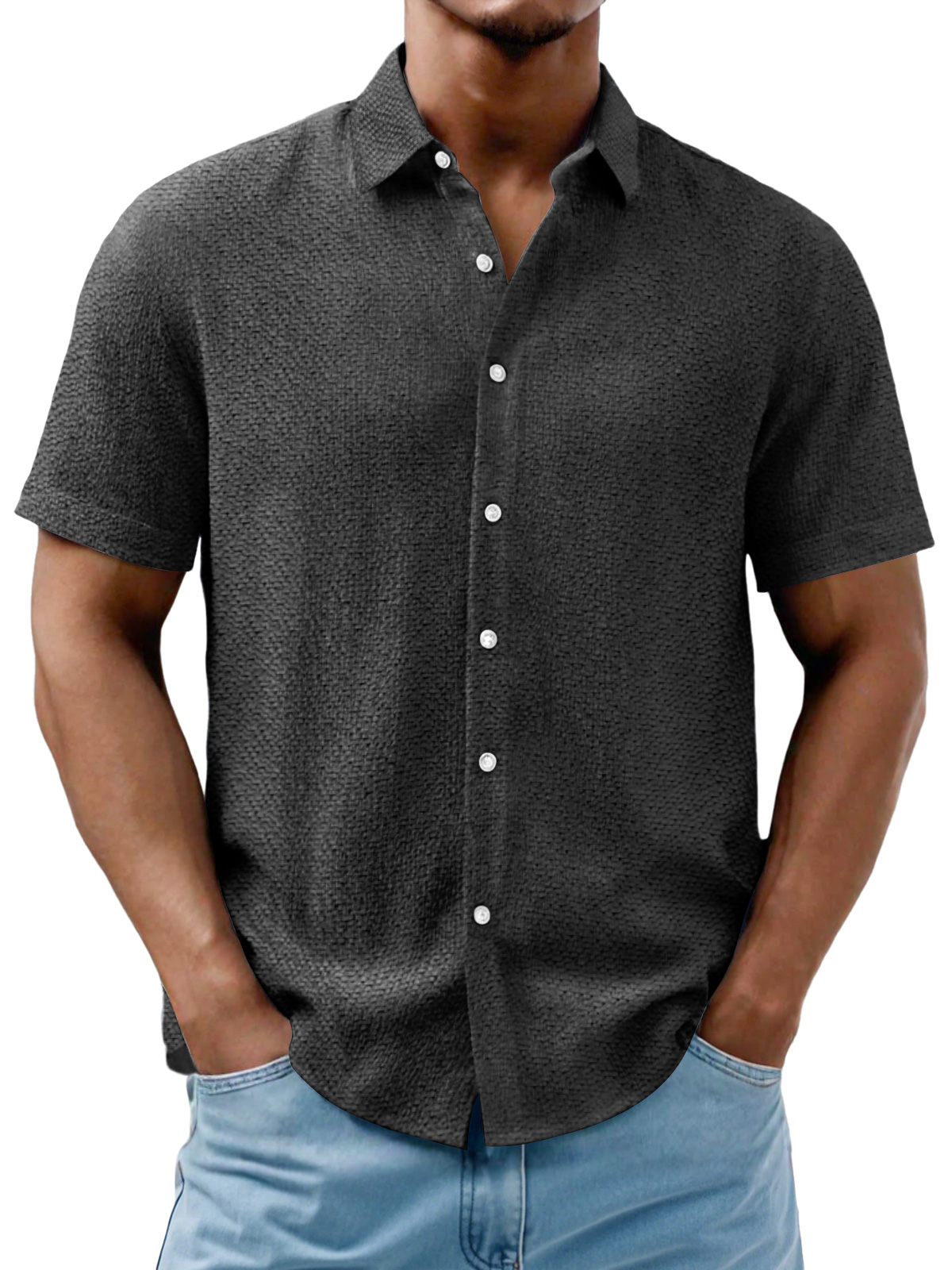 Men's Daily Casual Texture Solid Color Comfortable Short-sleeved Shirt