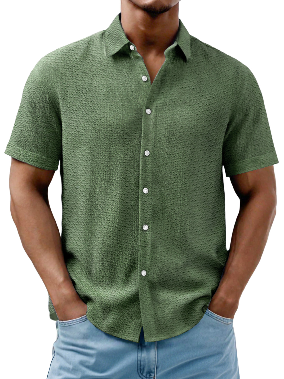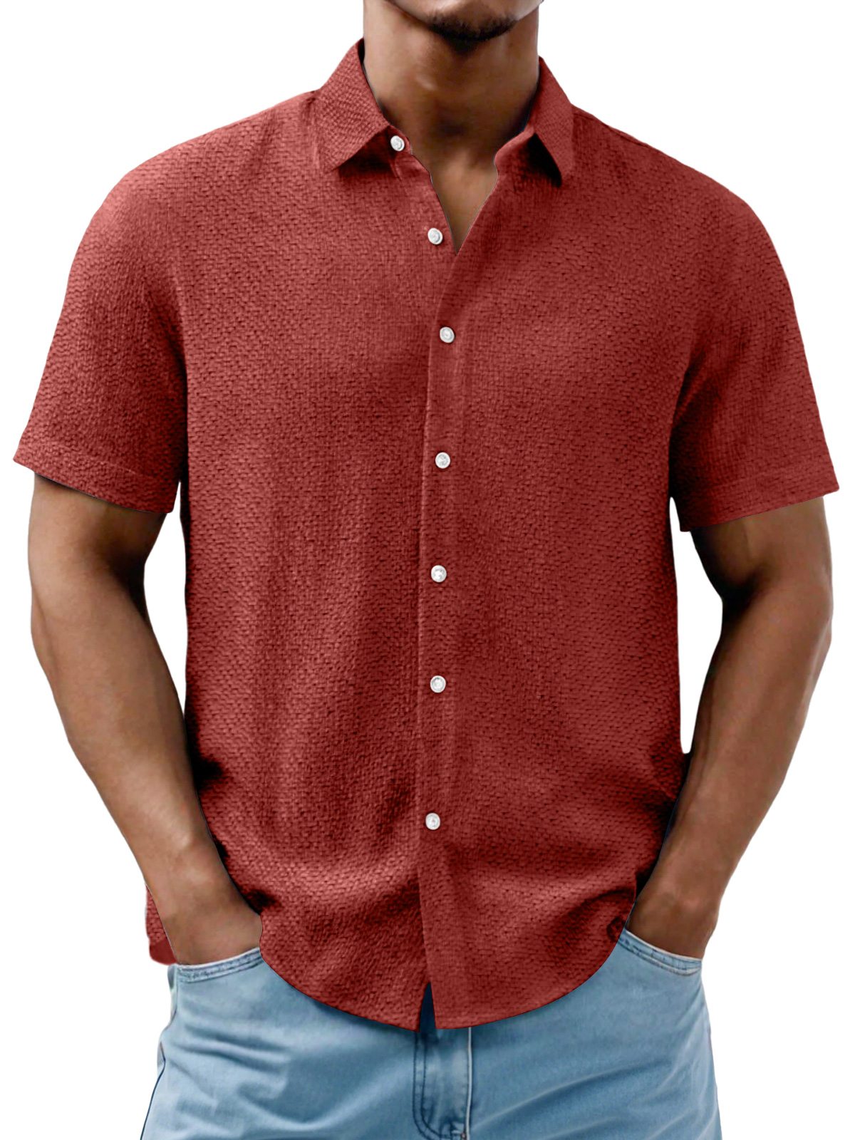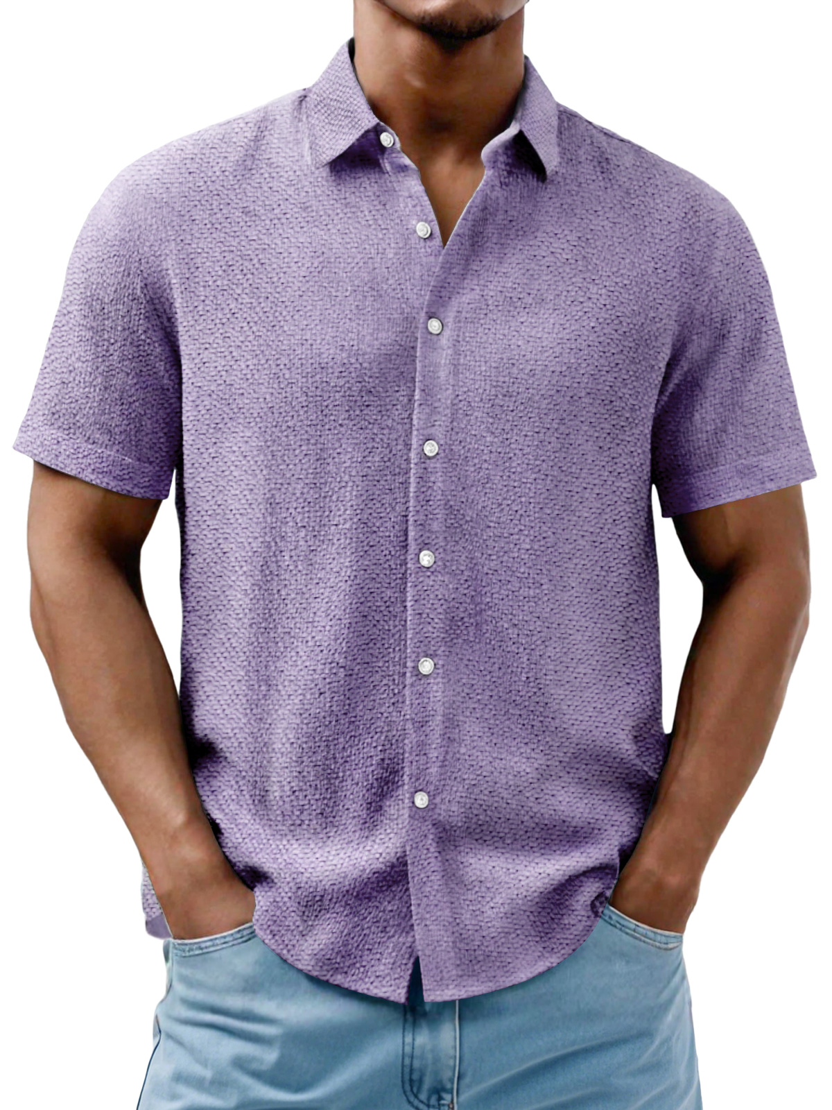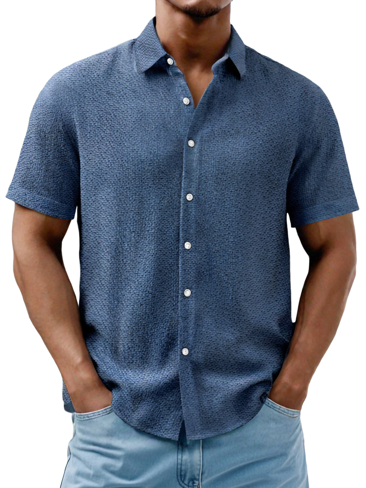 Men's Daily Casual Texture Solid Color Comfortable Short-sleeved Shirt