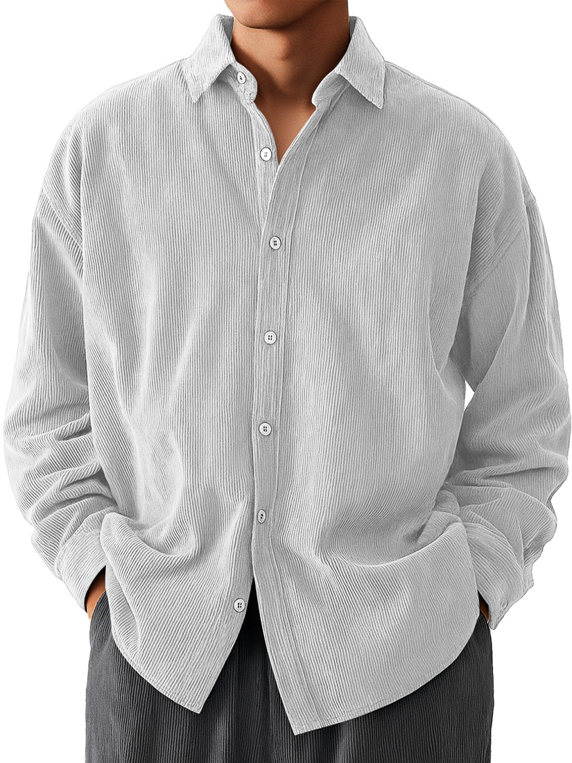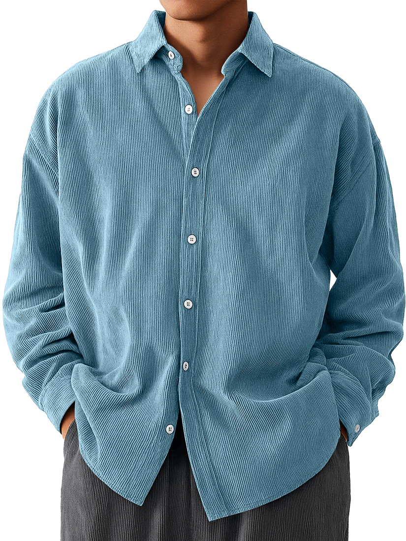 Men's Daily Corduroy Casual Solid Color Long-sleeved Shirt