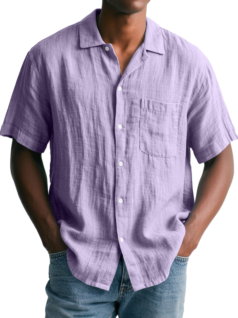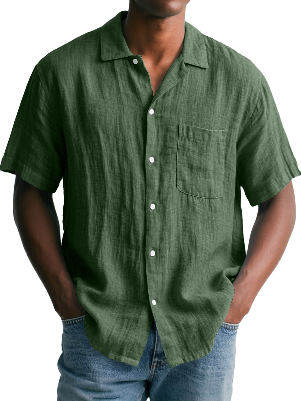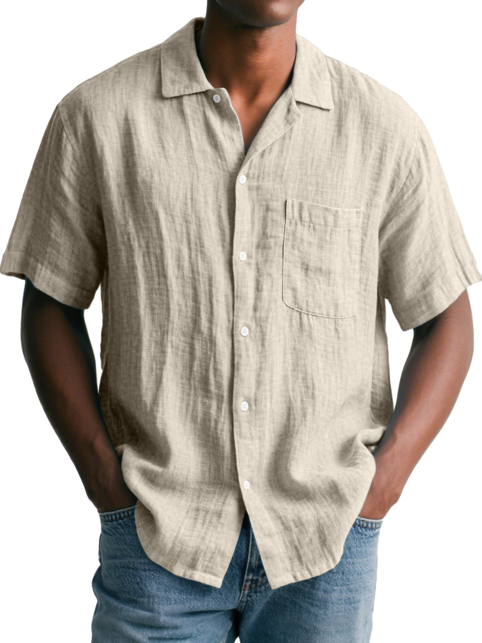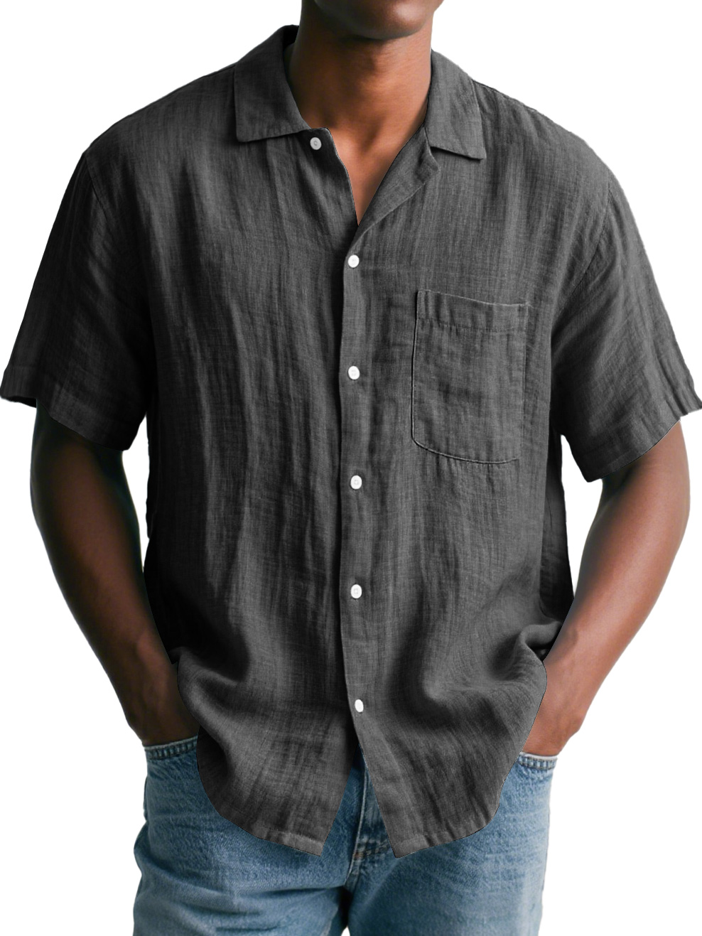 Men's Daily Cotton and Linen Casual Lapel Pocket Comfortable Short Sleeve Shirt