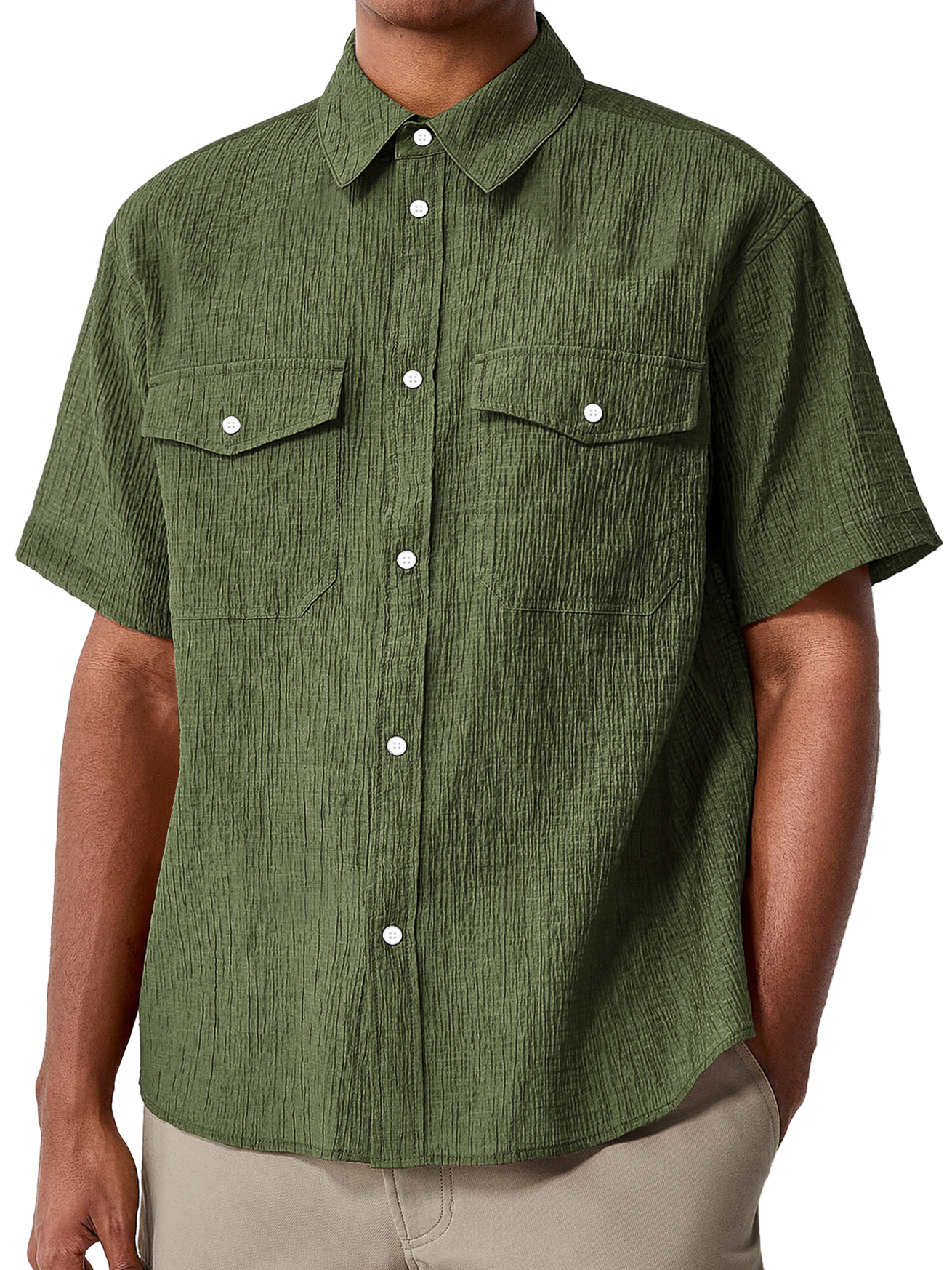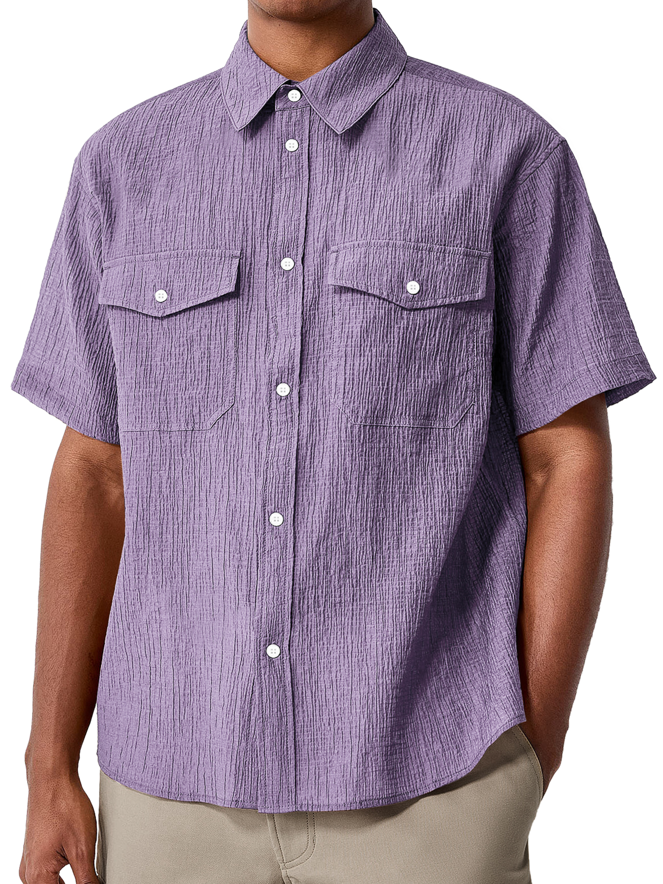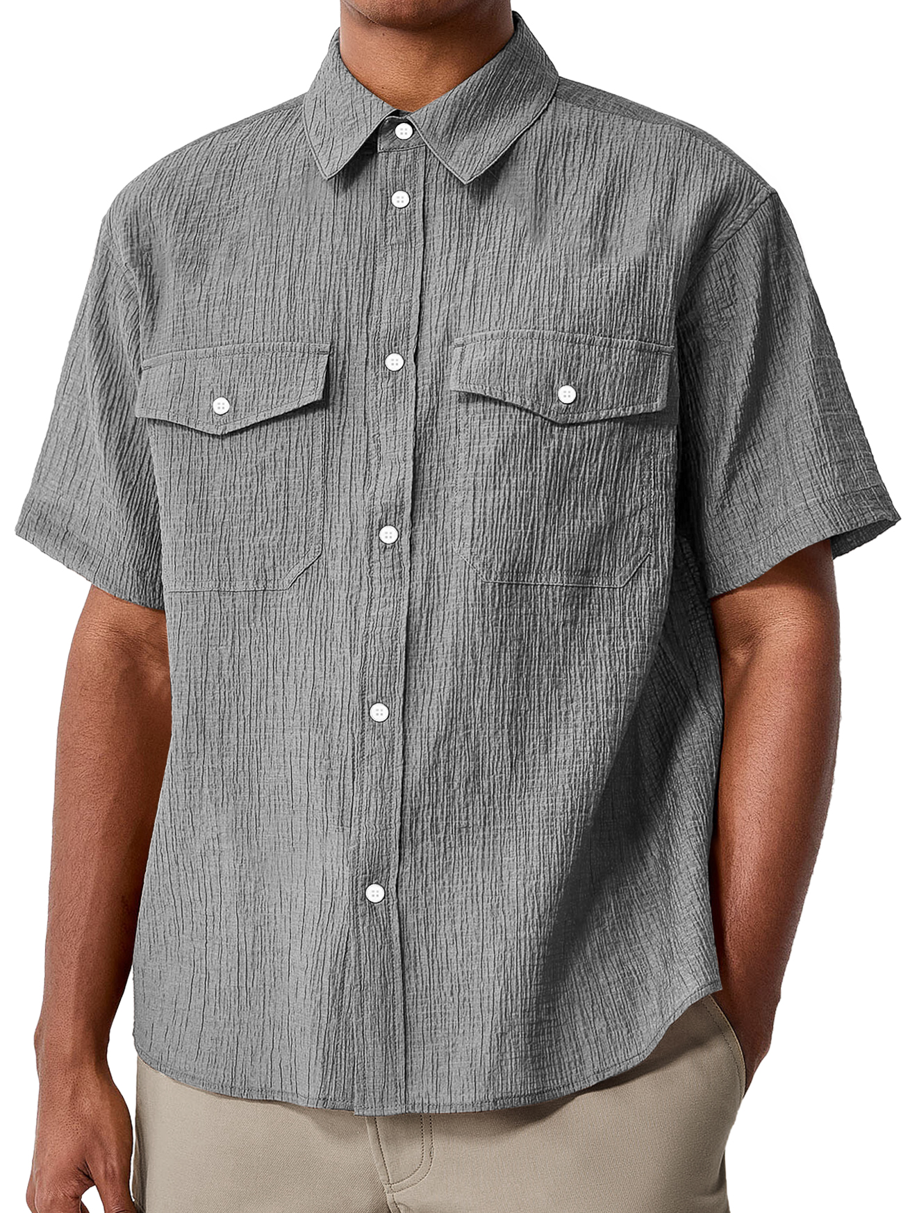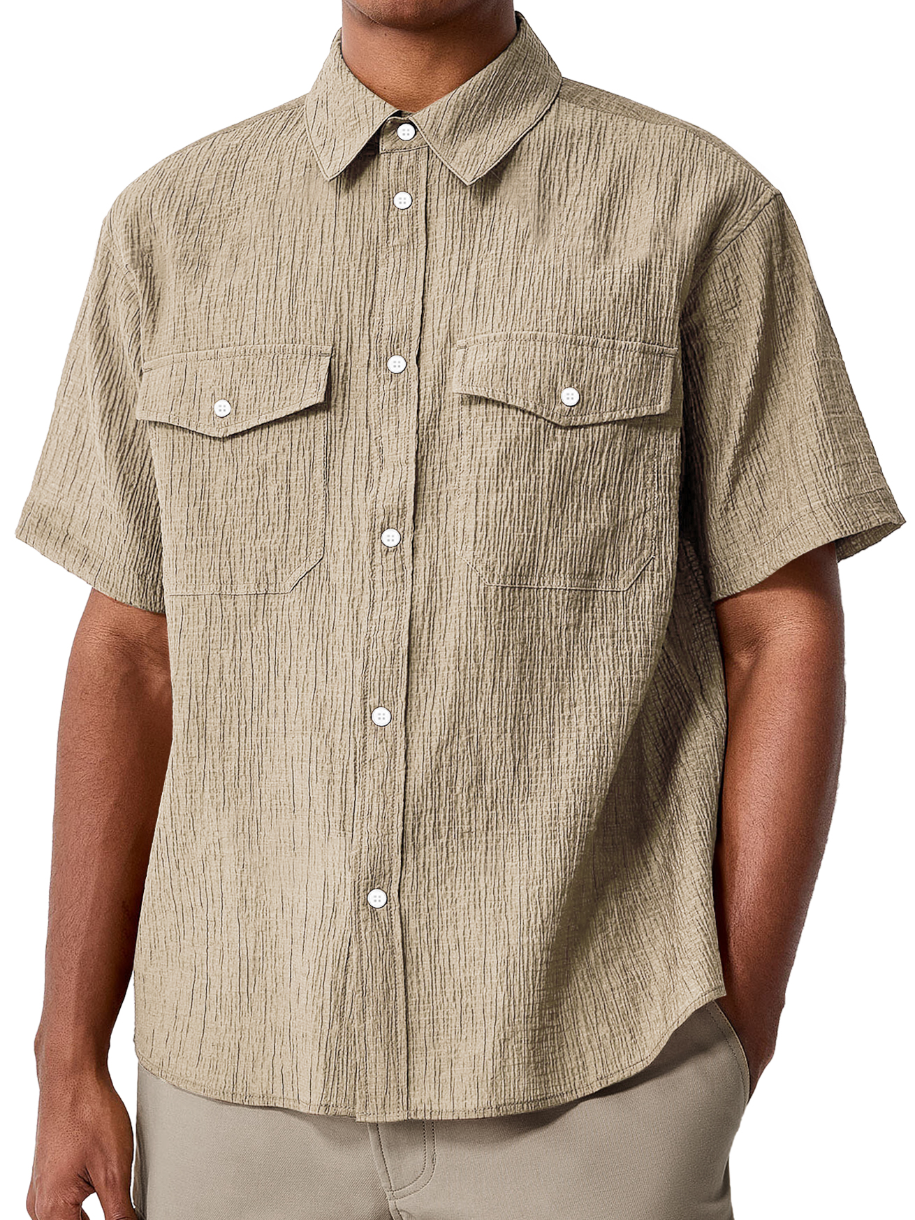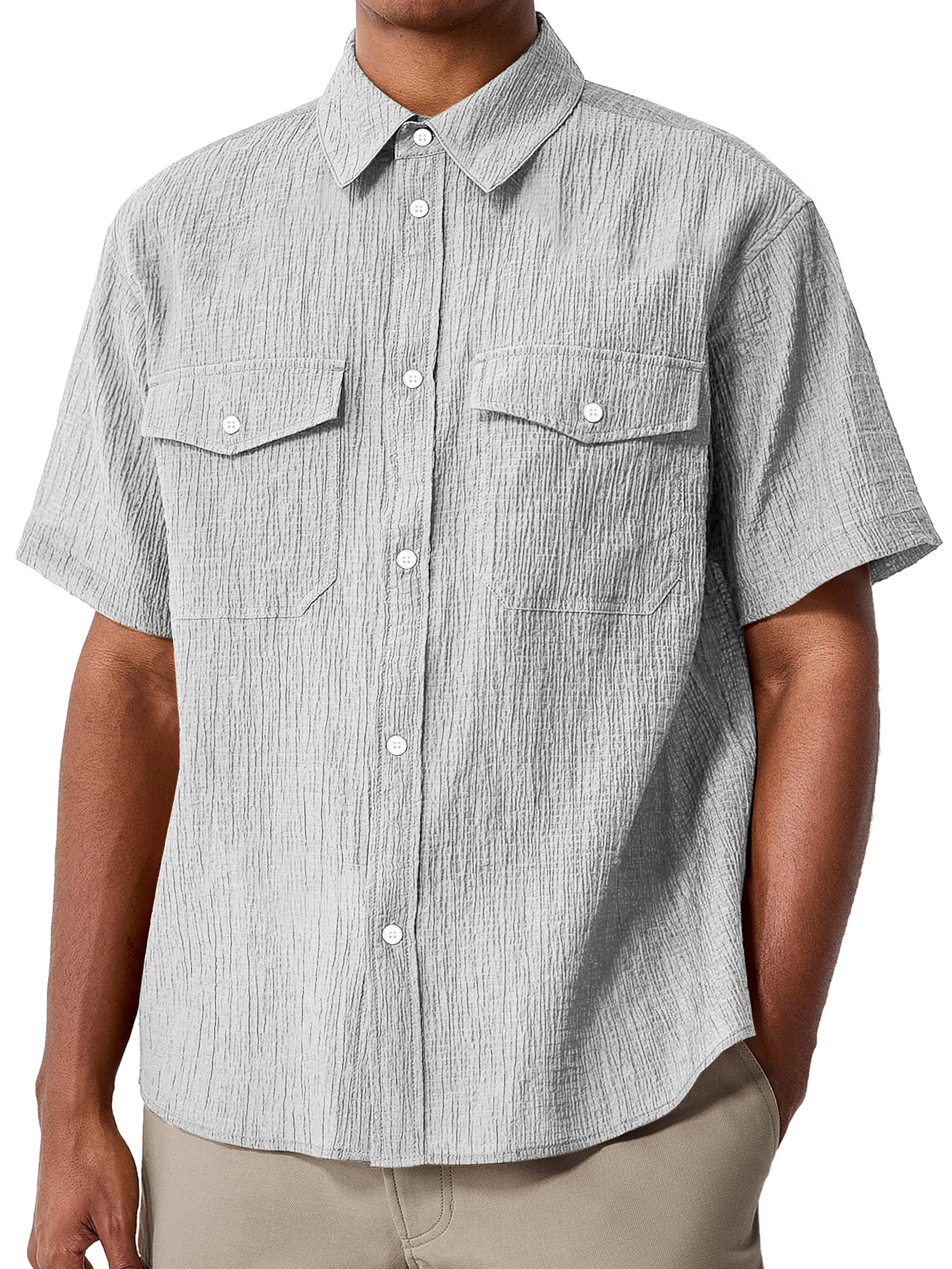 Men's Daily Double Pocket Textured Casual Comfort Short Sleeve Shirt