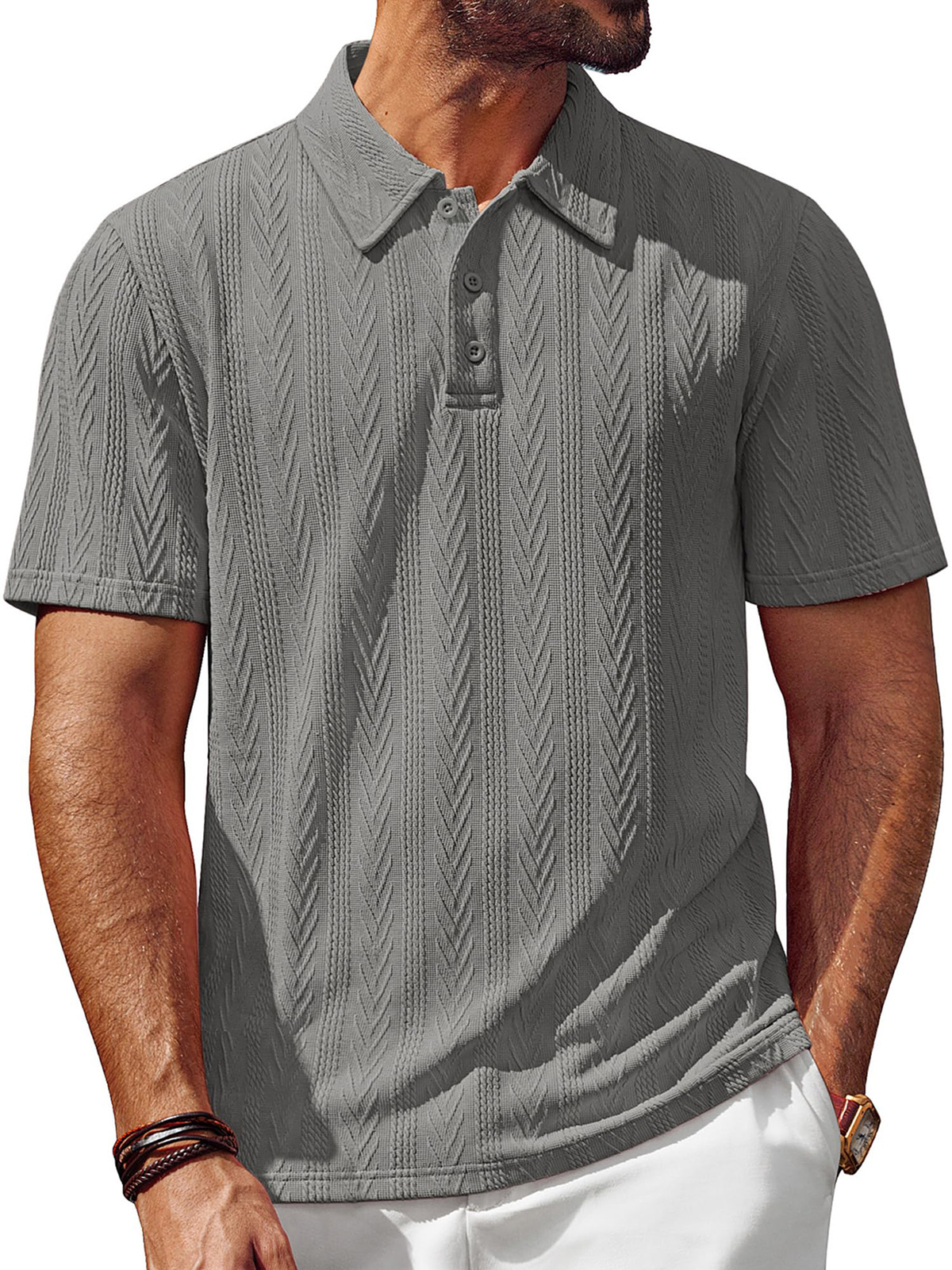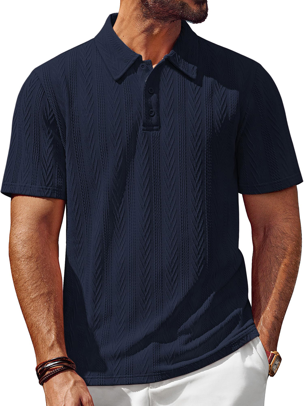 Men's Daily Lapel Button Jacquard Solid Color Short Sleeve POLO Delete