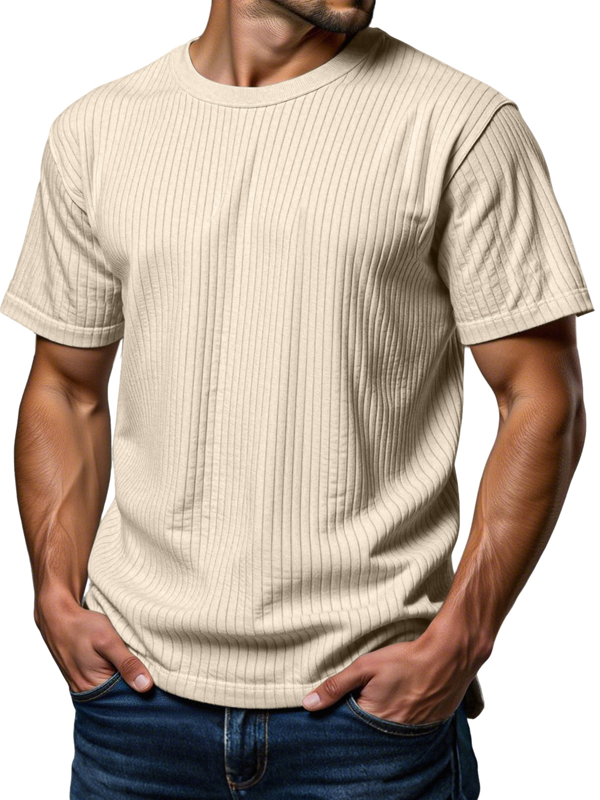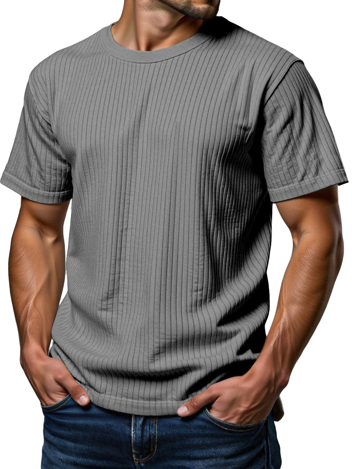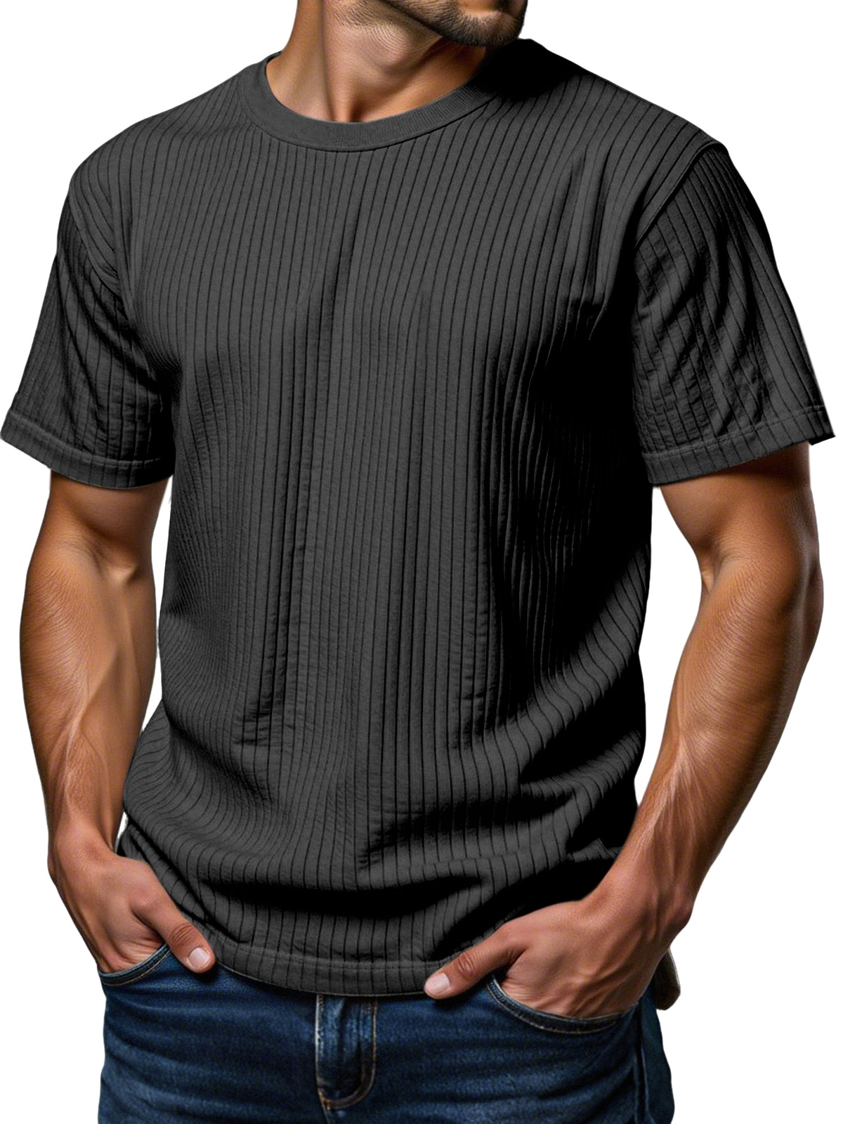 Men's Daily Loose Vertical Texture Round Neck Short-sleeved T-shirt