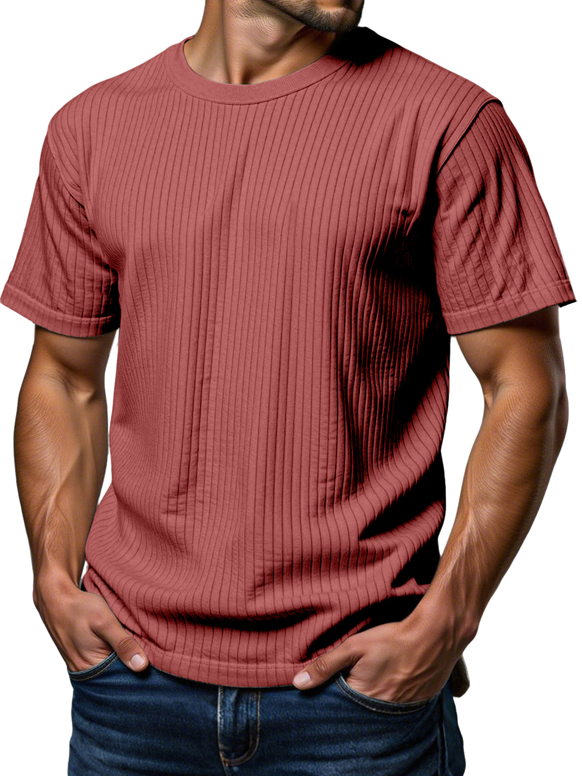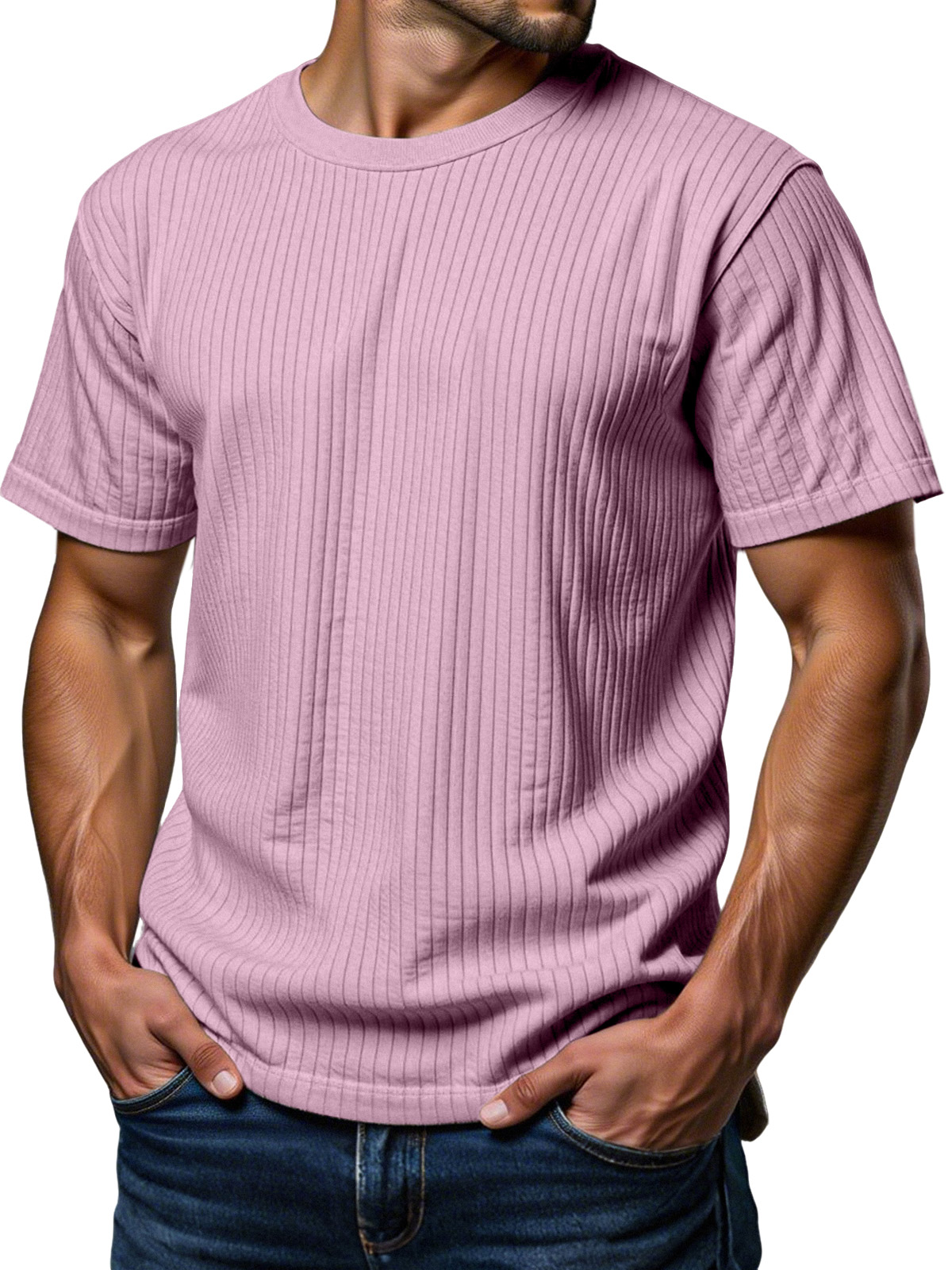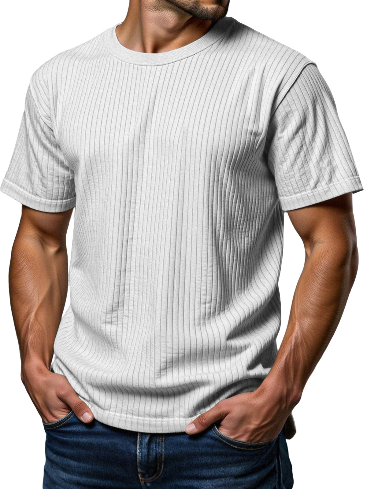 Men's Daily Loose Vertical Texture Round Neck Short-sleeved T-shirt