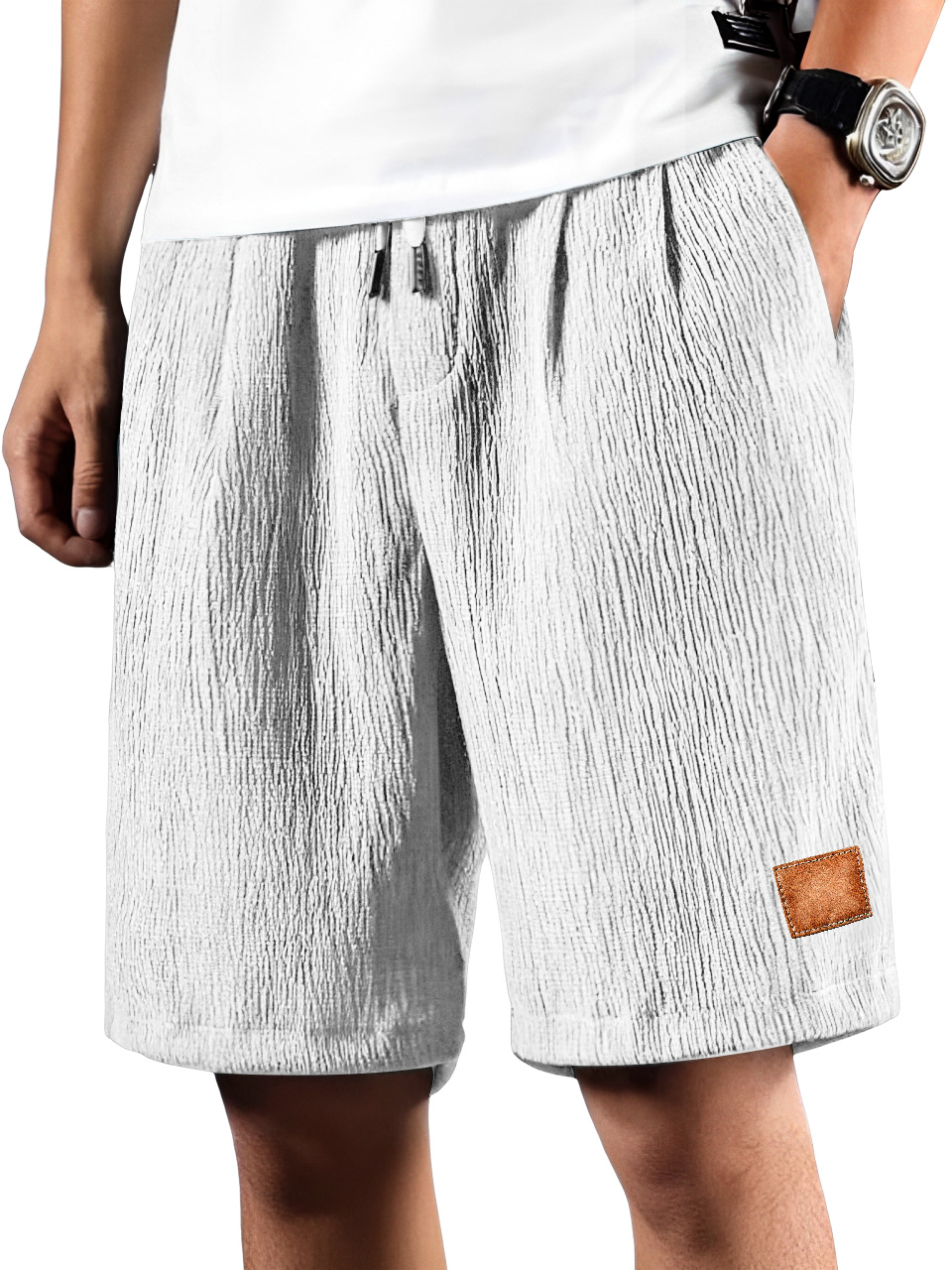 Men's Daily Pleated Texture Embroidered Logo Drawstring Casual Shorts