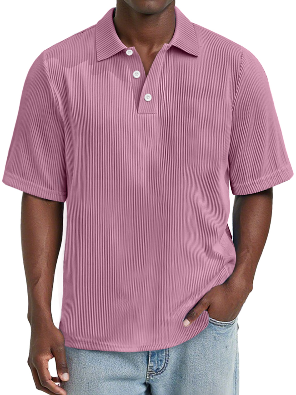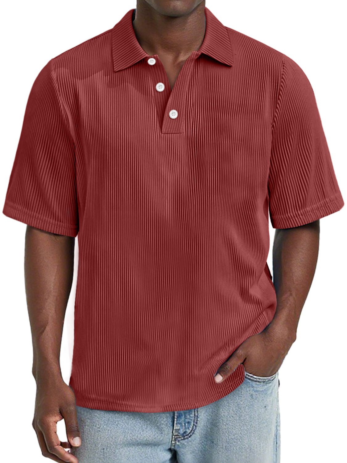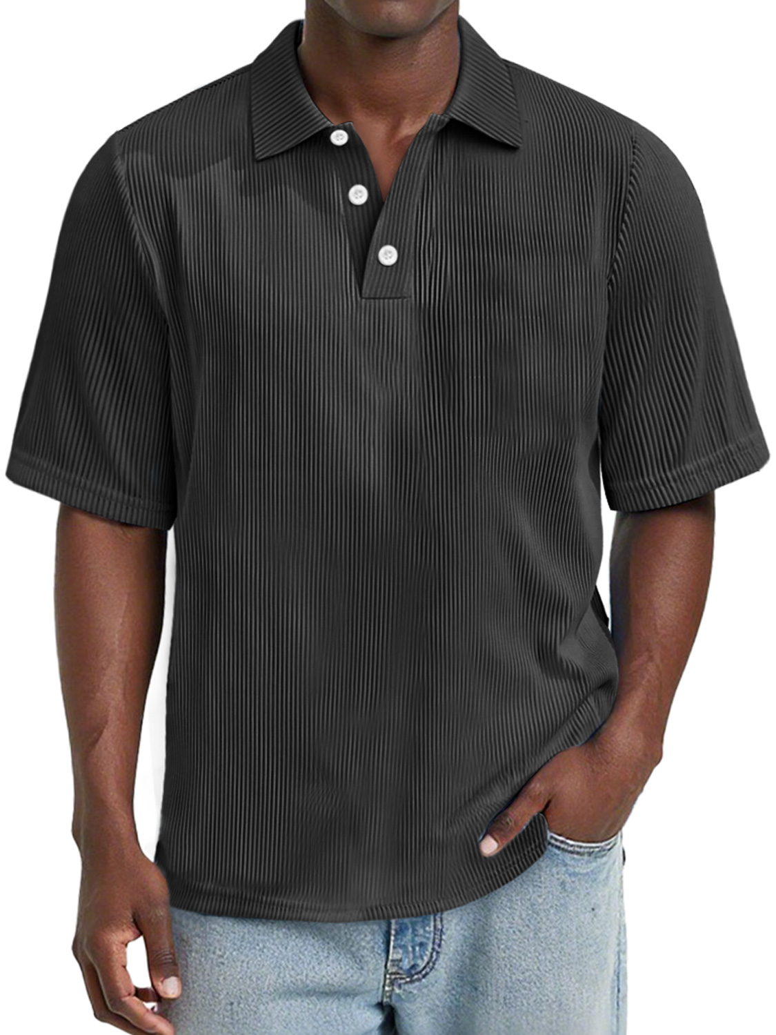 Men's Daily Rip Texture Casual Lapel Button Short-sleeved Polo Shirt