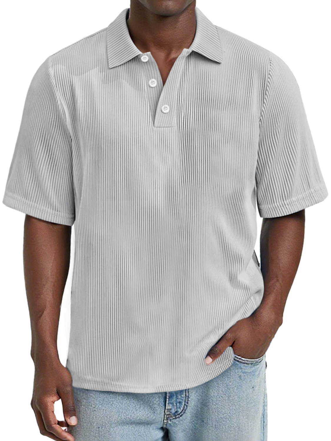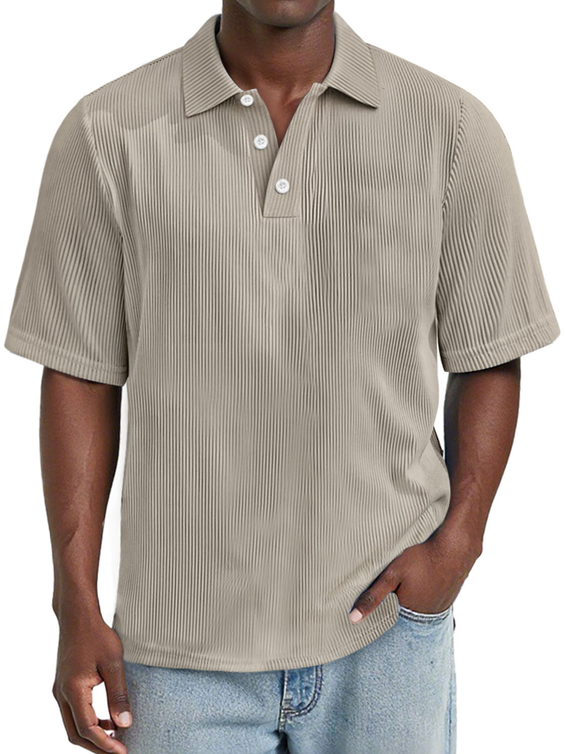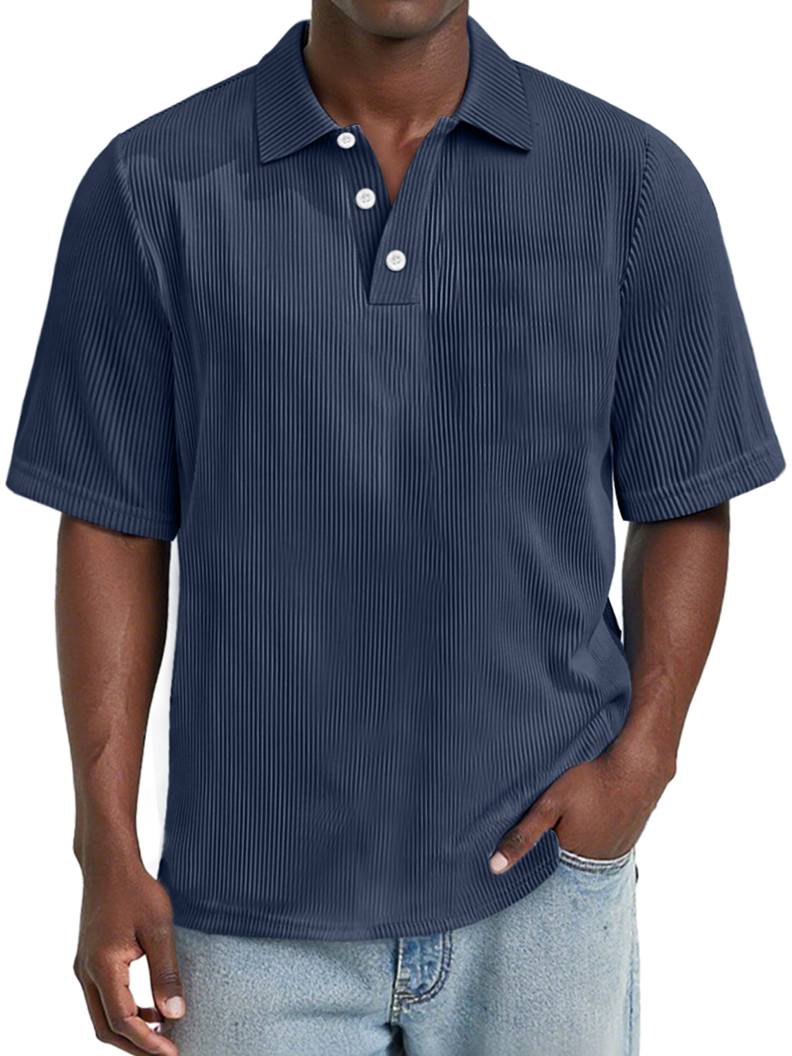 Men's Daily Rip Texture Casual Lapel Button Short-sleeved Polo Shirt