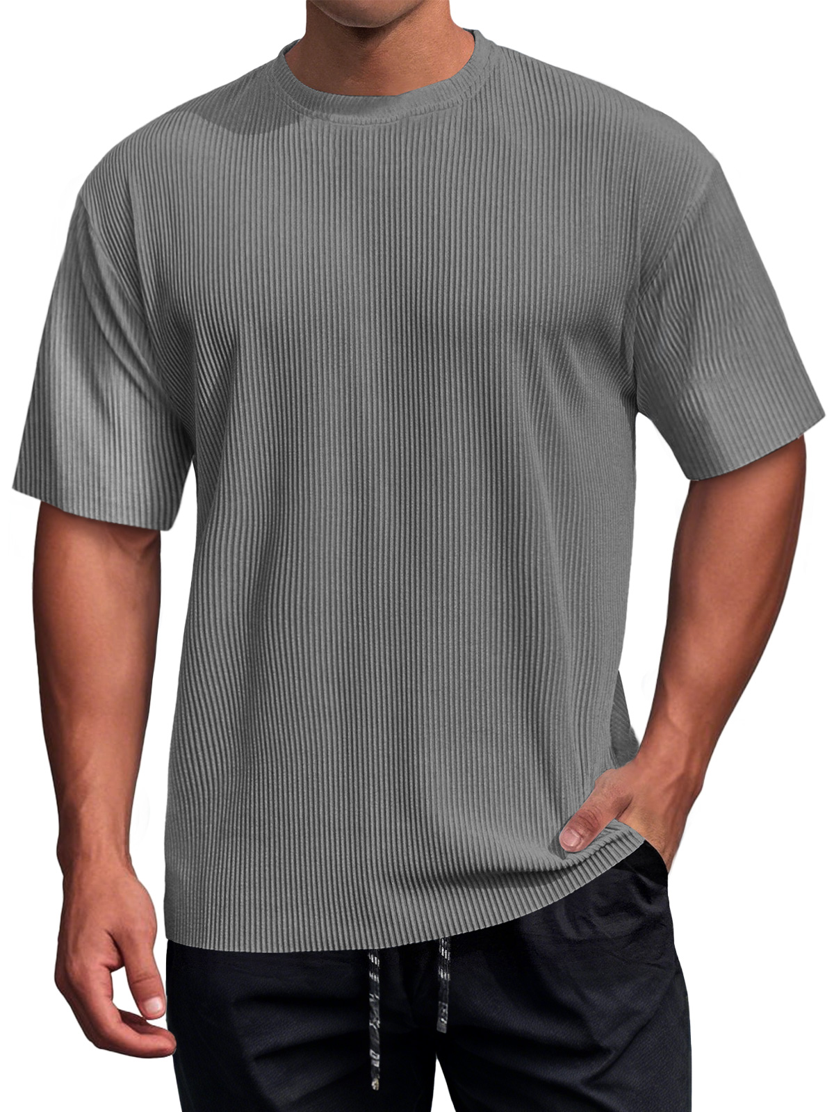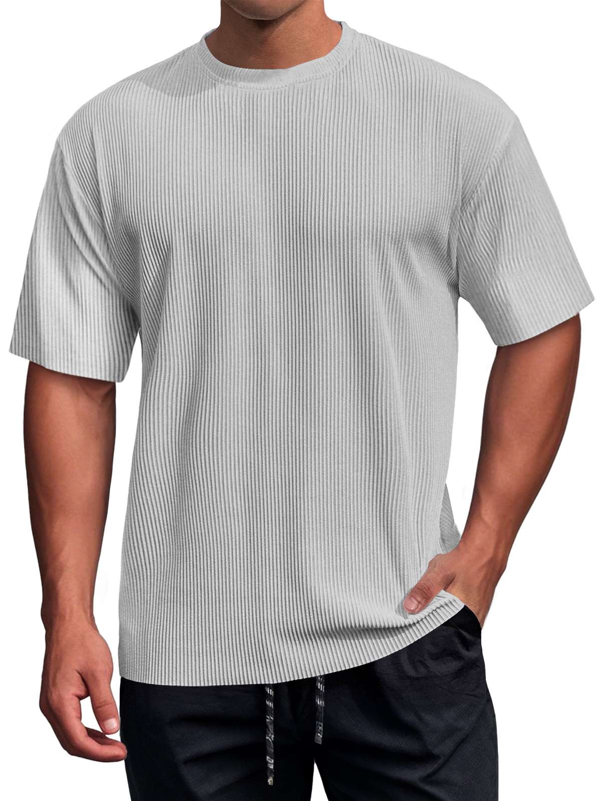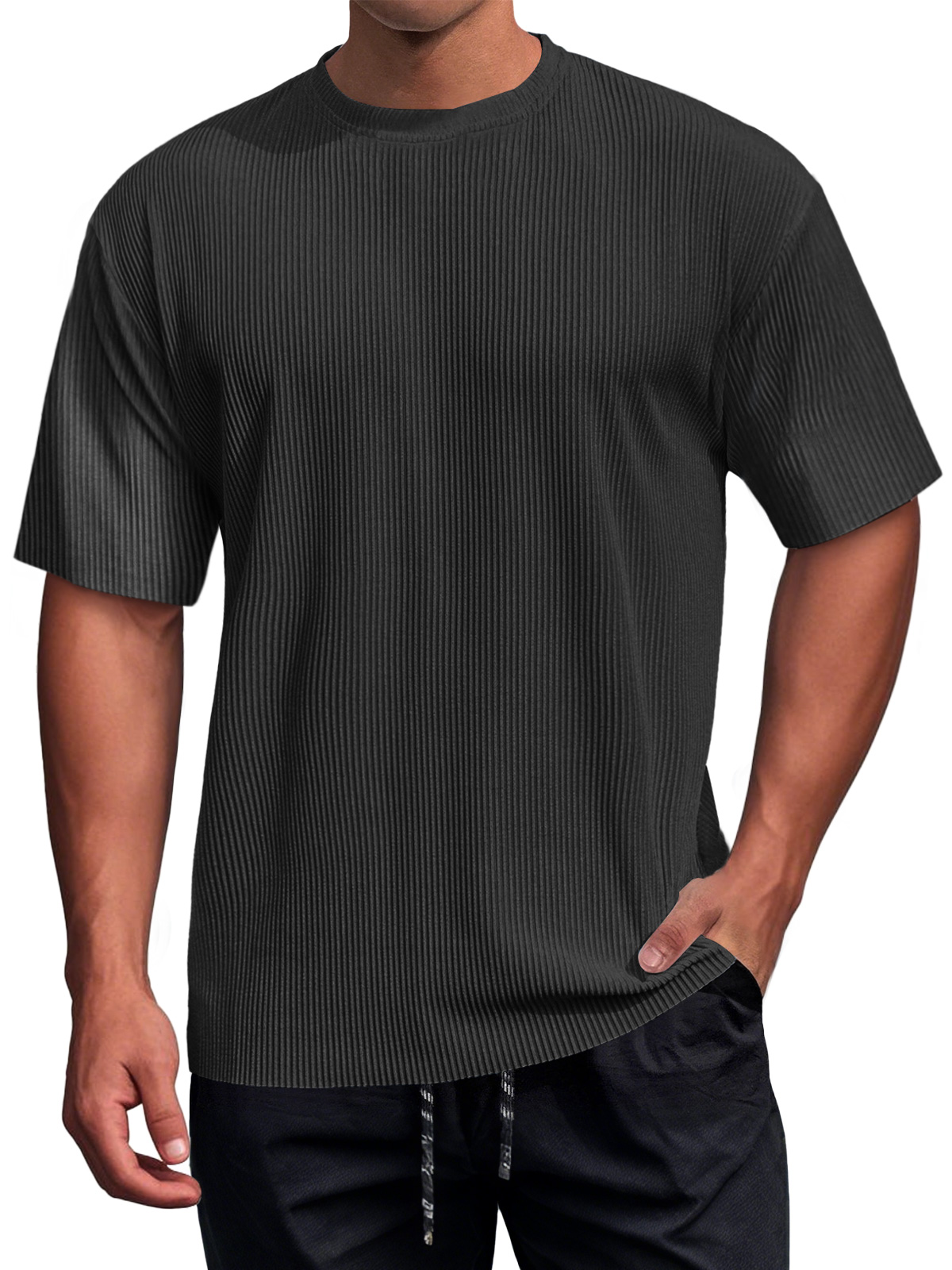 Men's Daily Round Neck Ribbed Texture Casual Short-sleeved T-shirt