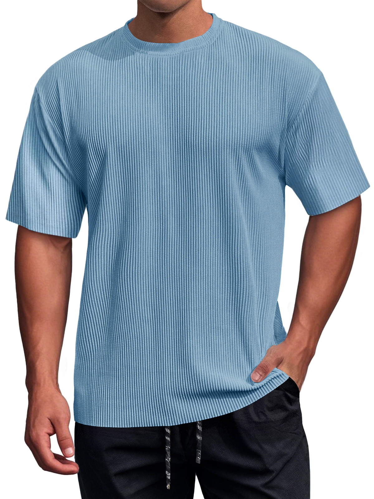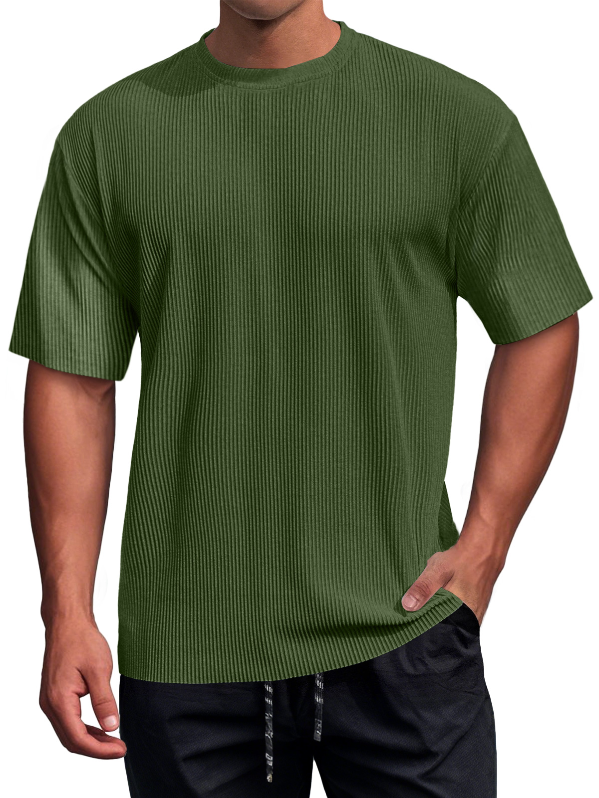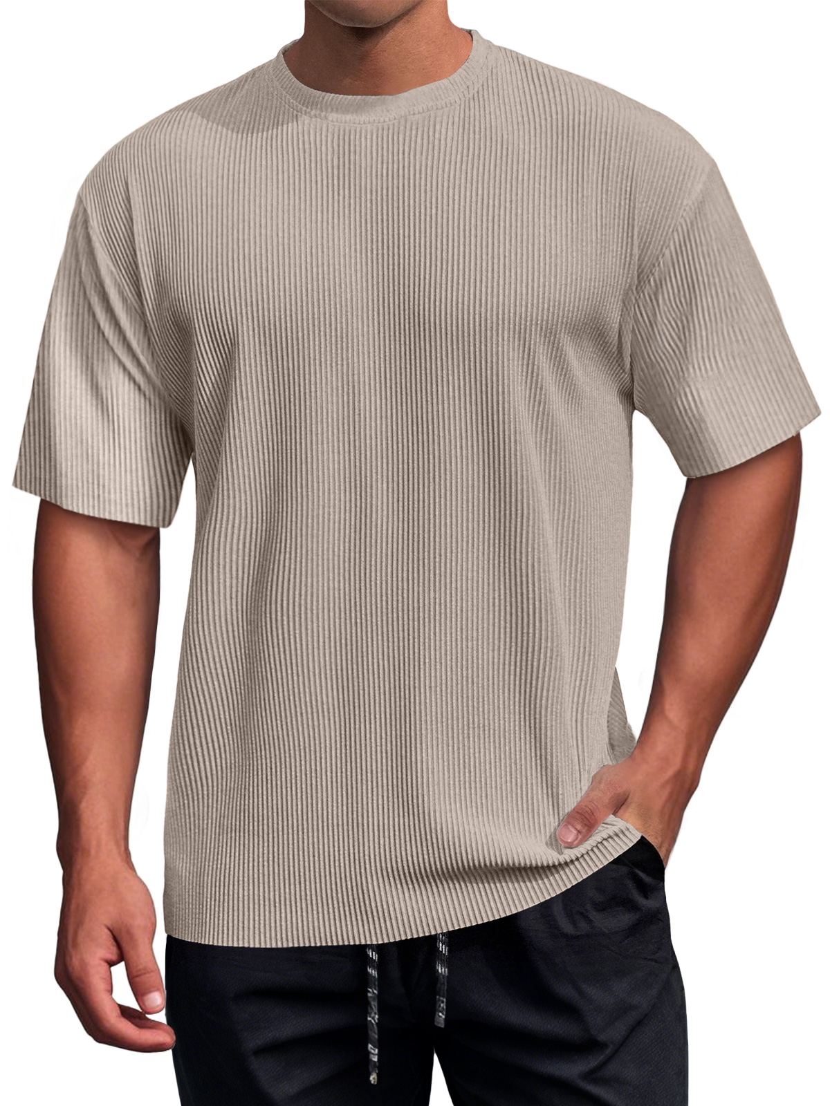 Men's Daily Round Neck Ribbed Texture Casual Short-sleeved T-shirt