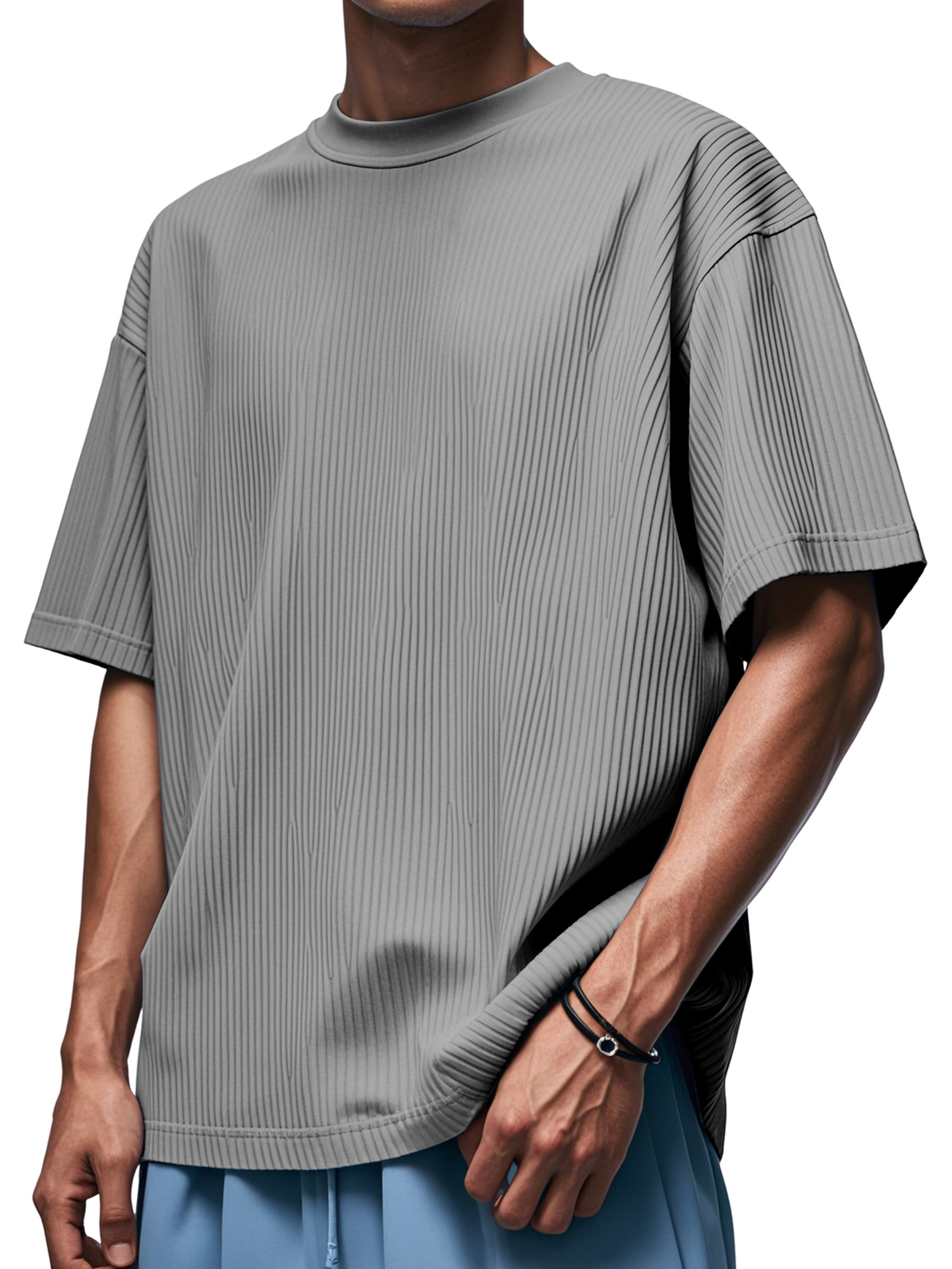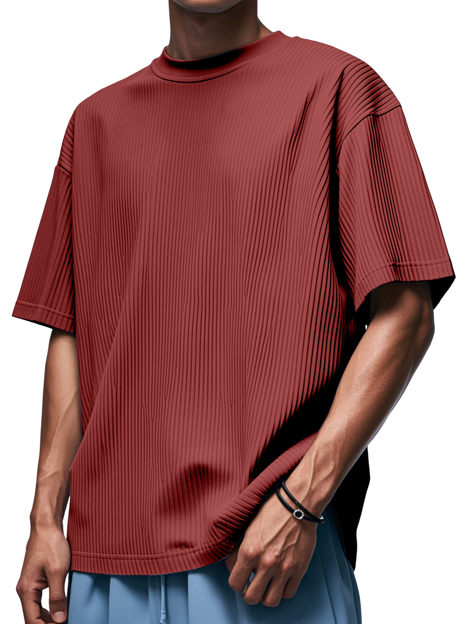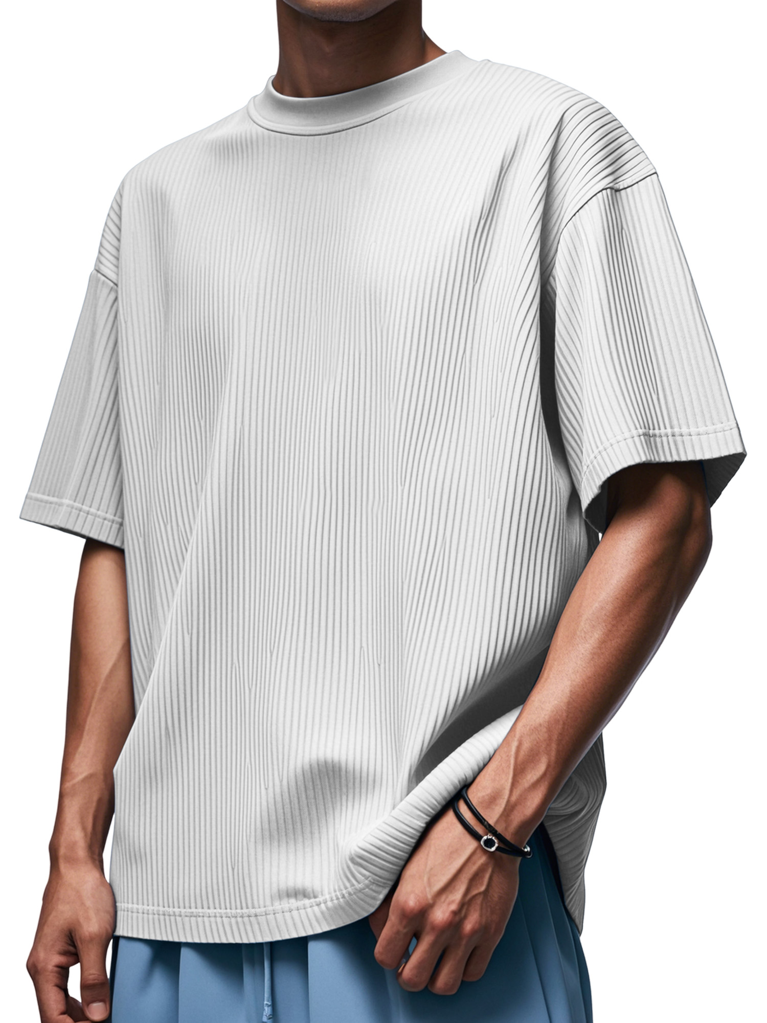 Men's Daily Solid Color Vertical Pit Round Neck Short-sleeved T-shirt