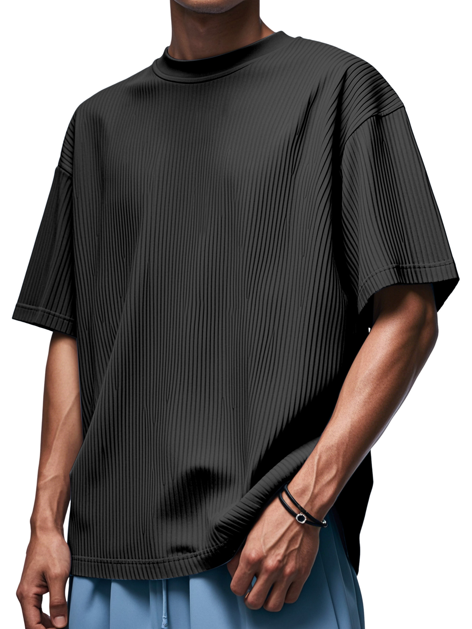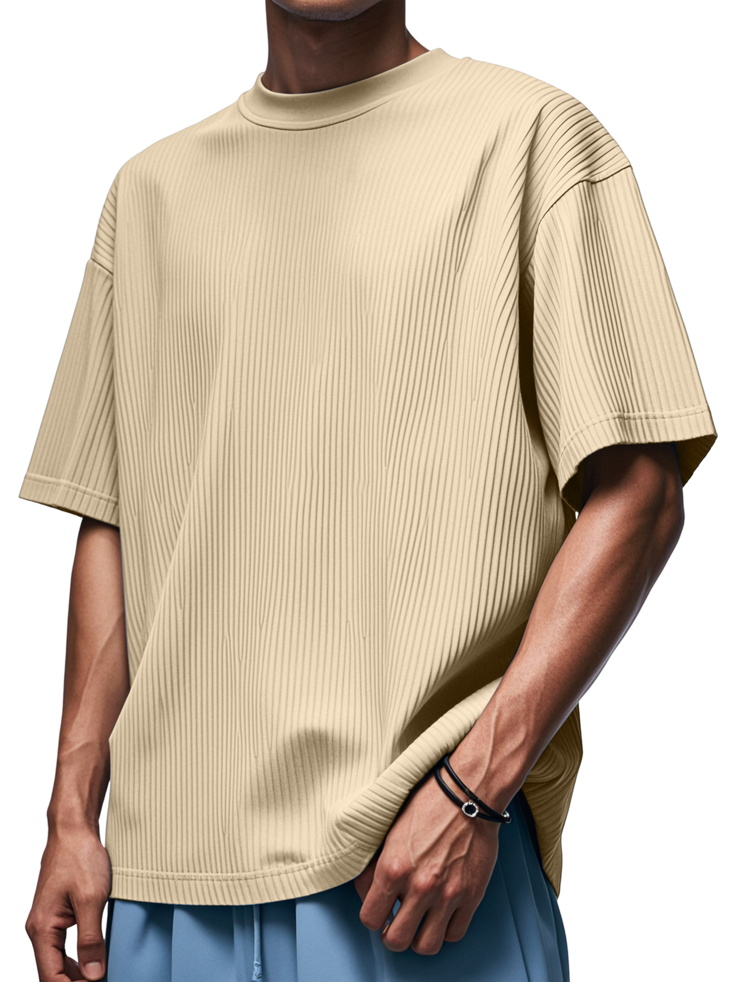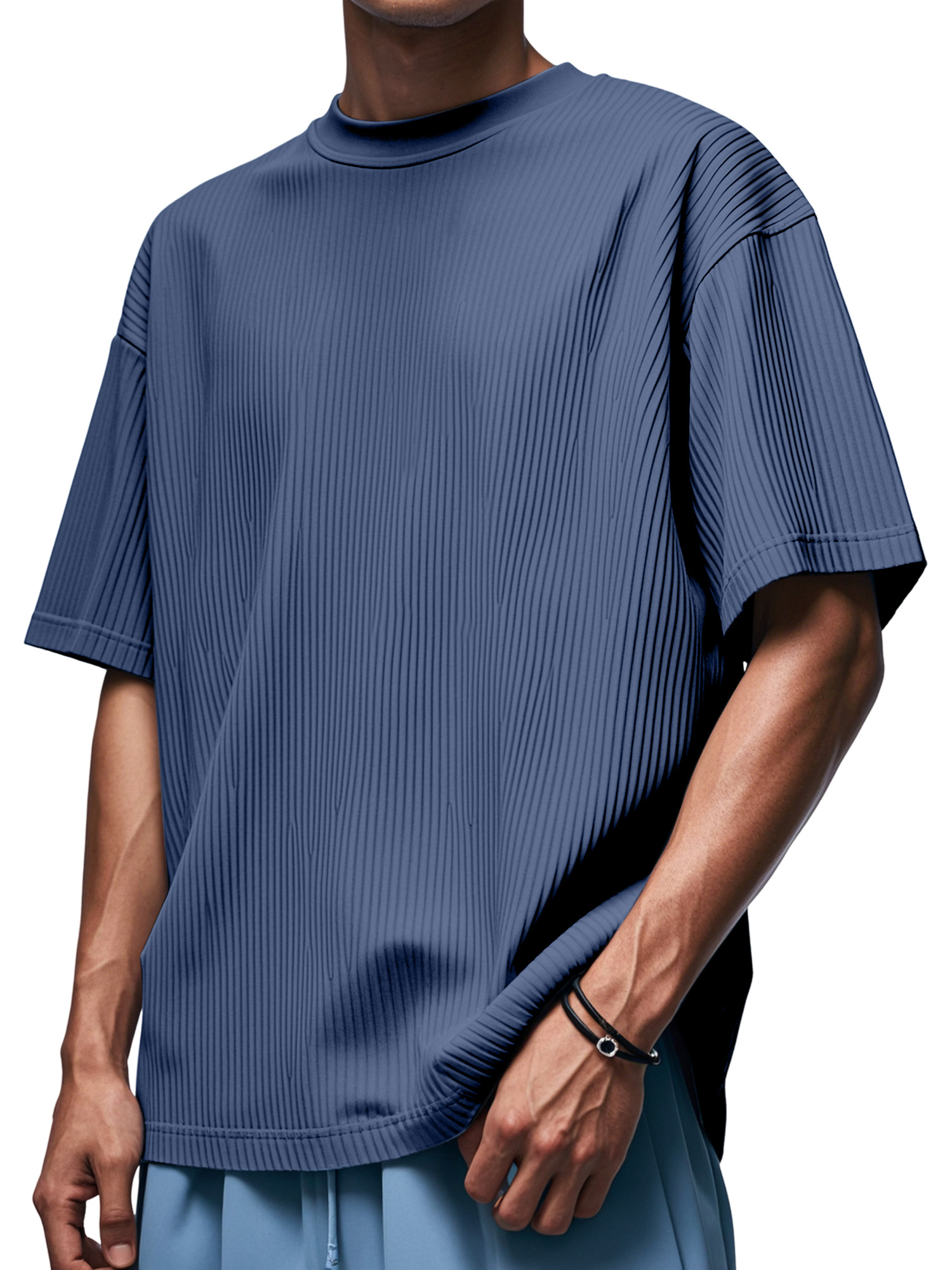 Men's Daily Solid Color Vertical Pit Round Neck Short-sleeved T-shirt