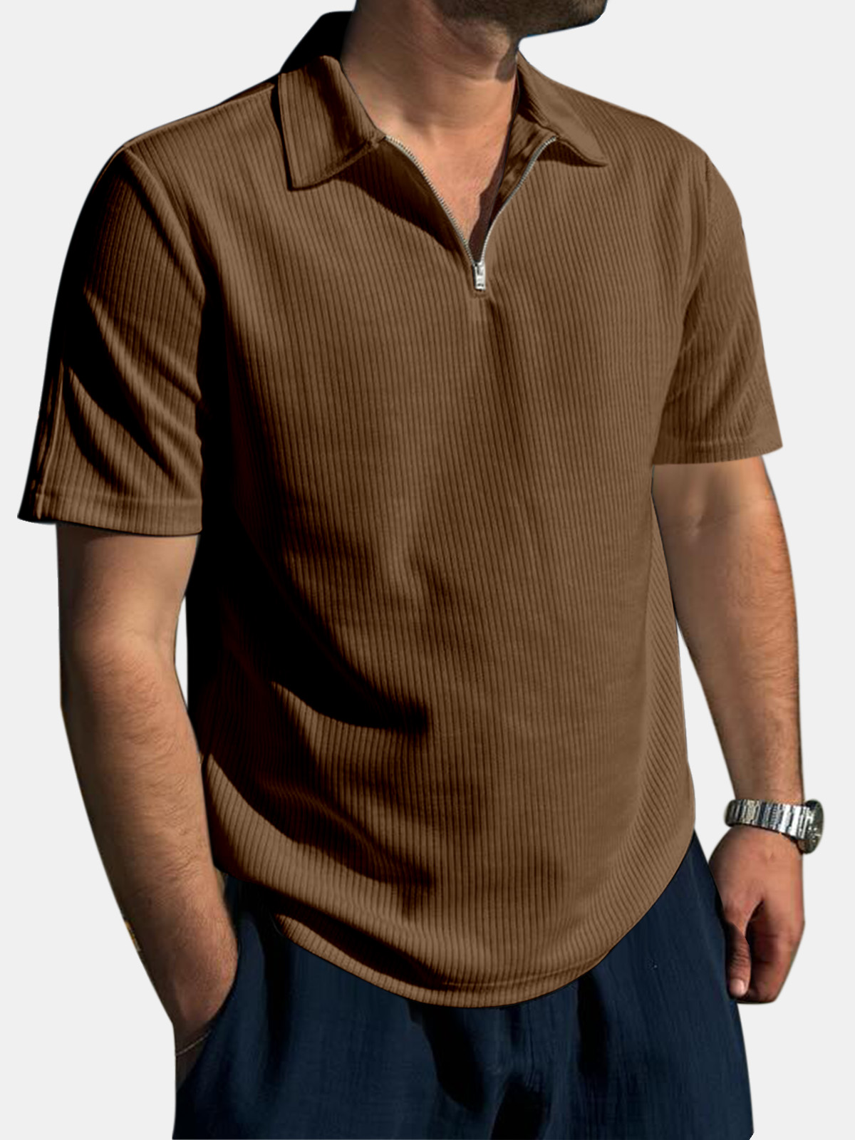Men's Daily Solid Color Vertical Zipper Short-sleeved Polo Shirt
