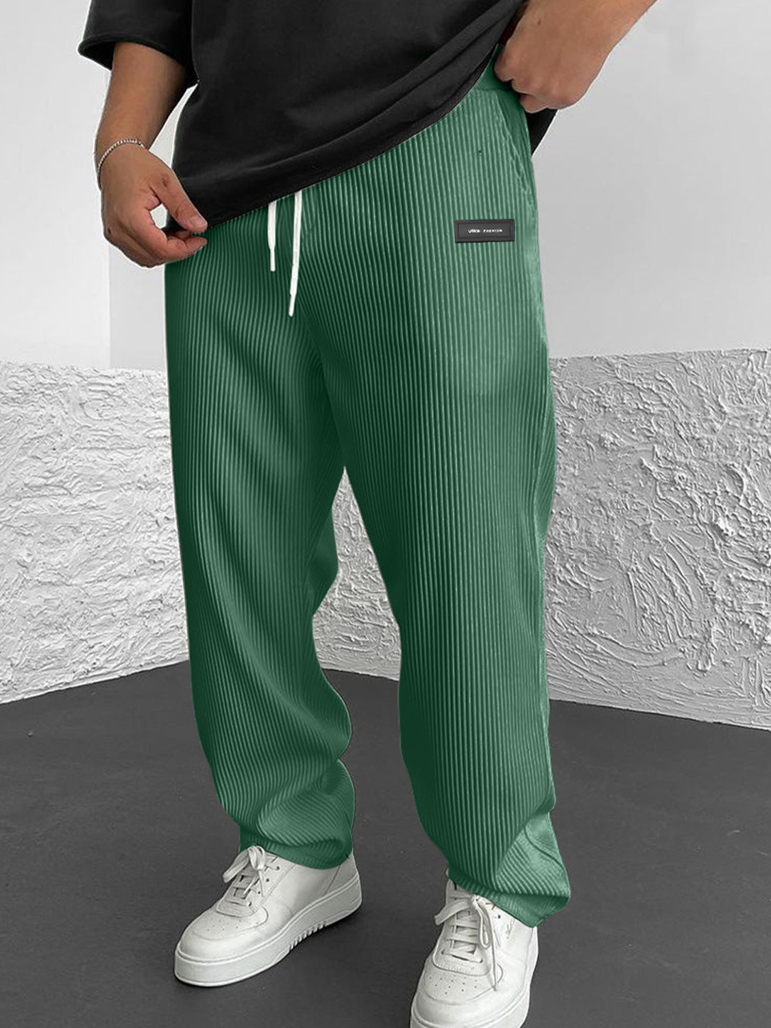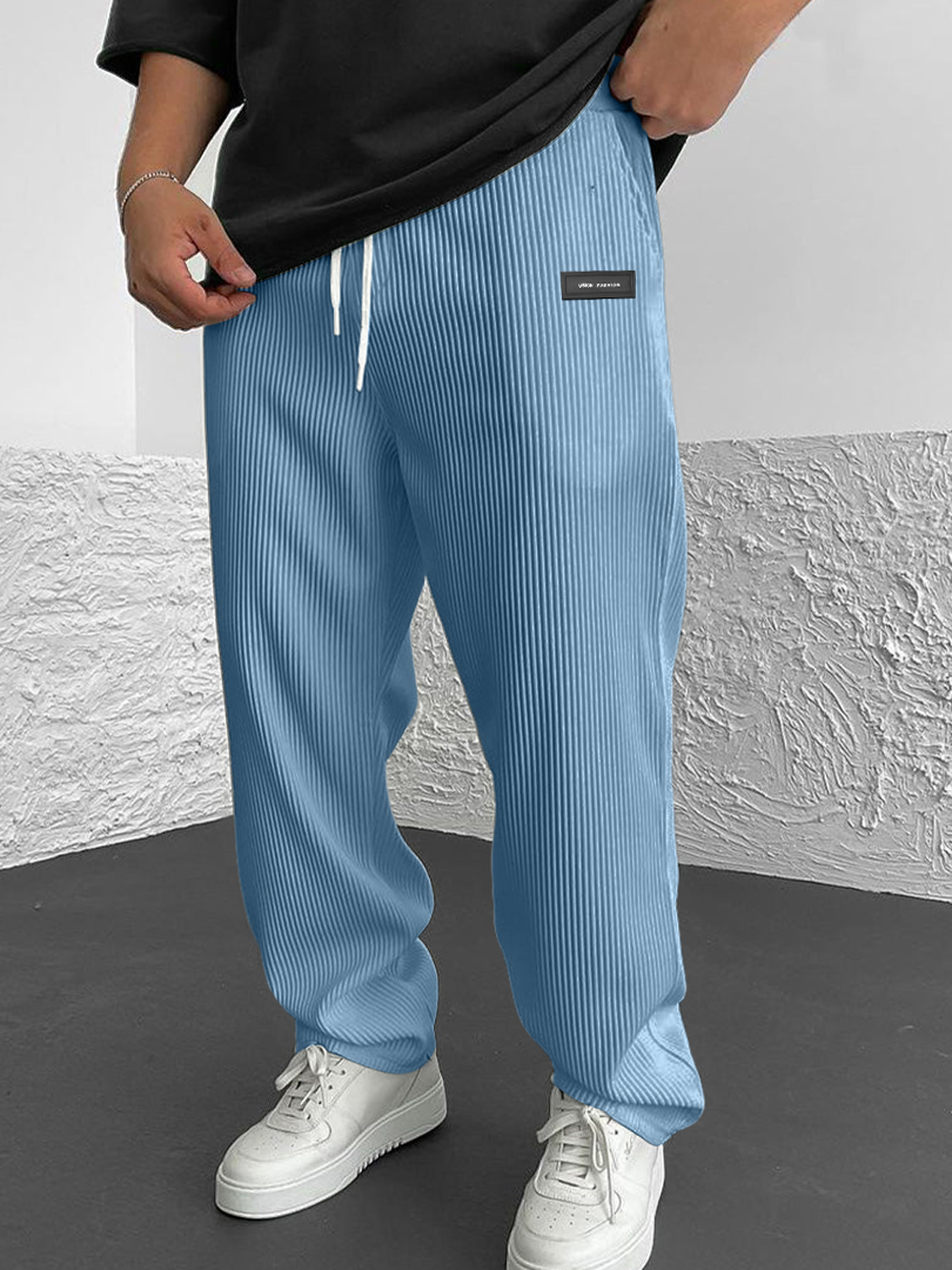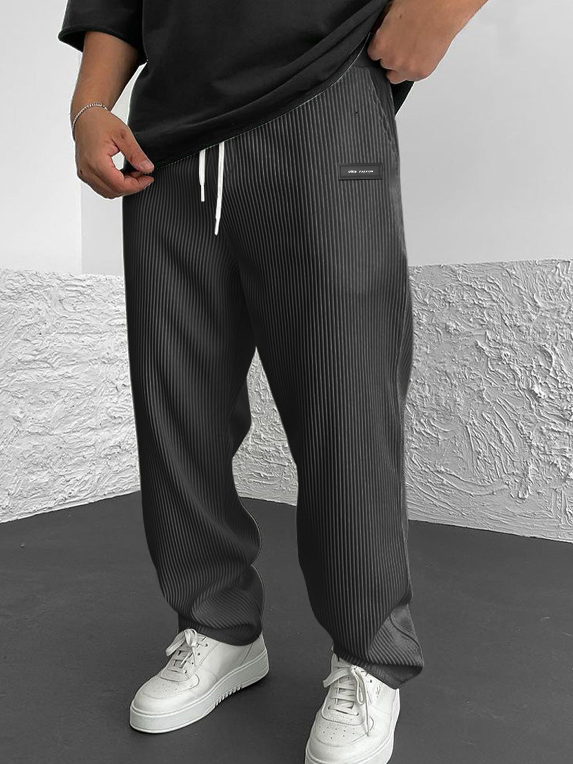 Men's Daily Striped Texture Embroidered Logo Casual Comfort Trousers