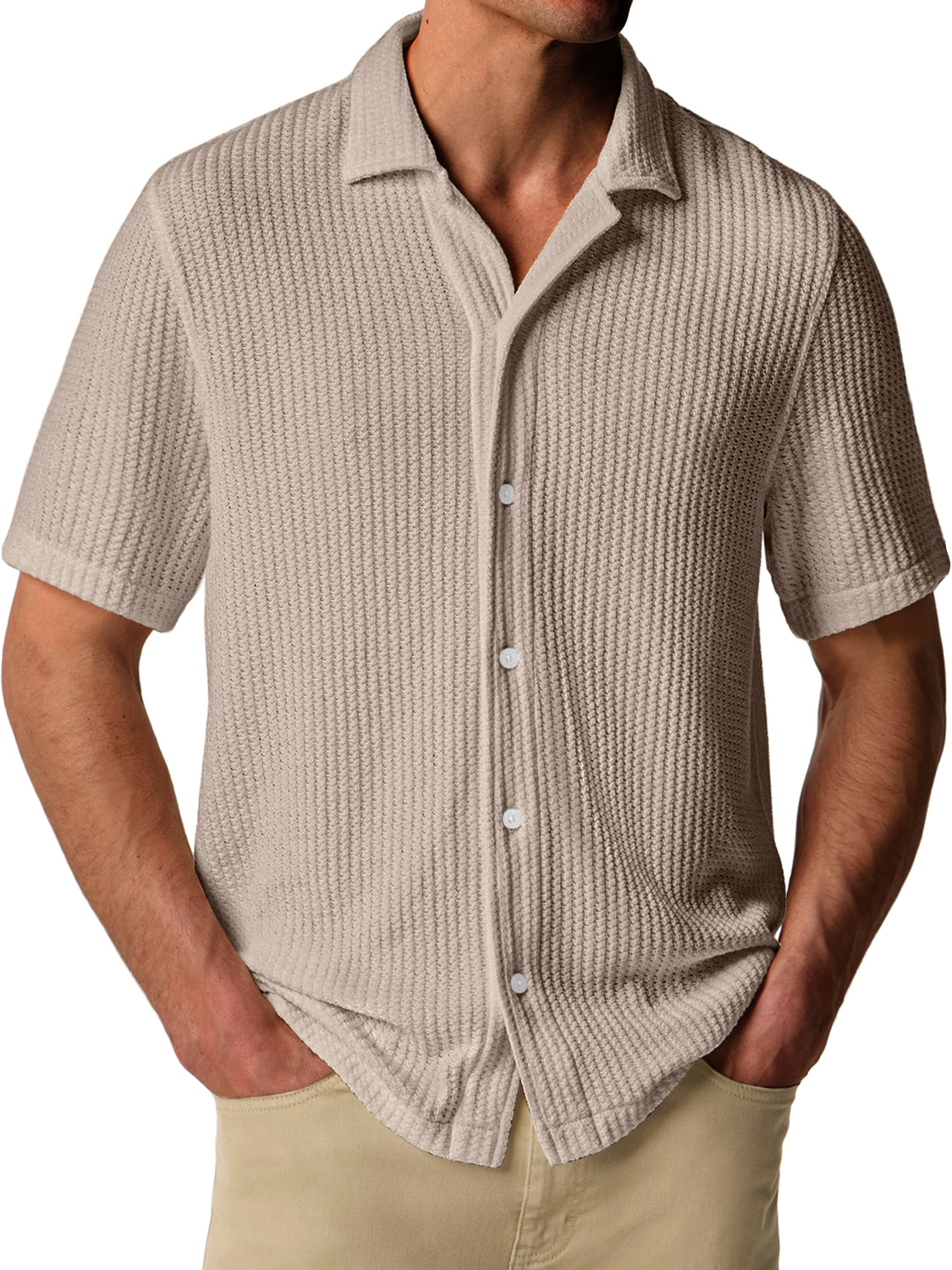 Men's Daily Texture Lapel Casual Comfort Short Sleeve Shirt