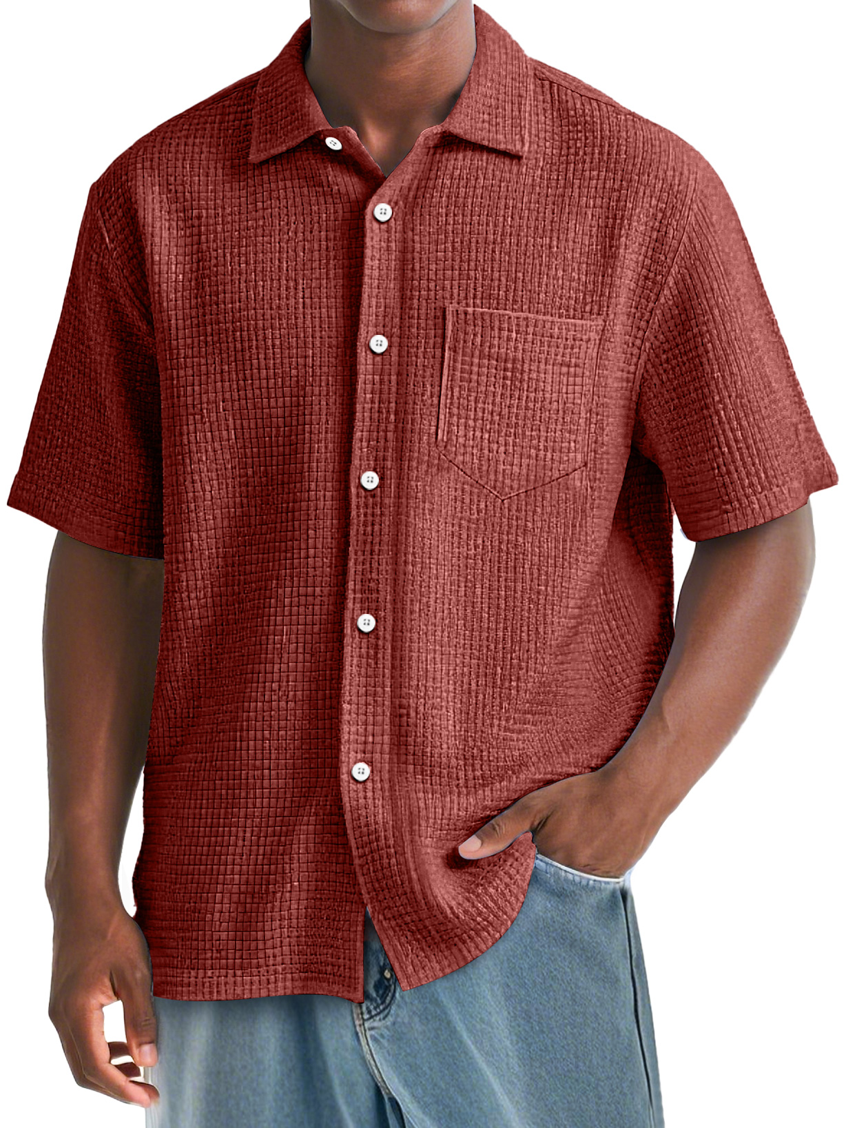 Men's Daily Waffle Texture Casual Pocket Comfort Short Sleeve Shirt