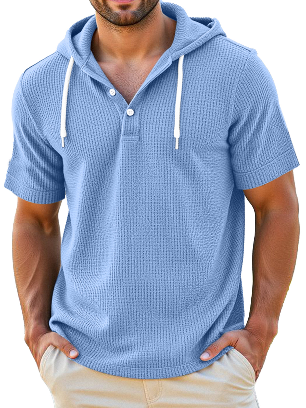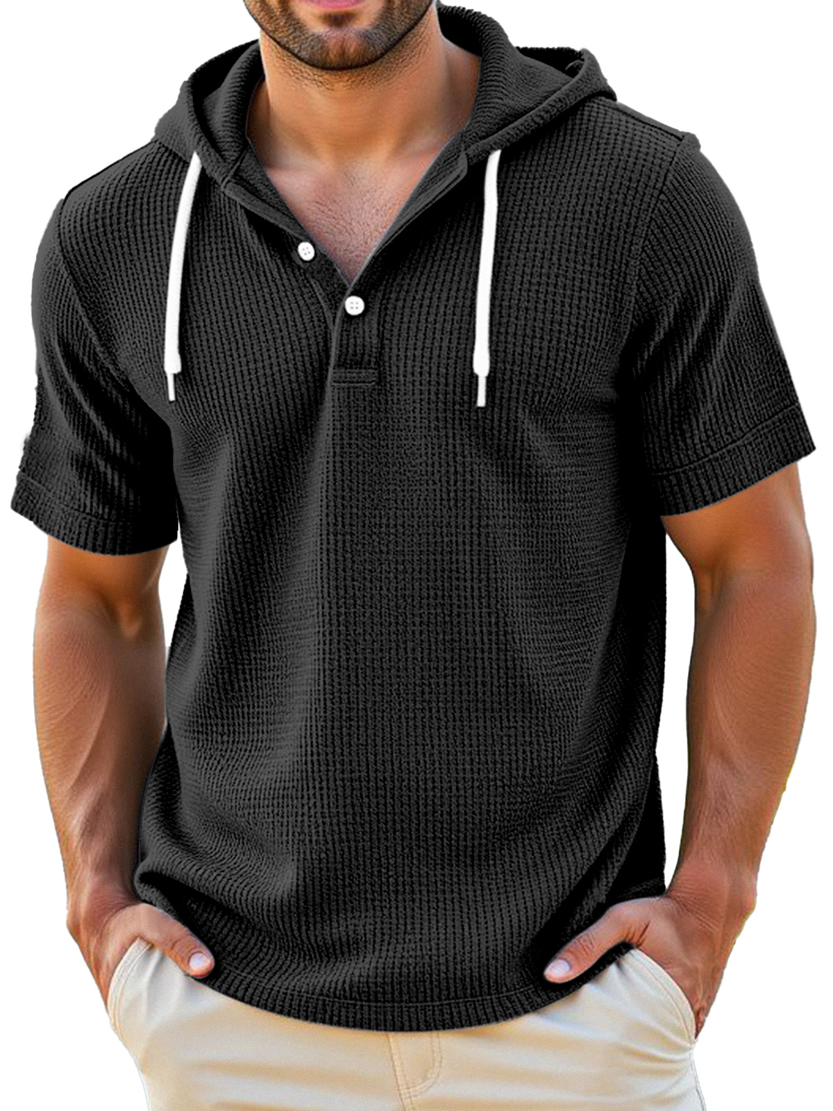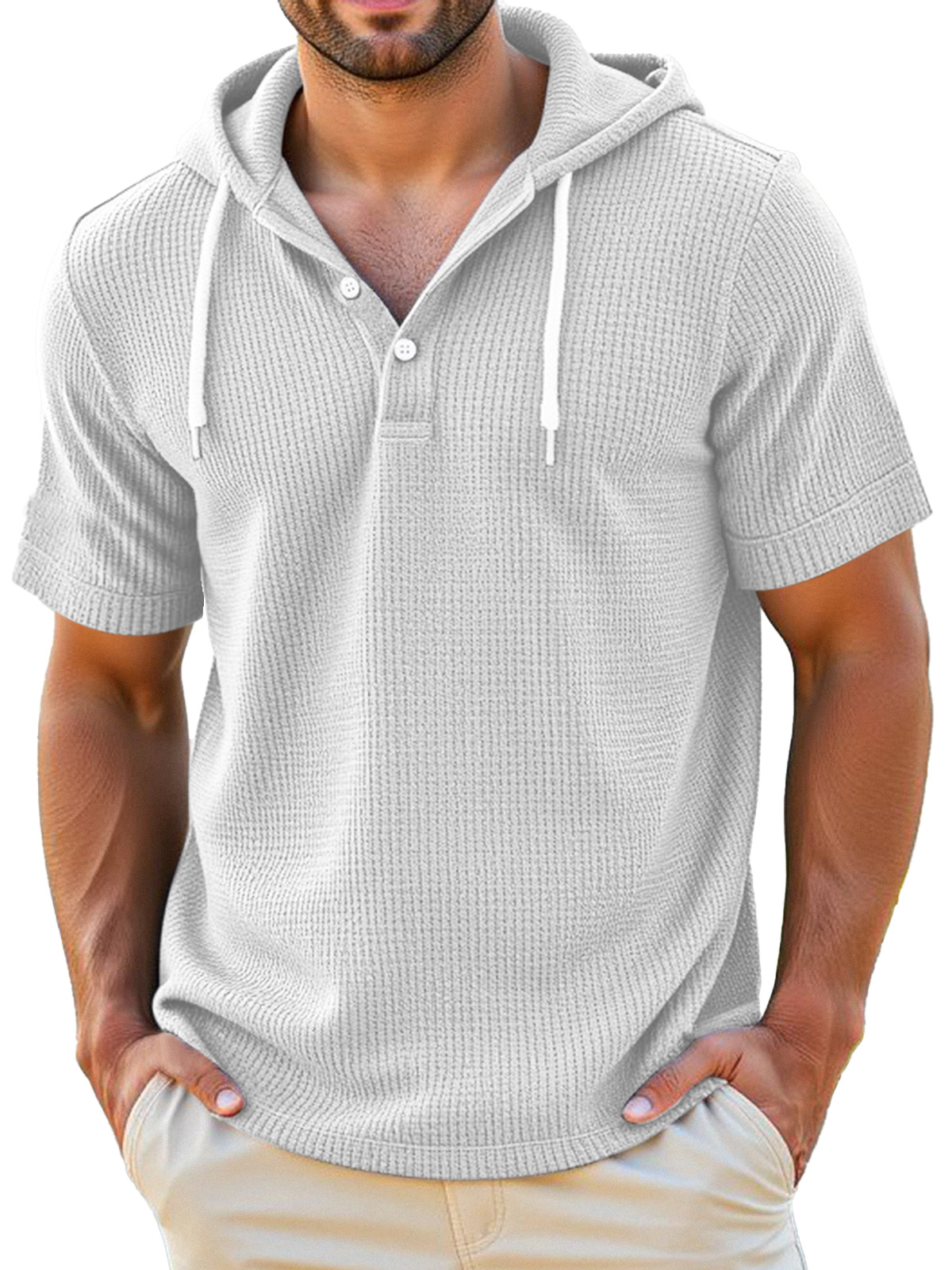 Men's Everyday Basics Waffle Hooded Button-down Short Sleeve Polo Shirt