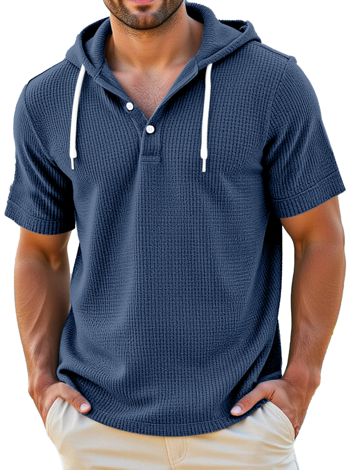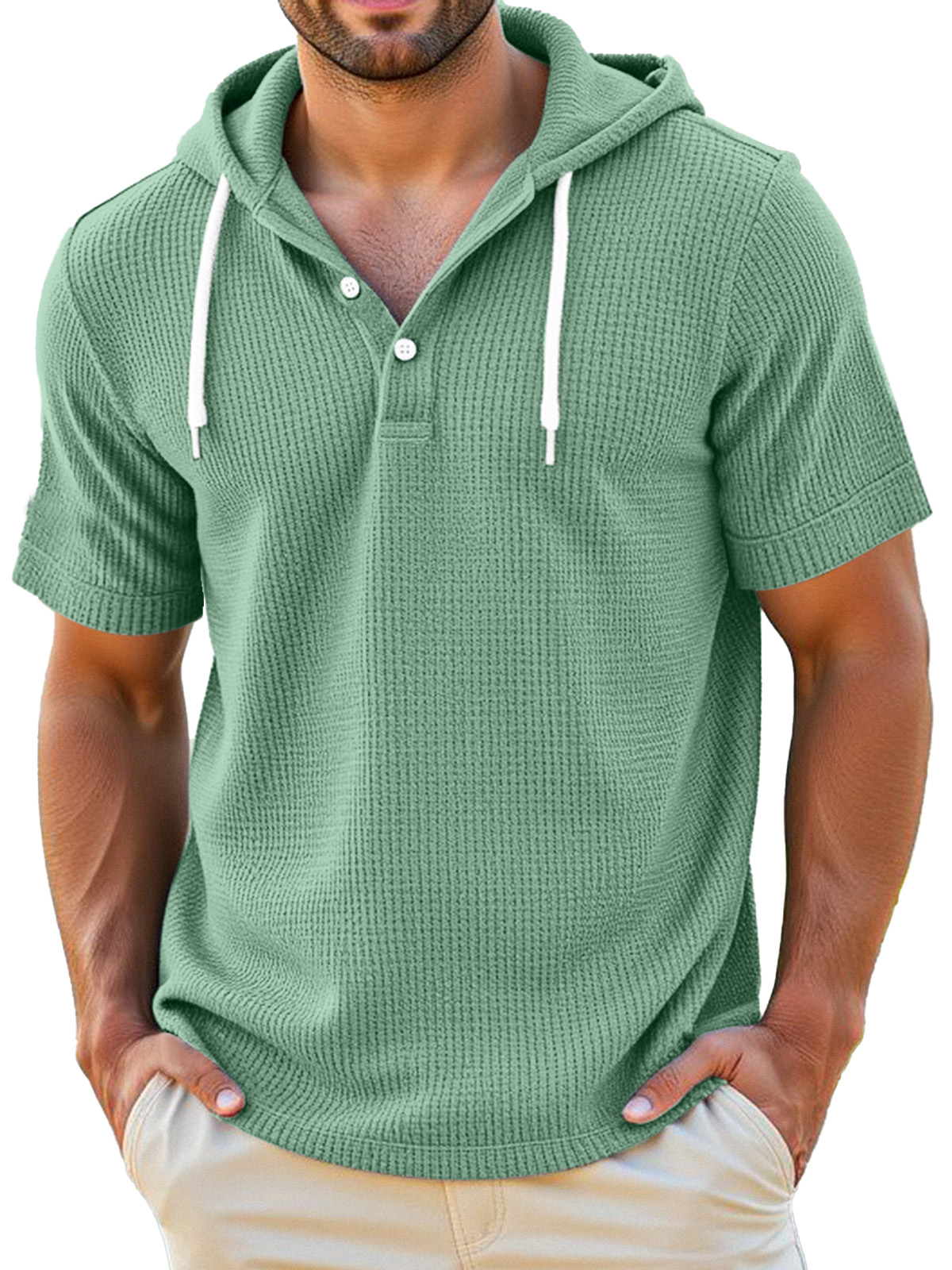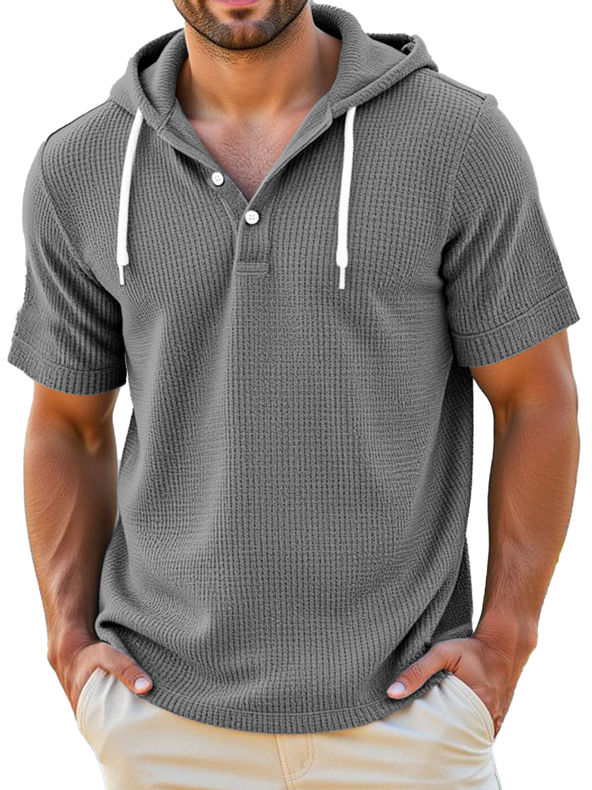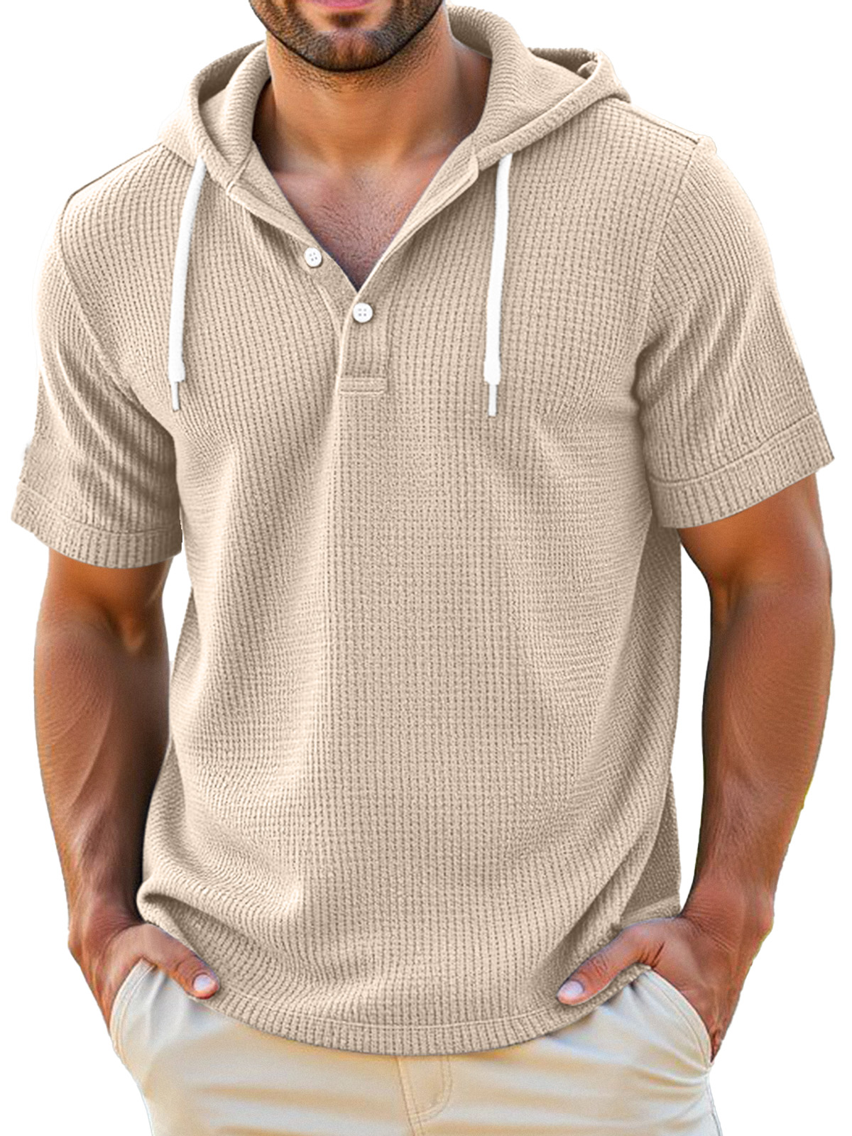 Men's Everyday Basics Waffle Hooded Button-down Short Sleeve Polo Shirt