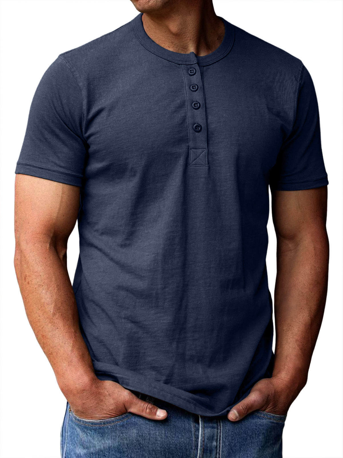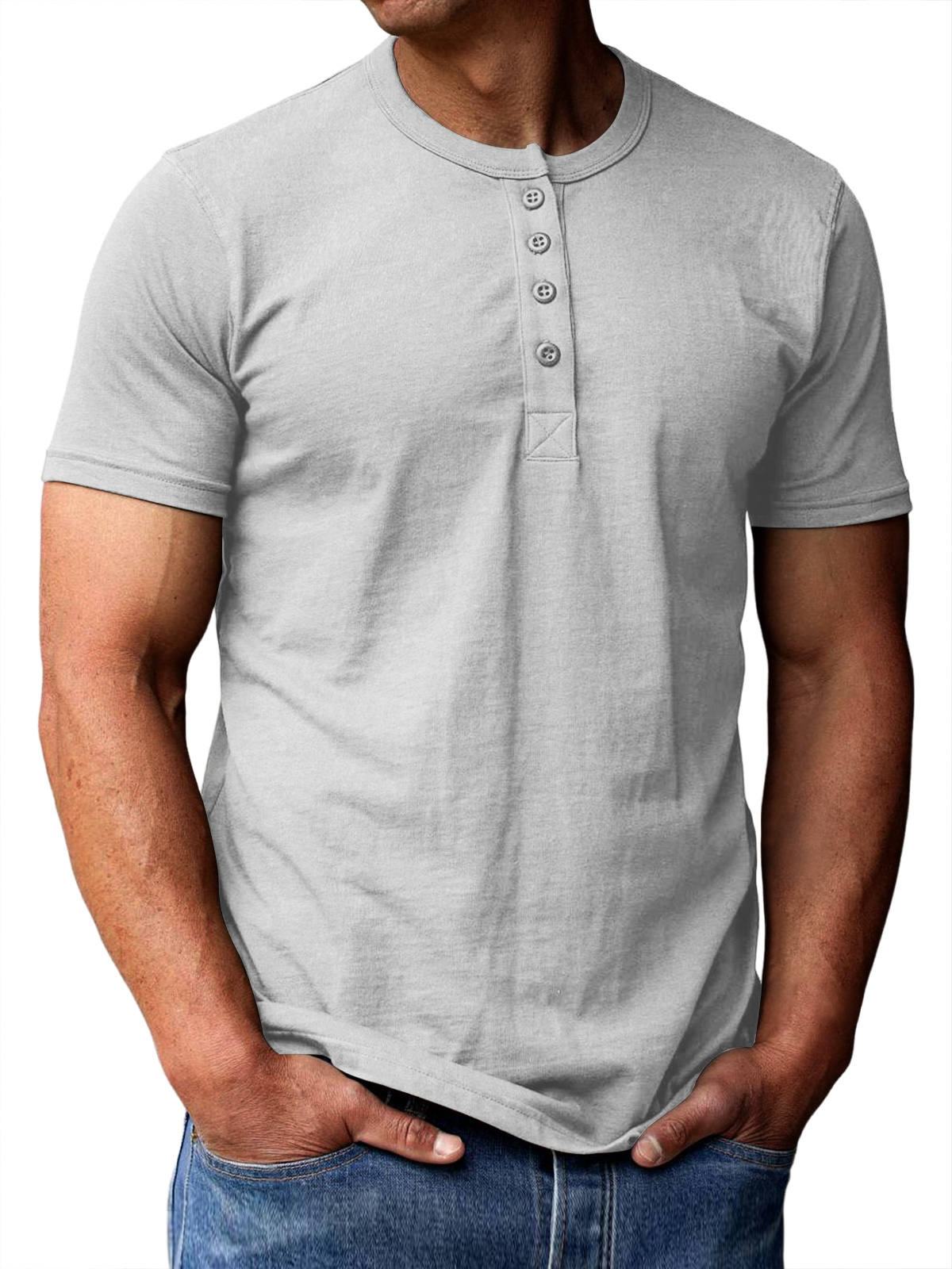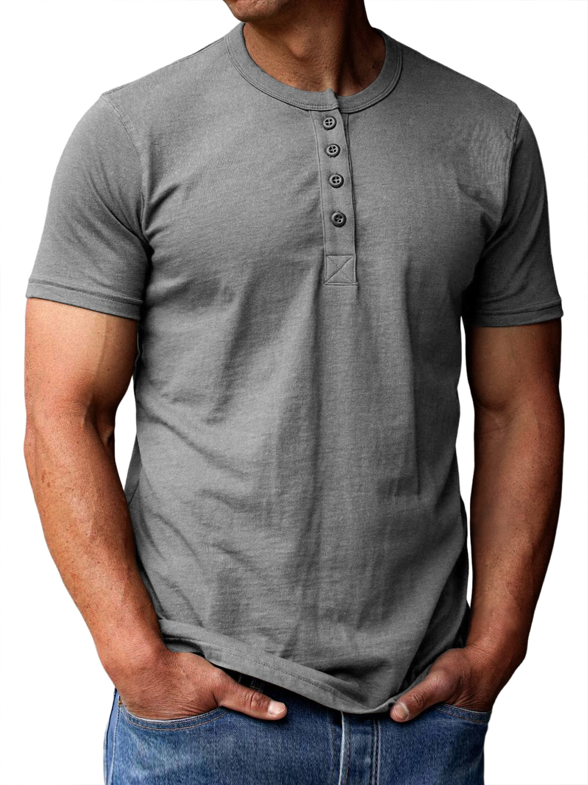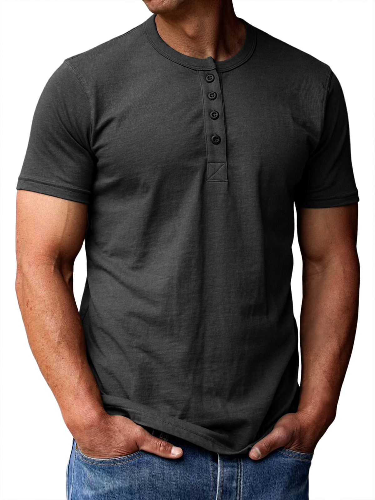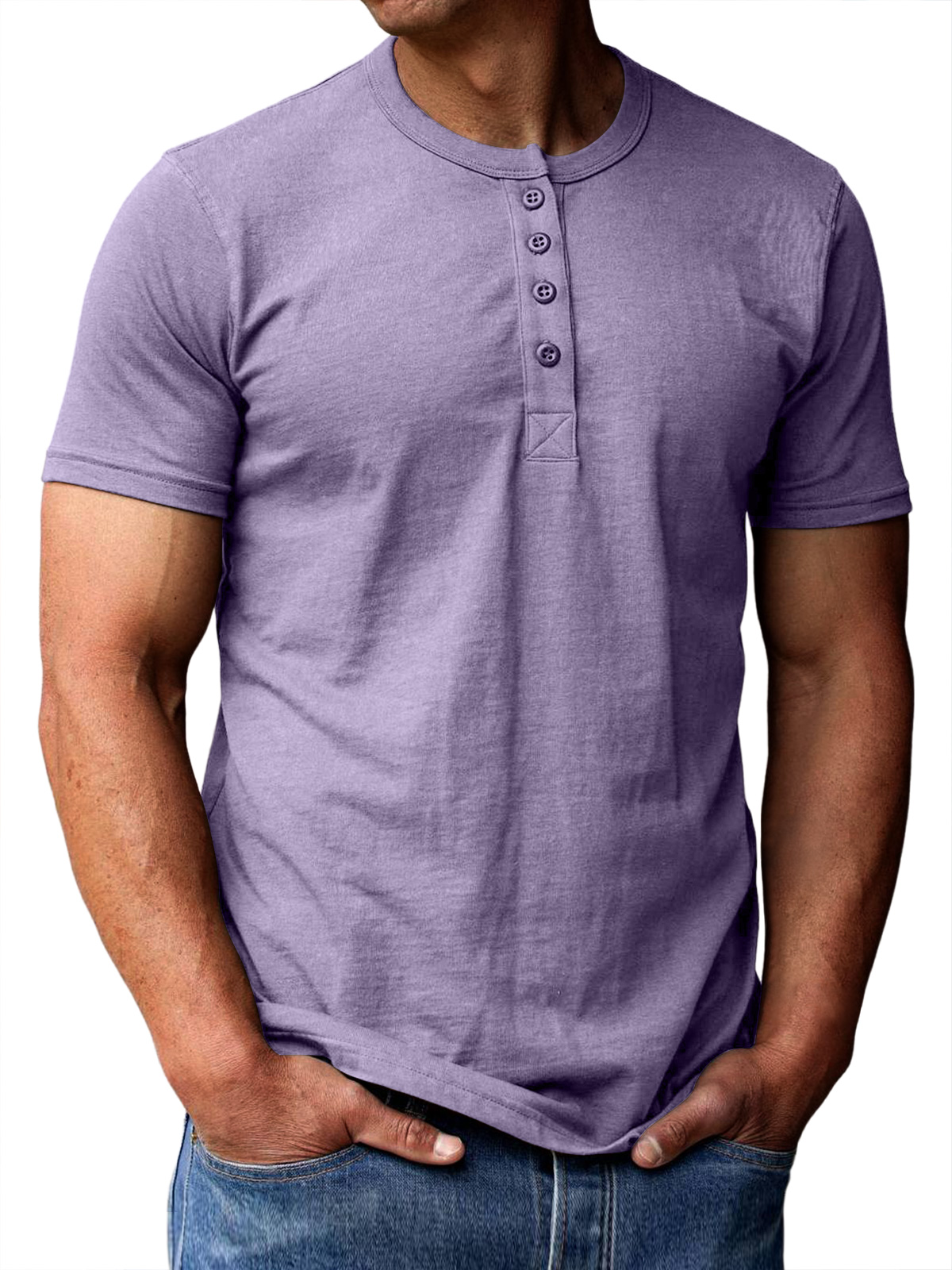 Men's Everyday Casual Button Up Comfort Short Sleeve Henley Shirt