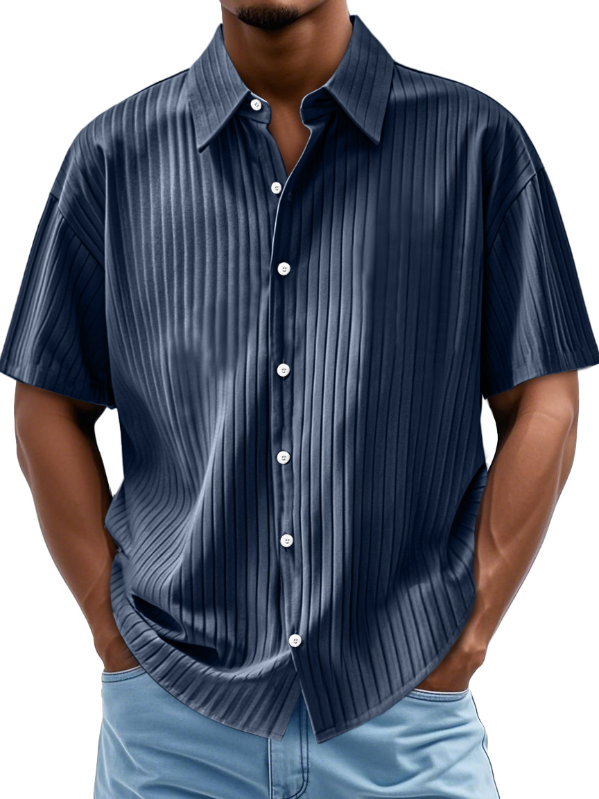 Men's Everyday Ribbed Casual Lapel Comfortable Short Sleeve Shirt